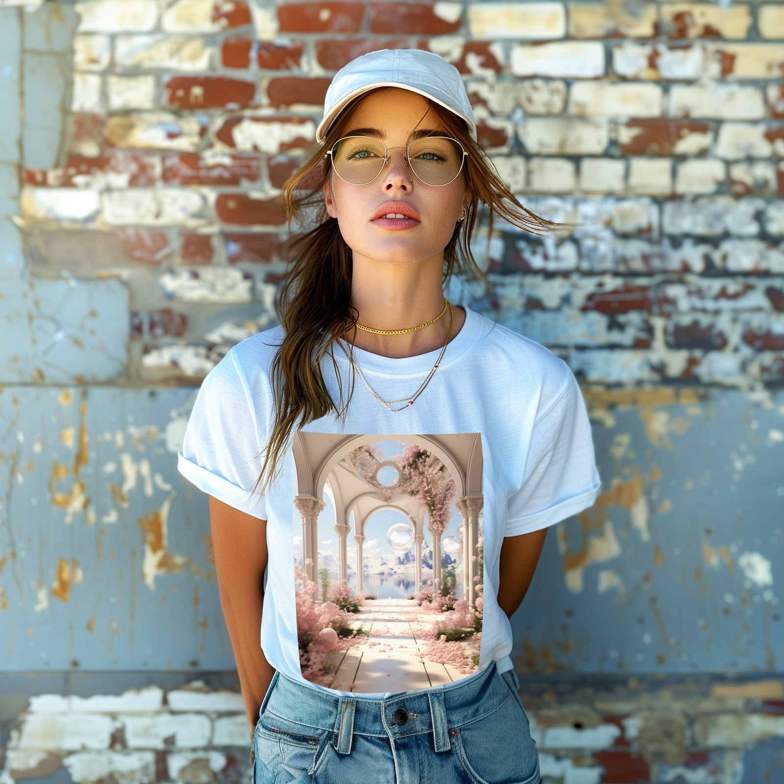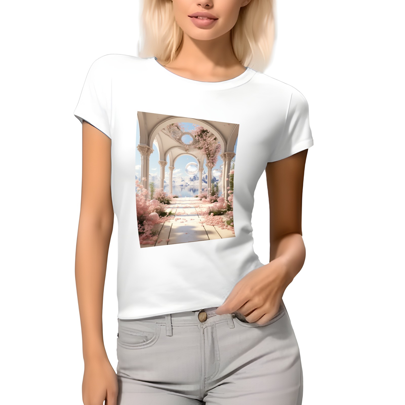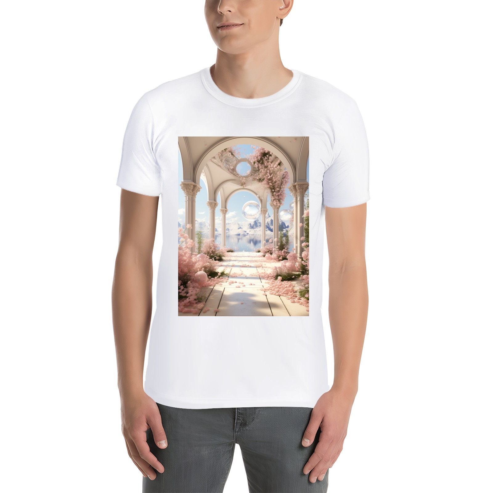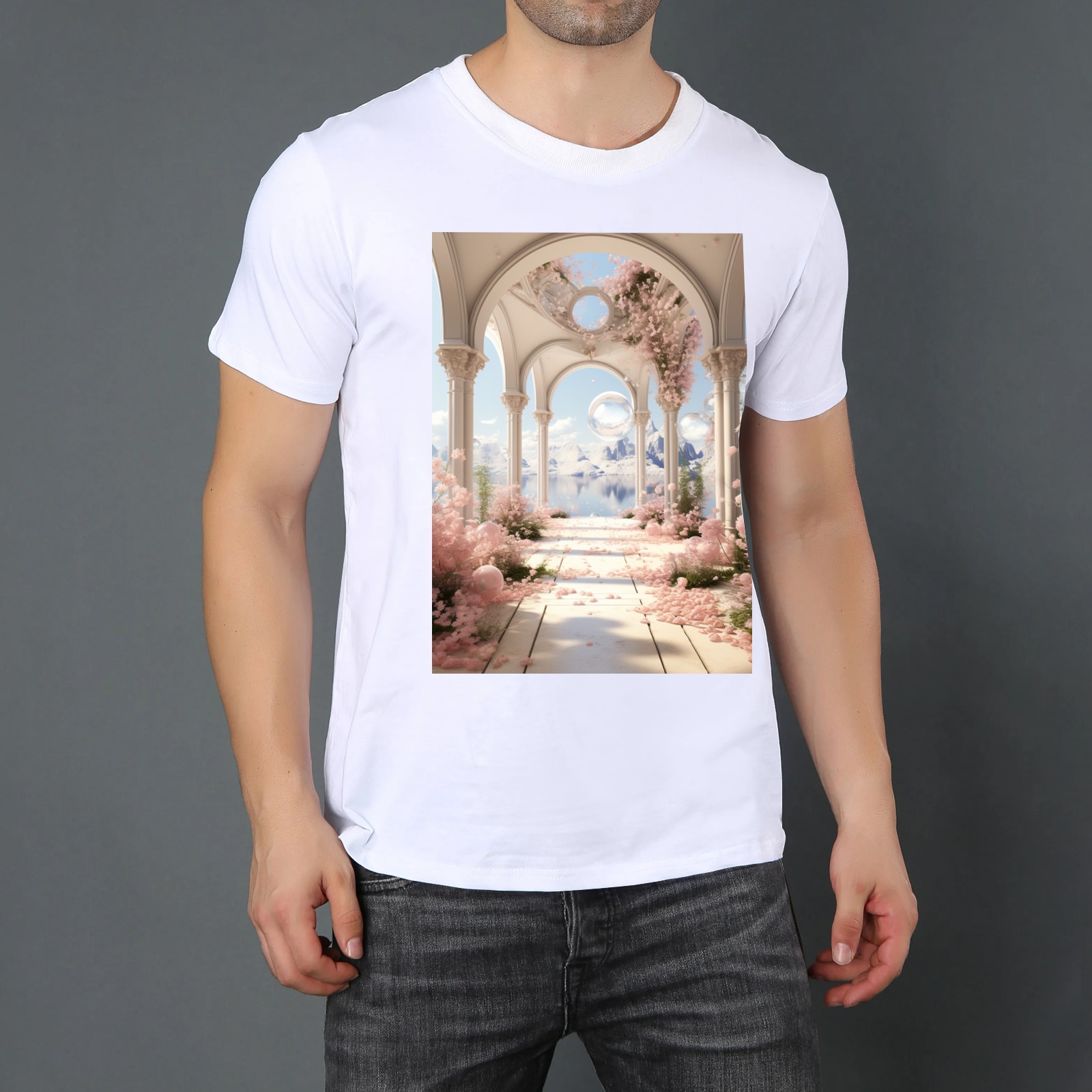 Basic Oversize Tees For WomenBjkj_an_archway_with_flowers_soap_bubbles_and_bubbles_in_the_s_9f133f04-6eeb-41f9-a1a4-1afbc7fb6998 Loose Boyfriend Shirts Casual Blouse round neck
