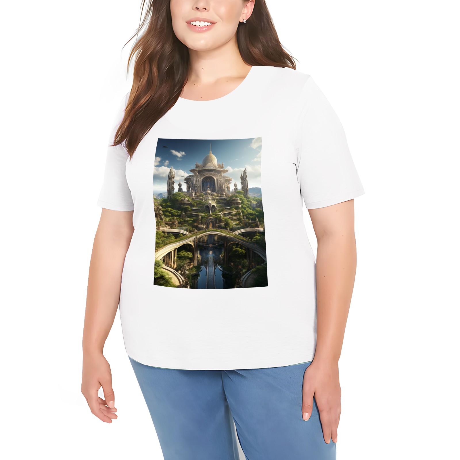 Basic Oversize Tees For WomenBjkj_an_amazing_fantasy_city_in_the_middle_of_a_jungle_in_the__a0e0283e-fe6f-4f27-a64d-603064e8afaa Loose Boyfriend Shirts Casual Blouse round neck
