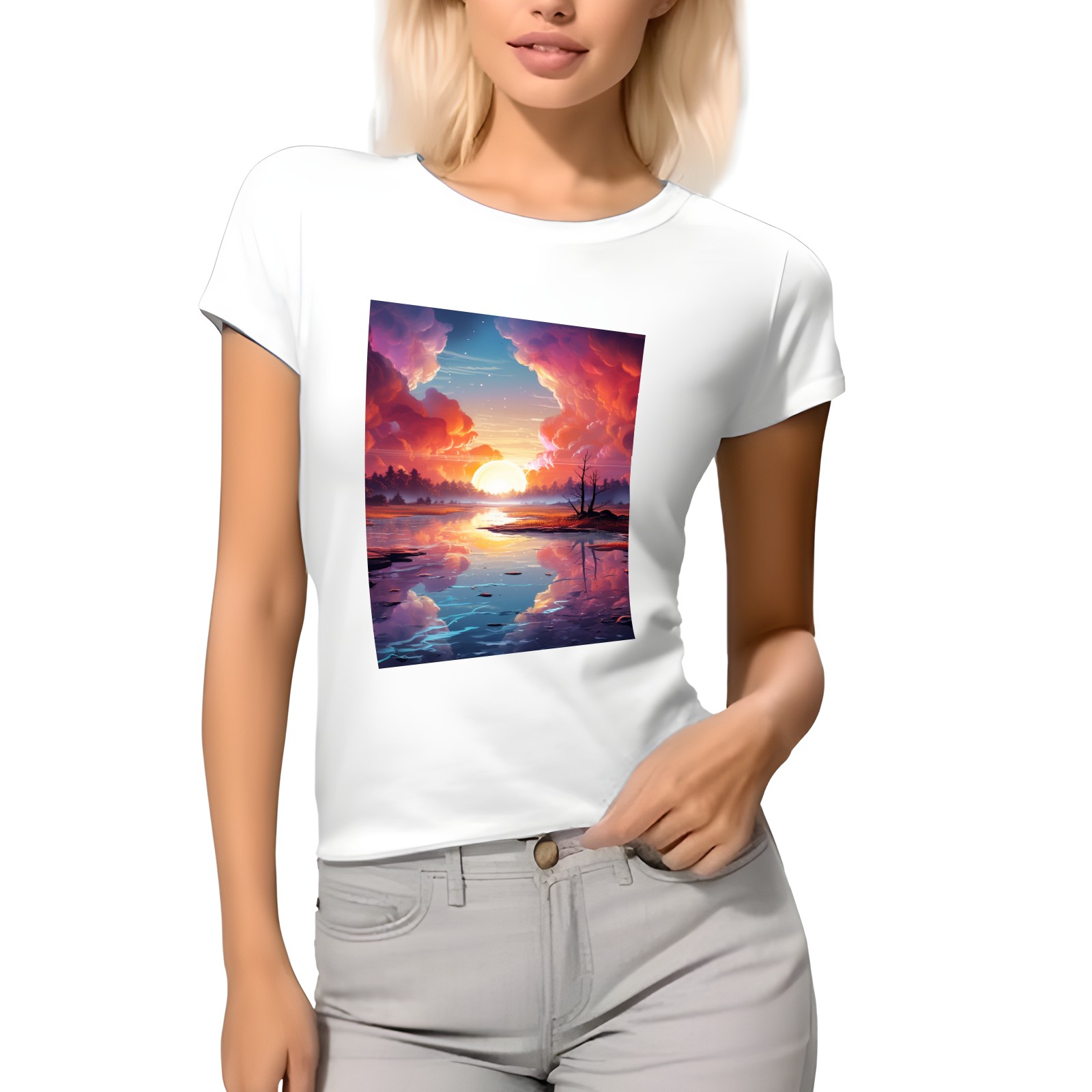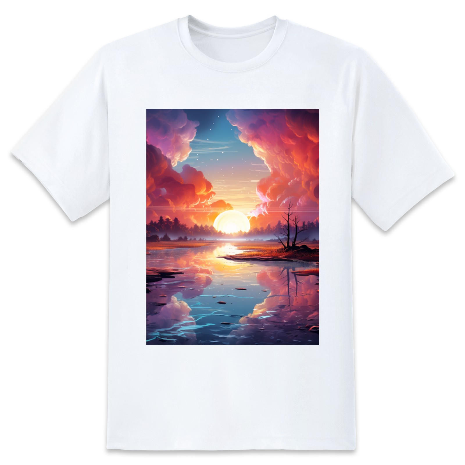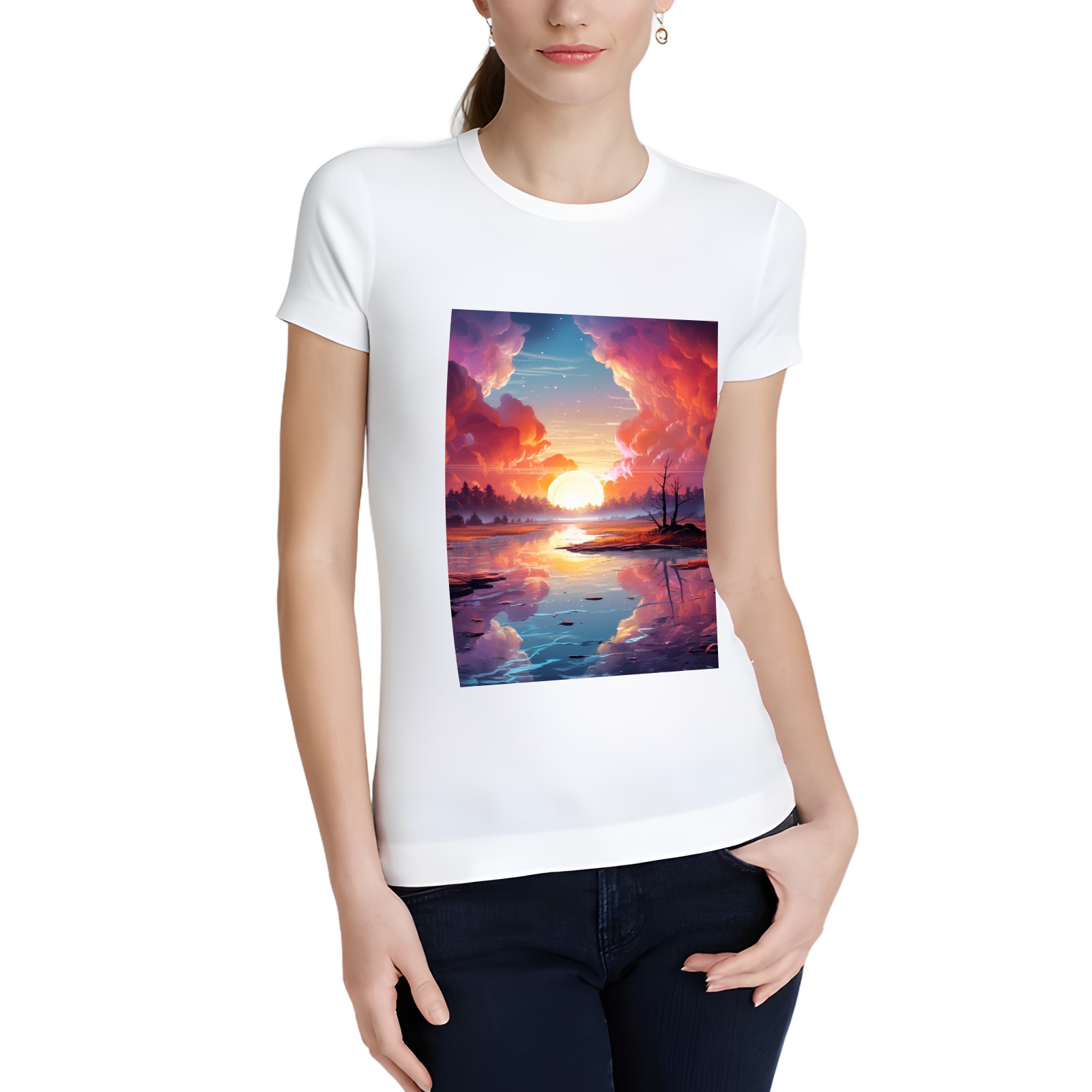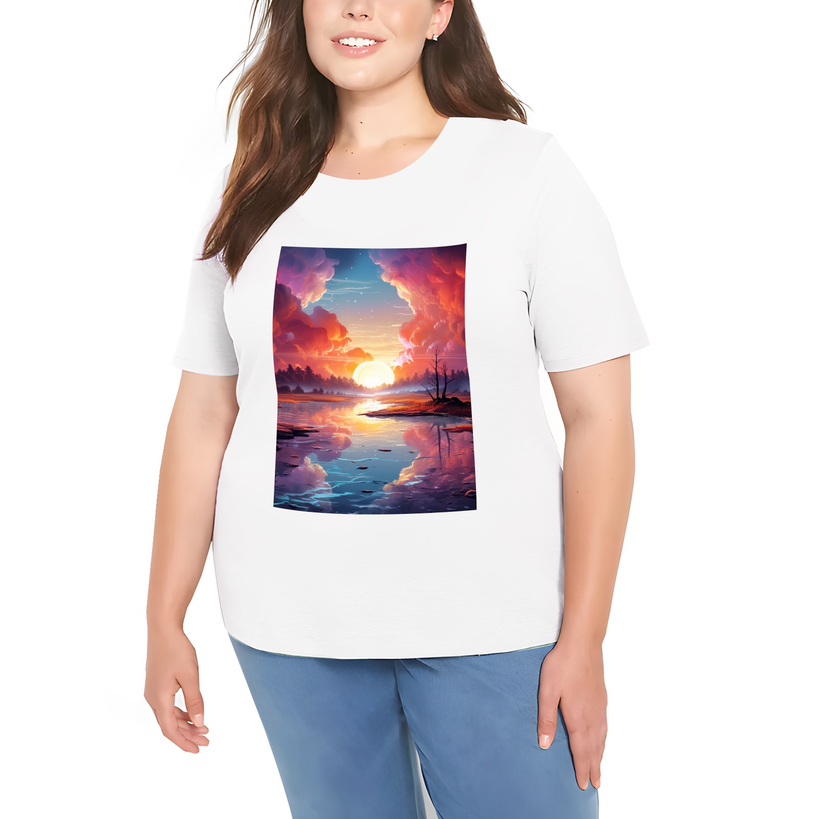 Basic Oversize Tees For WomenBjkj_an_abstract_painting_of_the_sunrise_over_a_lake_in_the_st_28cd3551-e13a-45e7-84e8-61efb85a4db3 Loose Boyfriend Shirts Casual Blouse round neck