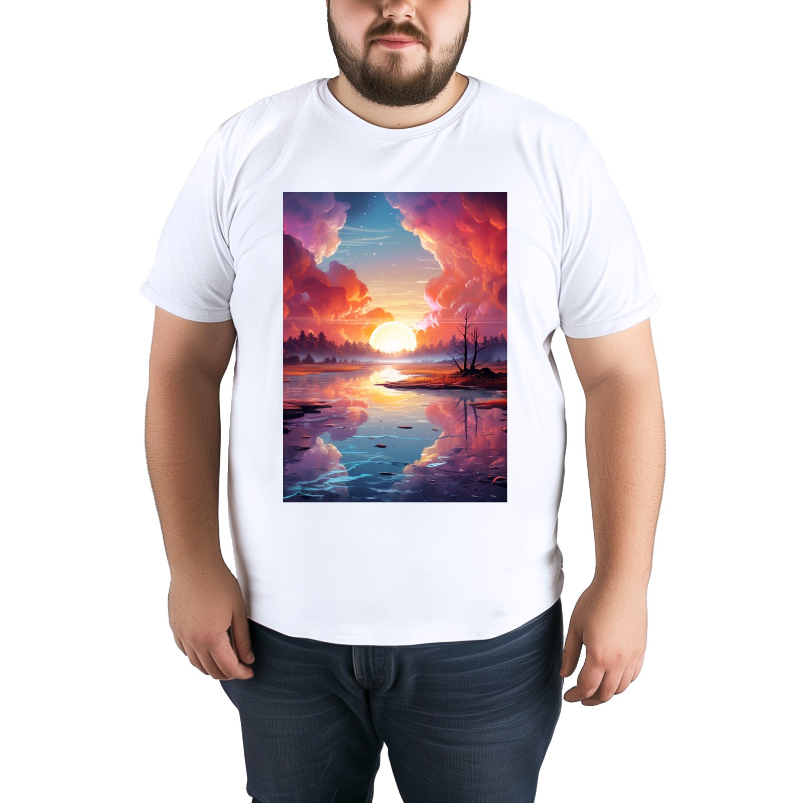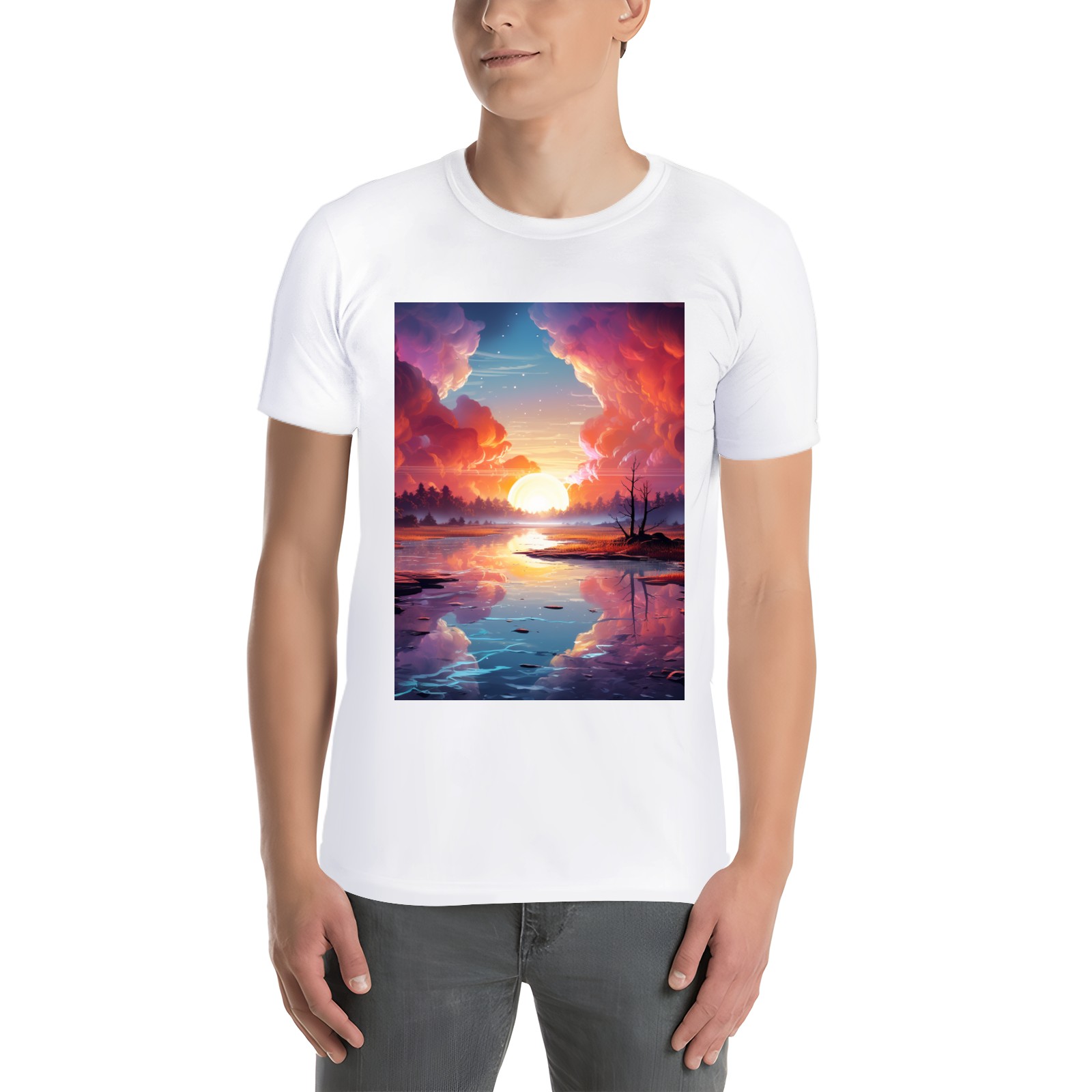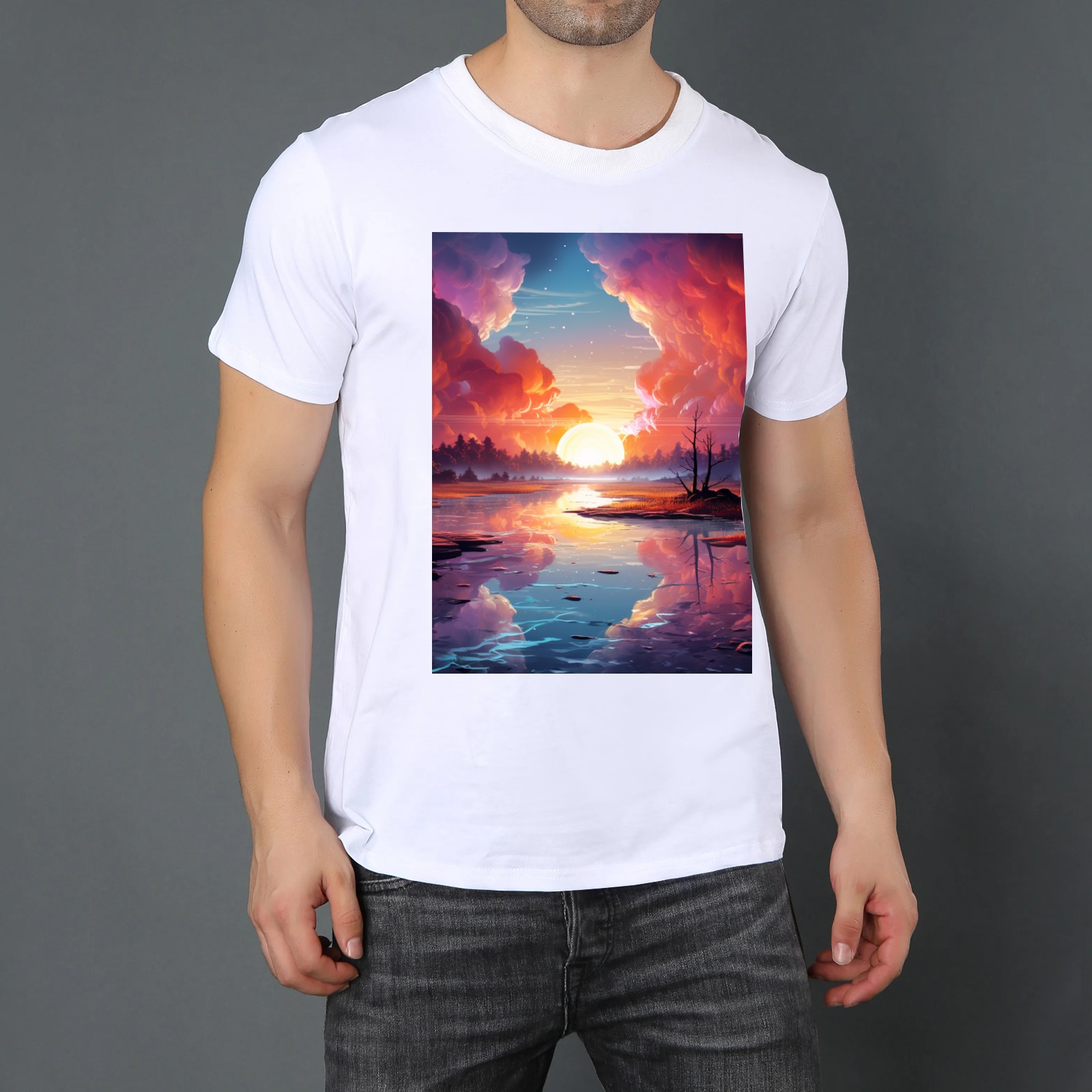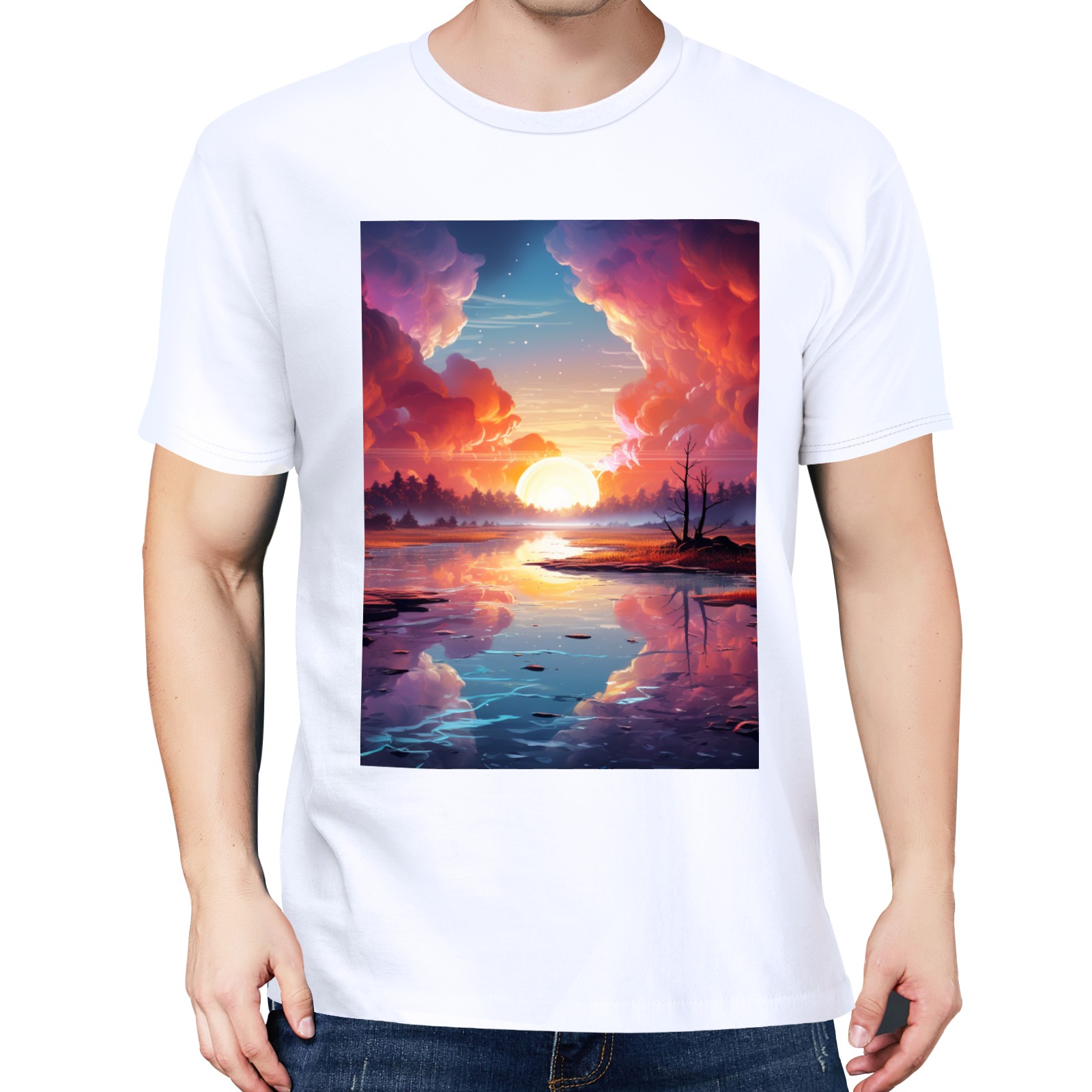 Basic Oversize Tees For WomenBjkj_an_abstract_painting_of_the_sunrise_over_a_lake_in_the_st_28cd3551-e13a-45e7-84e8-61efb85a4db3 Loose Boyfriend Shirts Casual Blouse round neck
