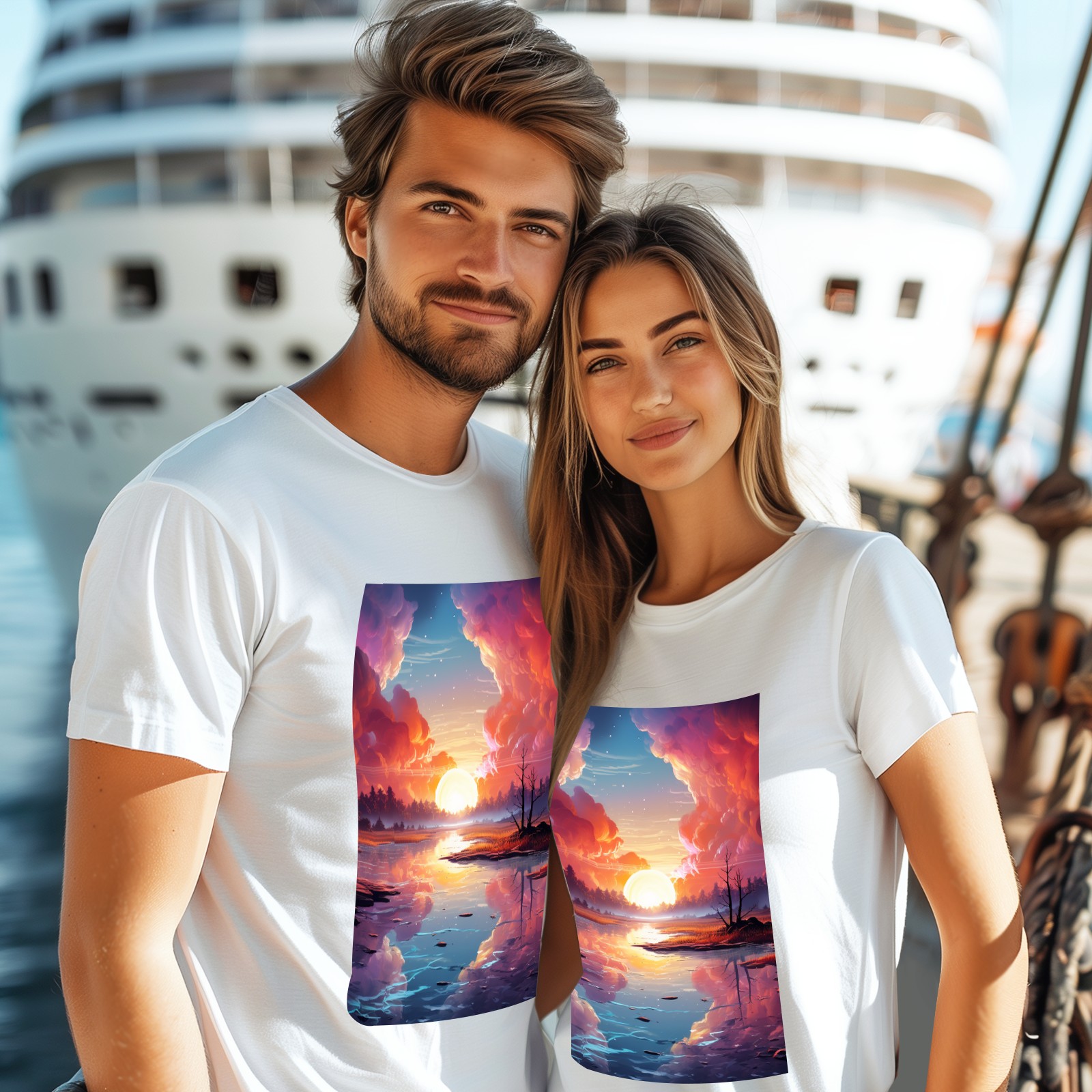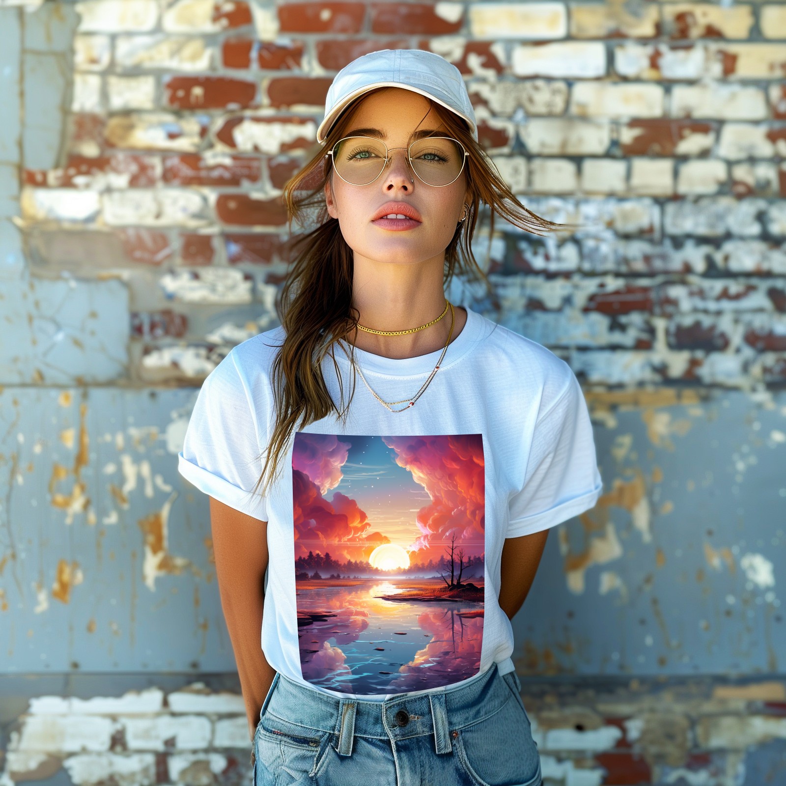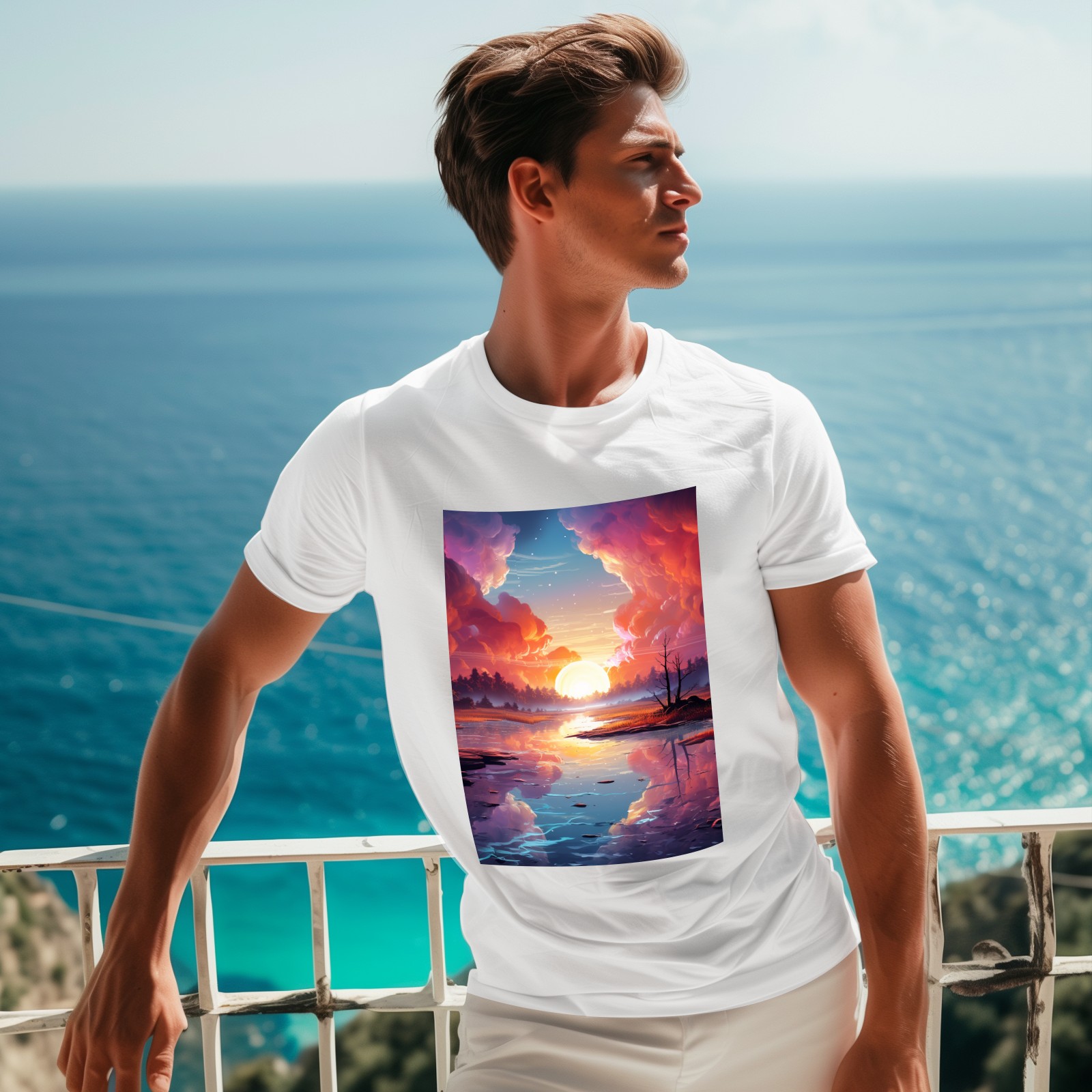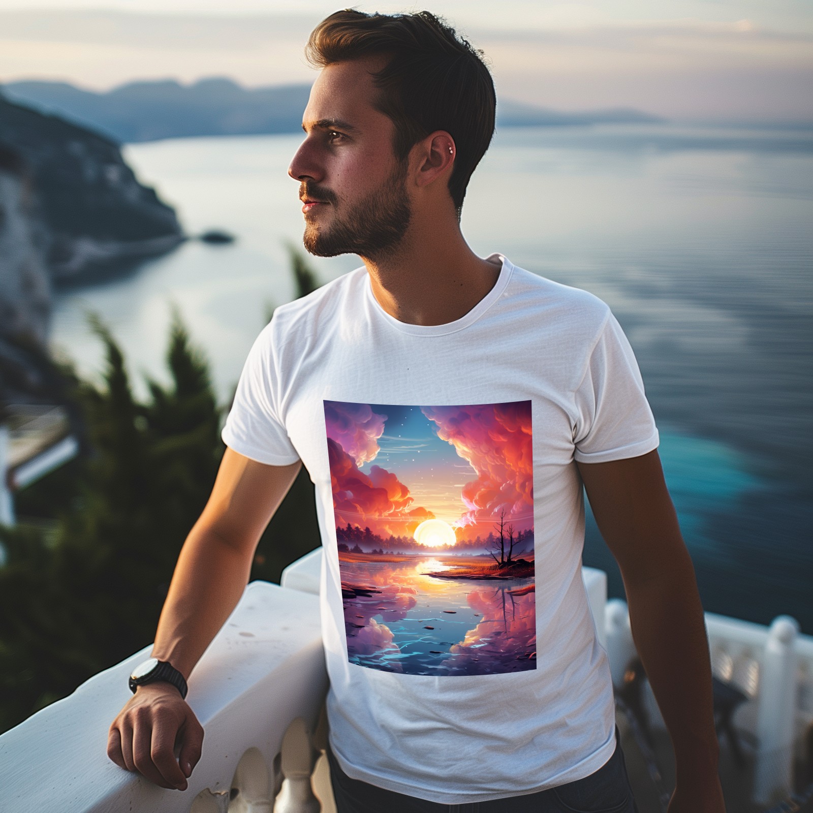 Basic Oversize Tees For WomenBjkj_an_abstract_painting_of_the_sunrise_over_a_lake_in_the_st_28cd3551-e13a-45e7-84e8-61efb85a4db3 Loose Boyfriend Shirts Casual Blouse round neck