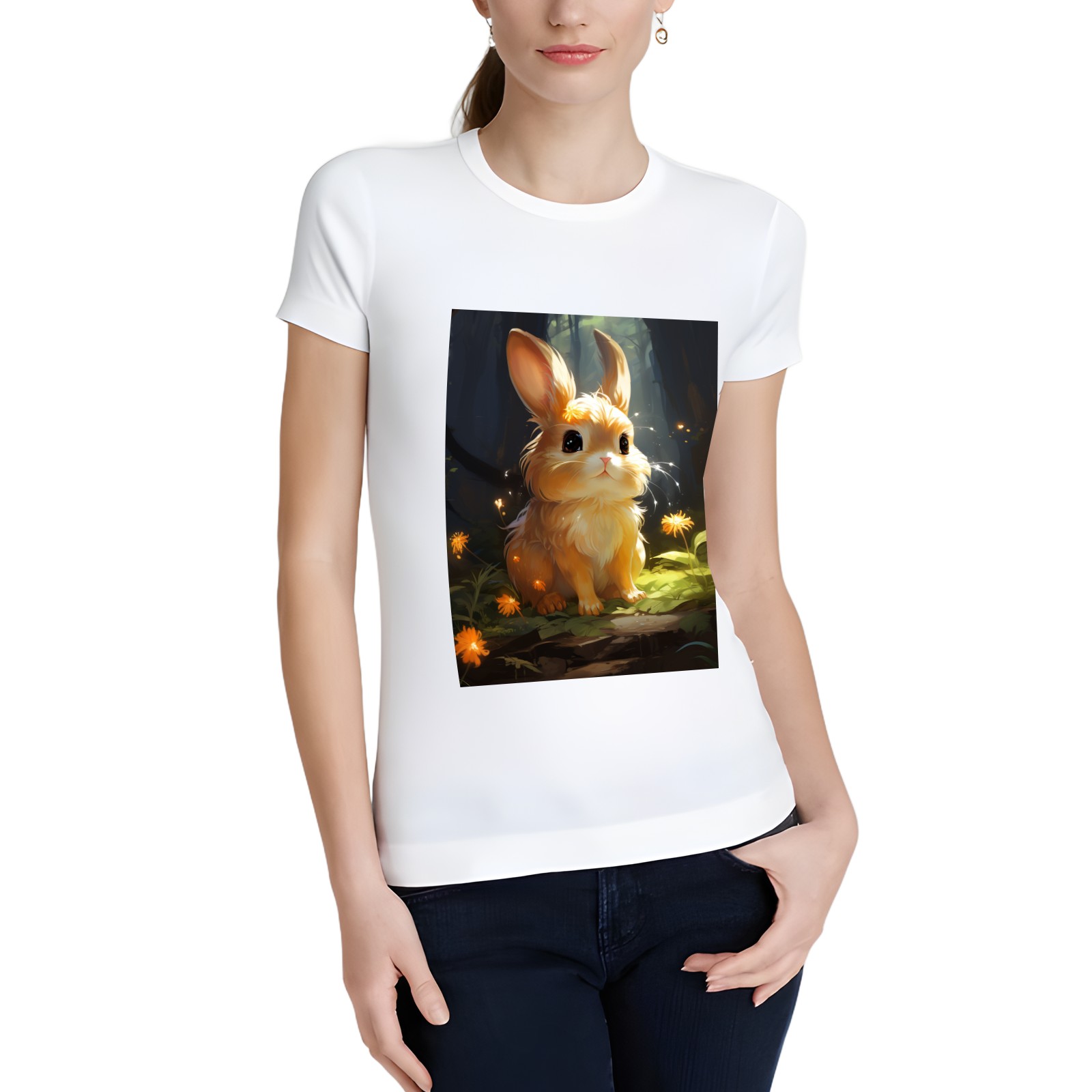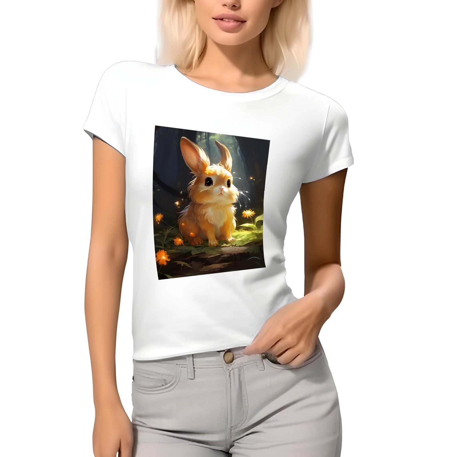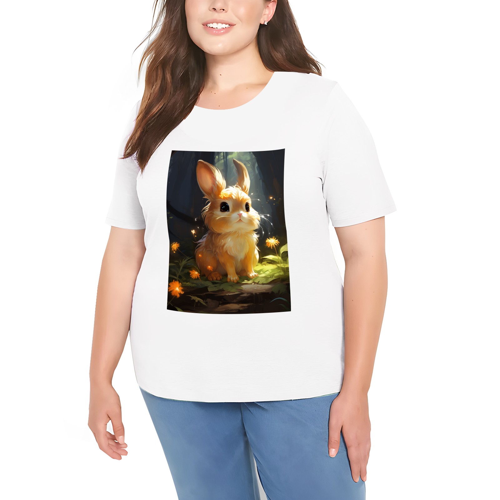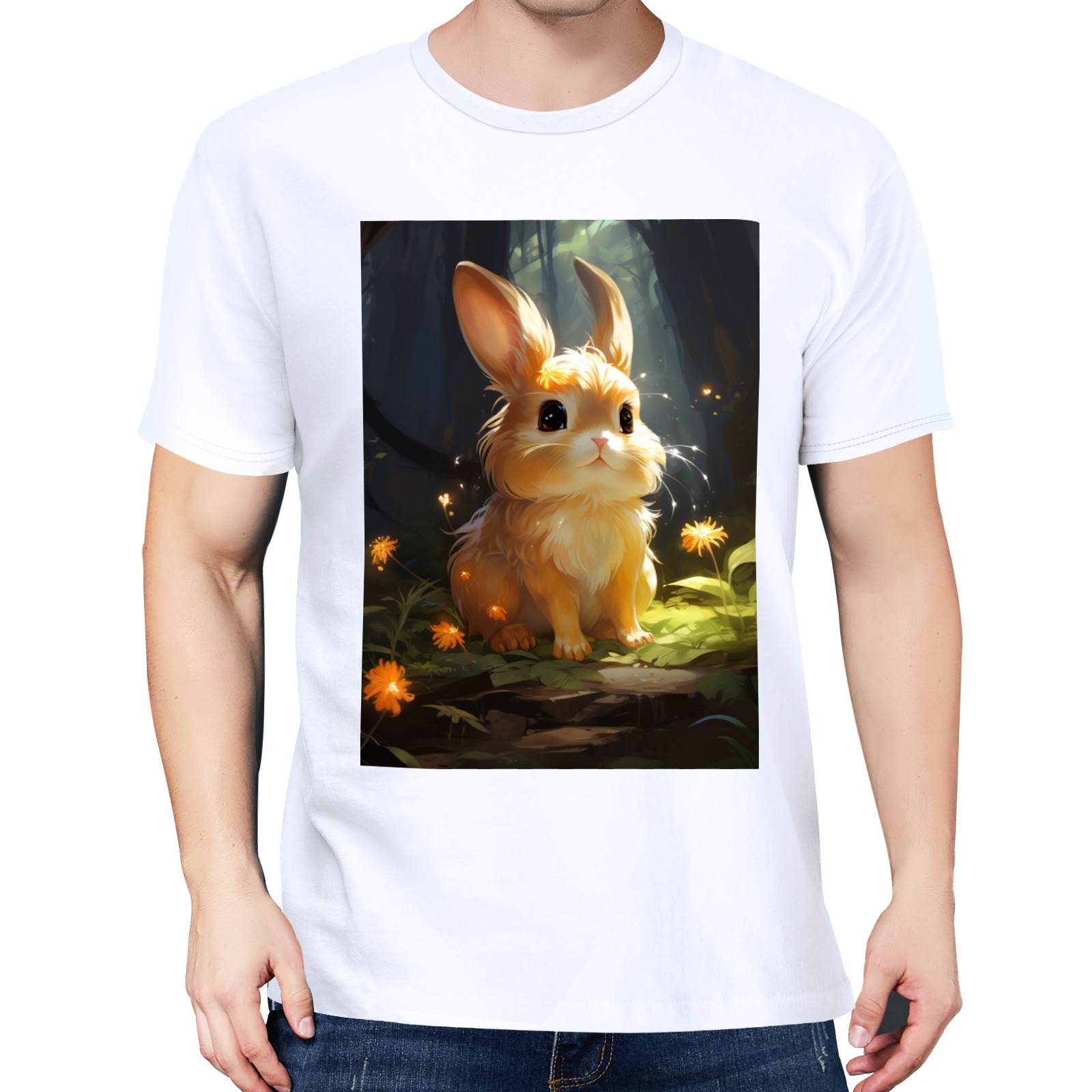 Basic Oversize Tees For WomenBjkj_a_rabbit_sitting_in_the_forest_in_the_style_of_anime-insp_c76bea45-0d8c-4ed7-9a27-302810026ac8 Loose Boyfriend Shirts Casual Blouse round neck