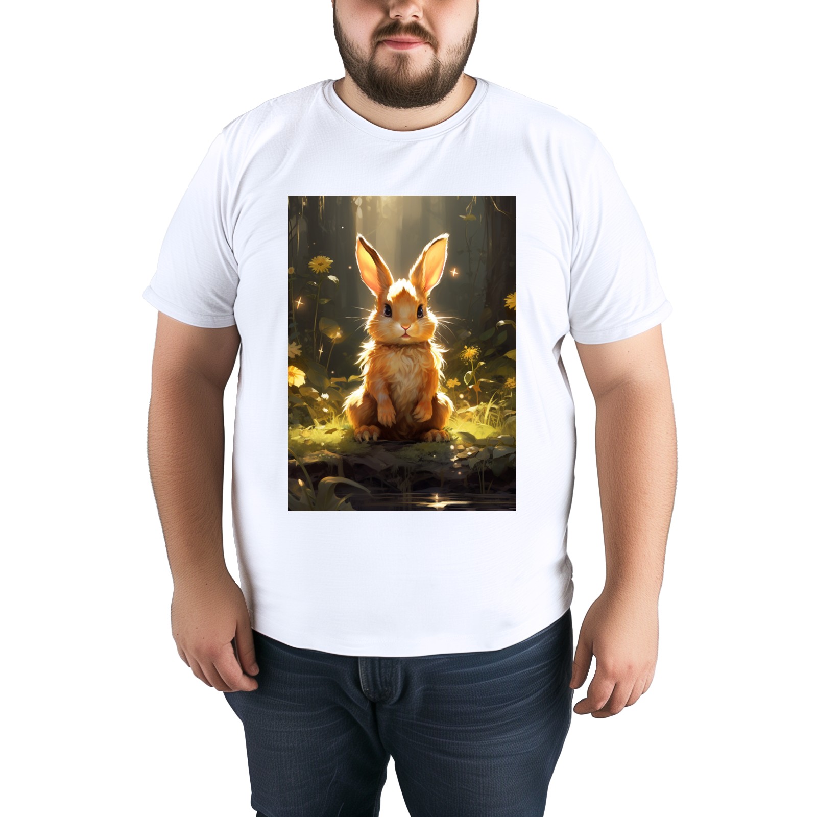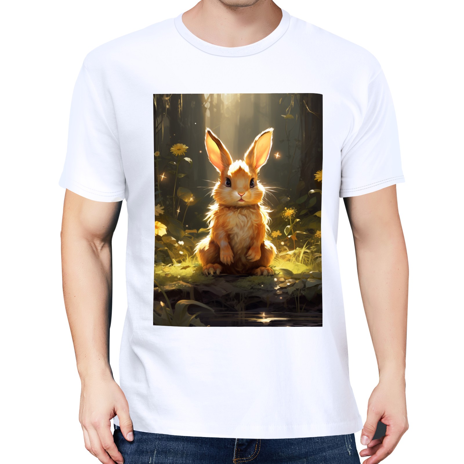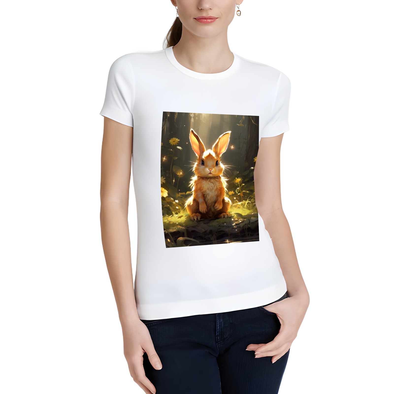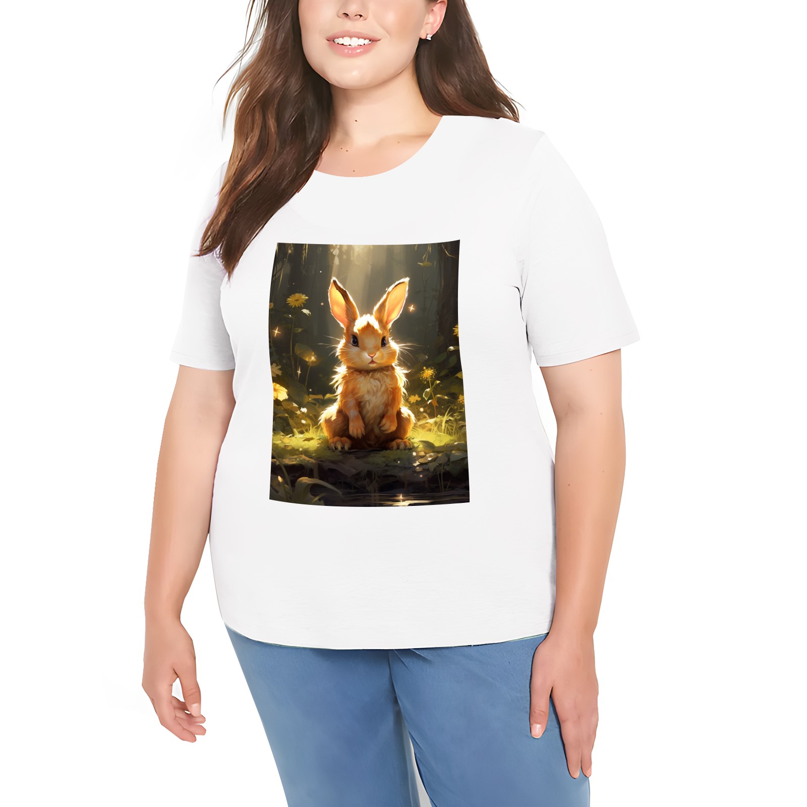 Basic Oversize Tees For WomenBjkj_a_rabbit_sitting_in_the_forest_in_the_style_of_anime-insp_120bf439-8cf9-4a12-97dc-61a319dc31dd Loose Boyfriend Shirts Casual Blouse round neck
