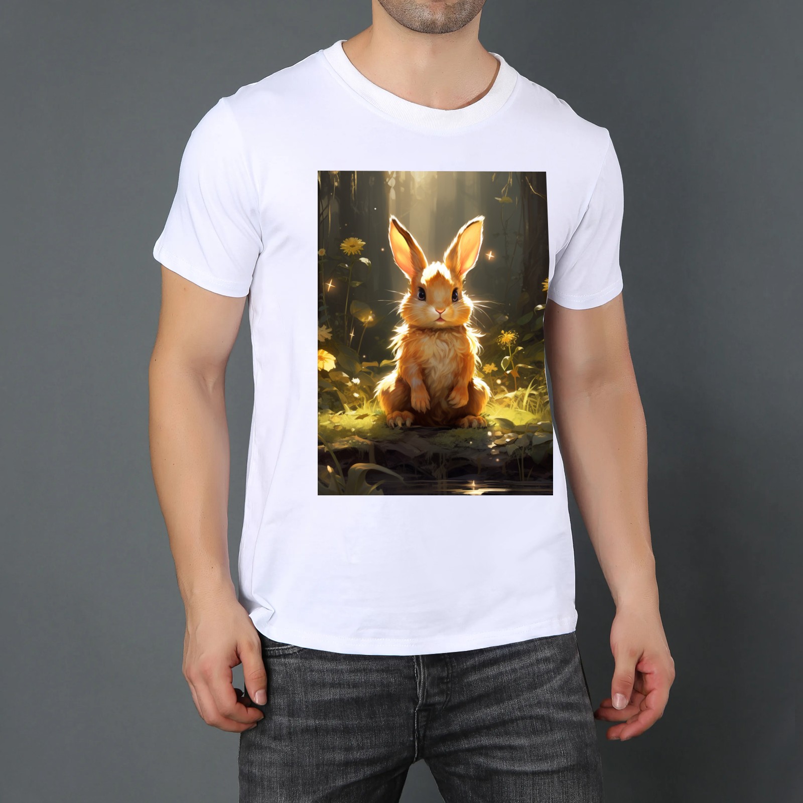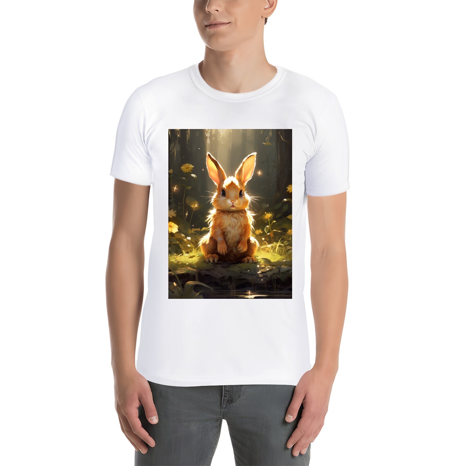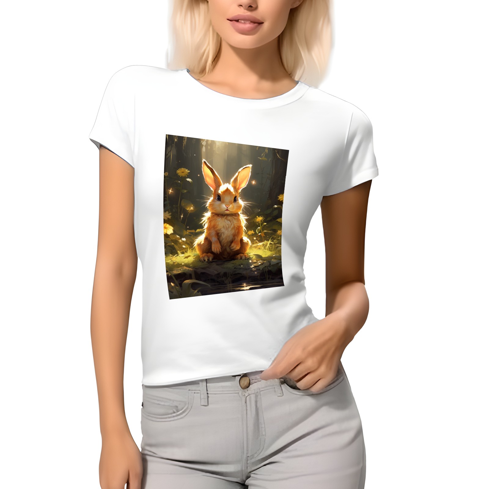 Basic Oversize Tees For WomenBjkj_a_rabbit_sitting_in_the_forest_in_the_style_of_anime-insp_120bf439-8cf9-4a12-97dc-61a319dc31dd Loose Boyfriend Shirts Casual Blouse round neck