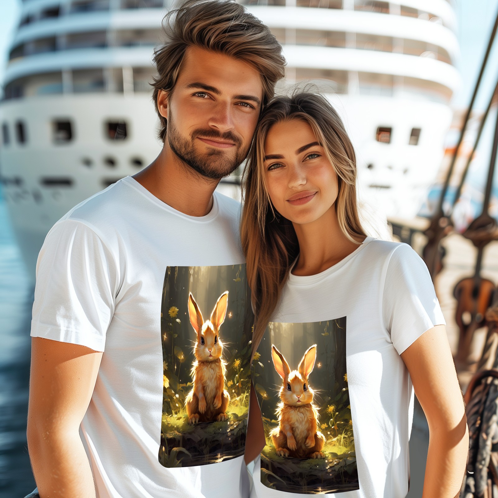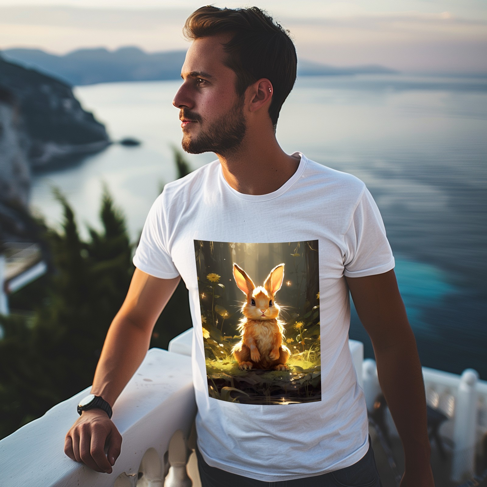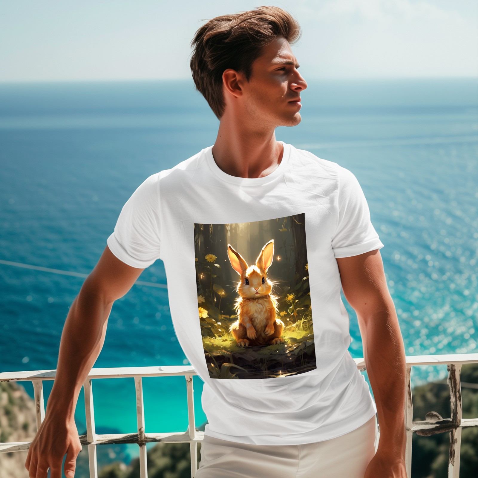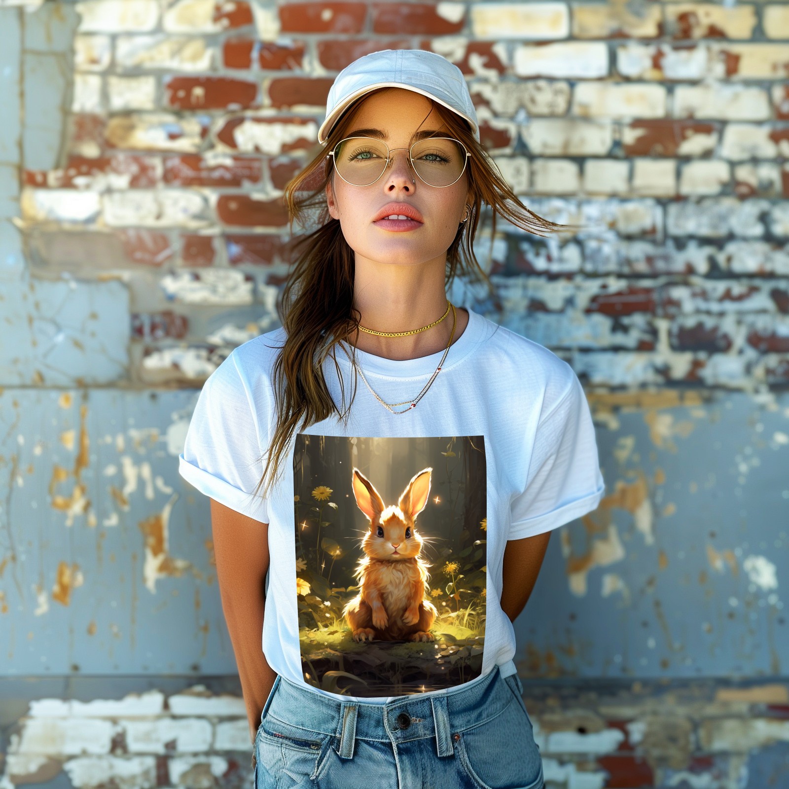 Basic Oversize Tees For WomenBjkj_a_rabbit_sitting_in_the_forest_in_the_style_of_anime-insp_120bf439-8cf9-4a12-97dc-61a319dc31dd Loose Boyfriend Shirts Casual Blouse round neck