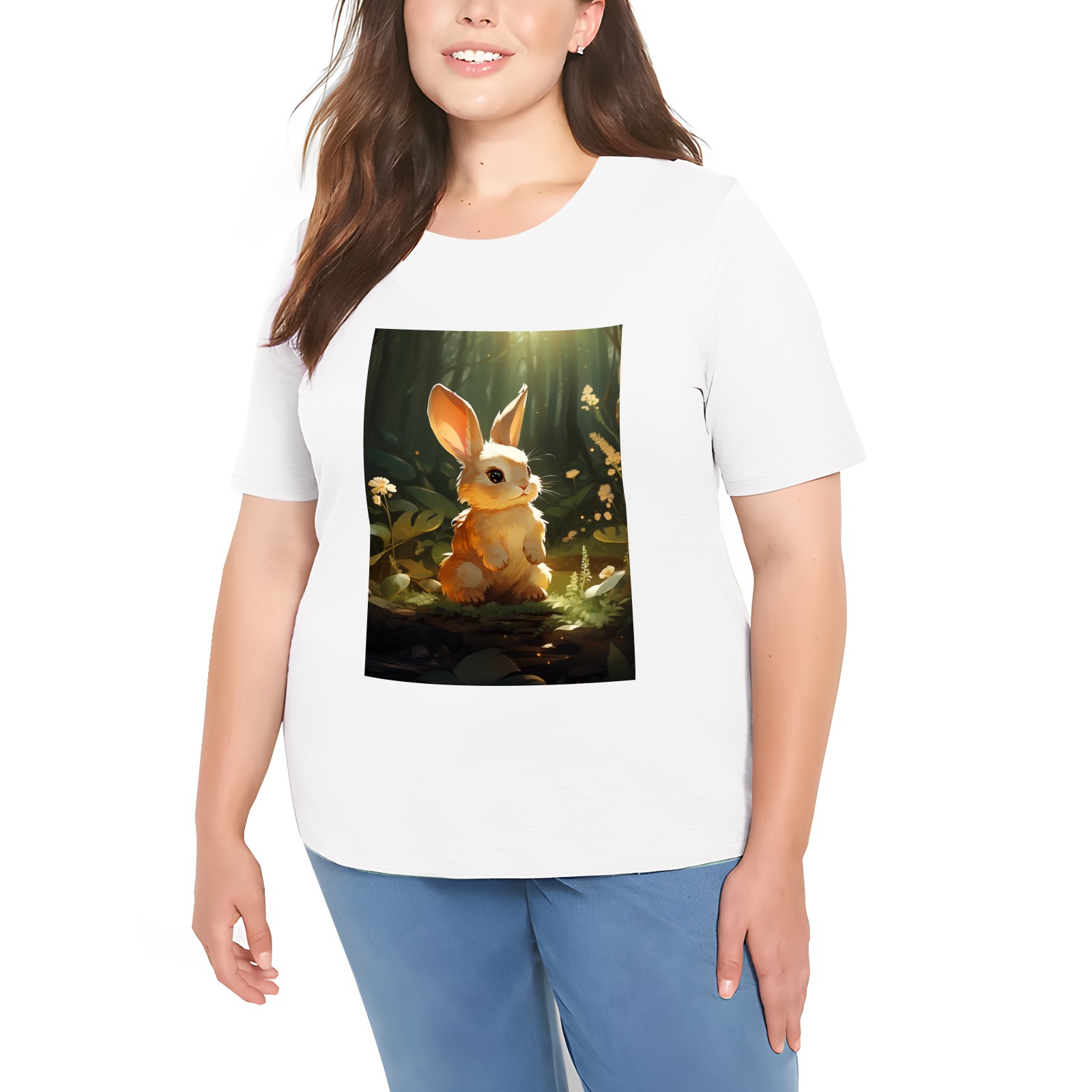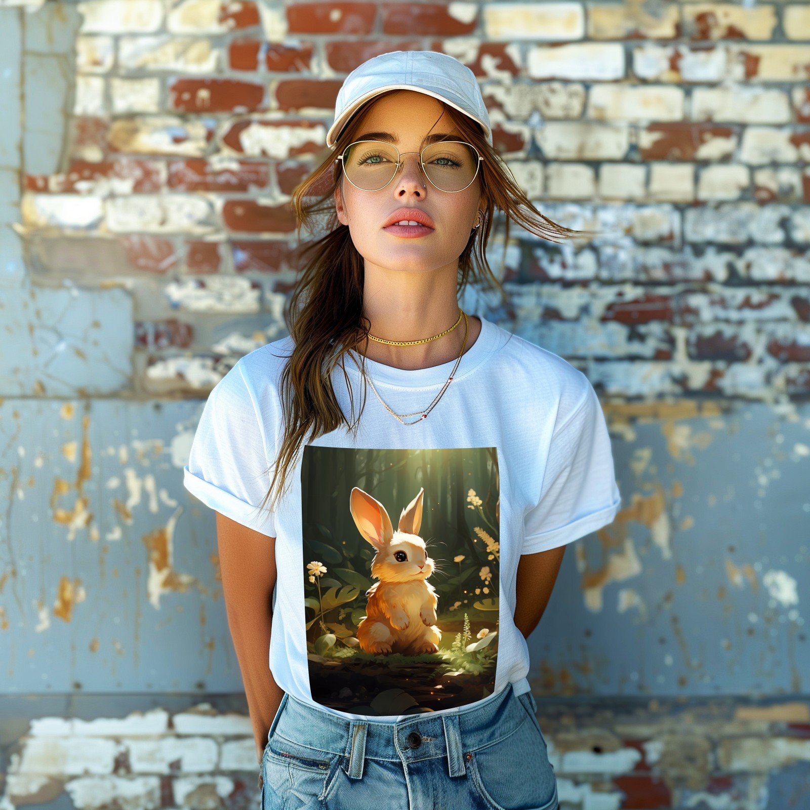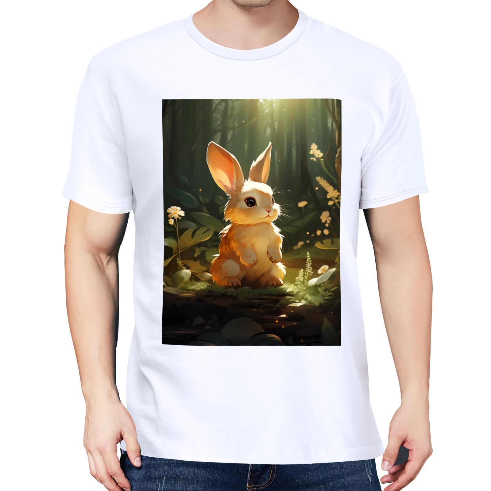 Basic Oversize Tees For WomenBjkj_a_rabbit_sitting_in_the_forest_in_the_style_of_anime-insp_8a680e06-3f72-4baa-bd9f-d9bc59f9a95b Loose Boyfriend Shirts Casual Blouse round neck