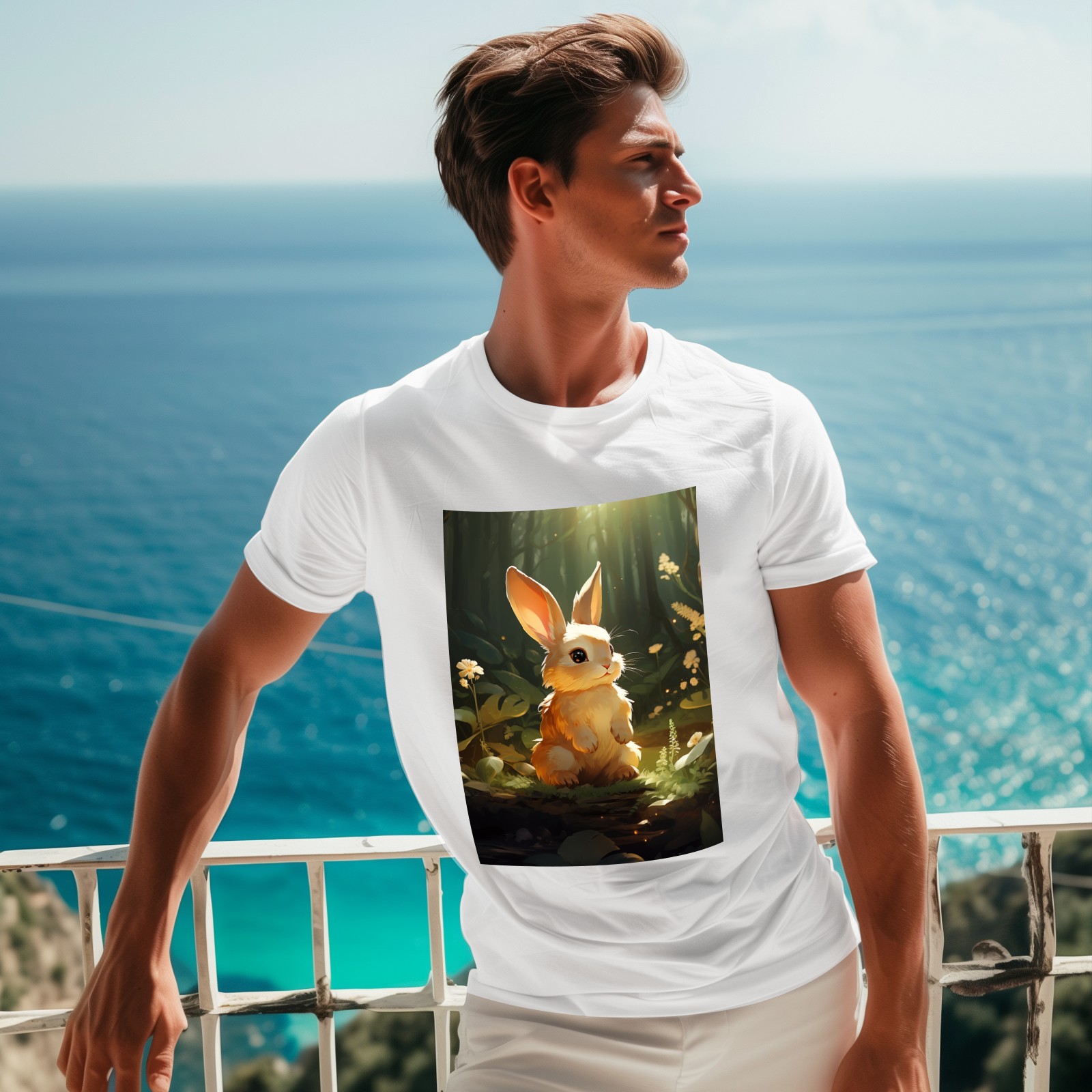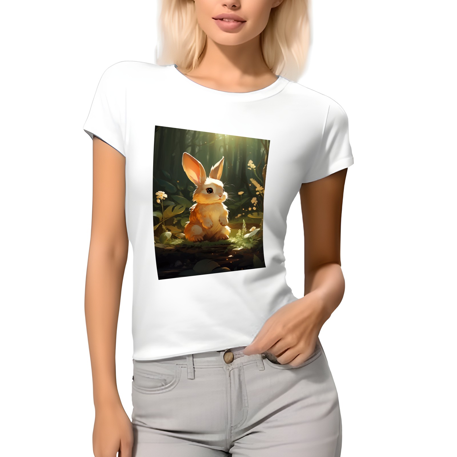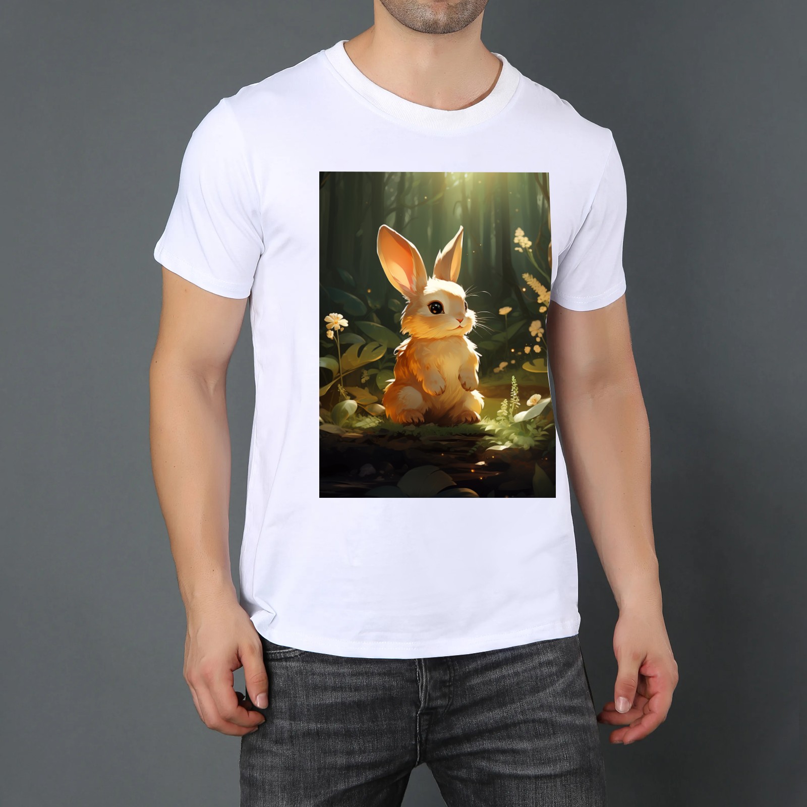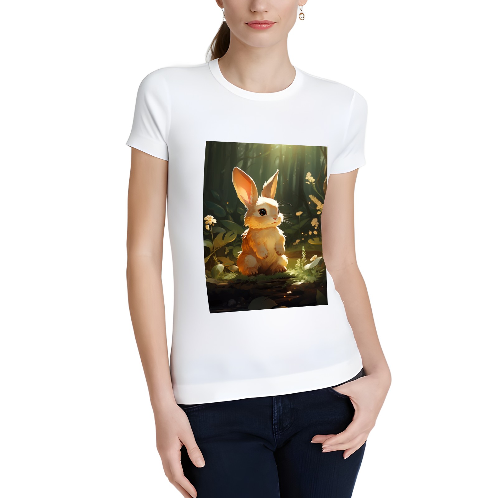 Basic Oversize Tees For WomenBjkj_a_rabbit_sitting_in_the_forest_in_the_style_of_anime-insp_8a680e06-3f72-4baa-bd9f-d9bc59f9a95b Loose Boyfriend Shirts Casual Blouse round neck