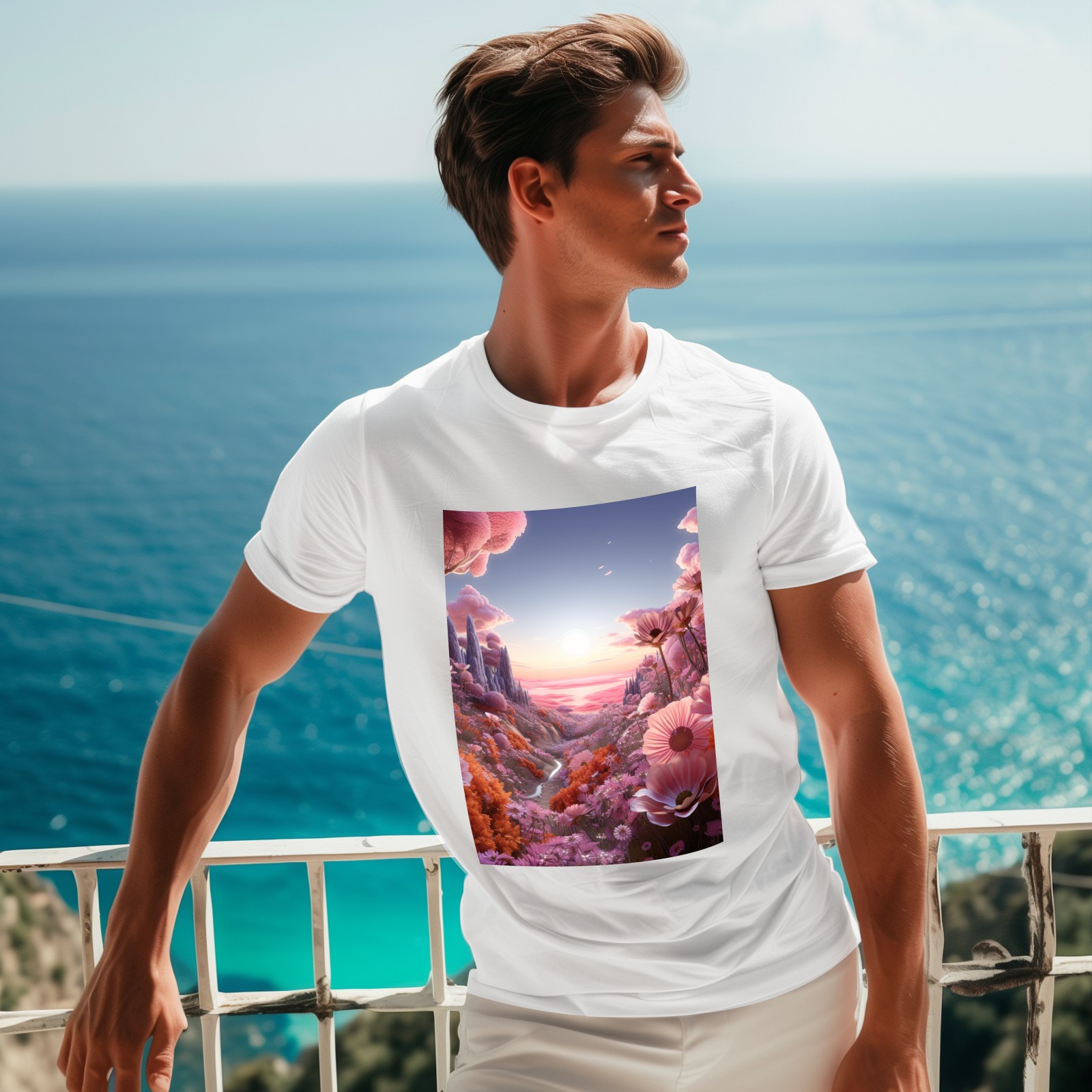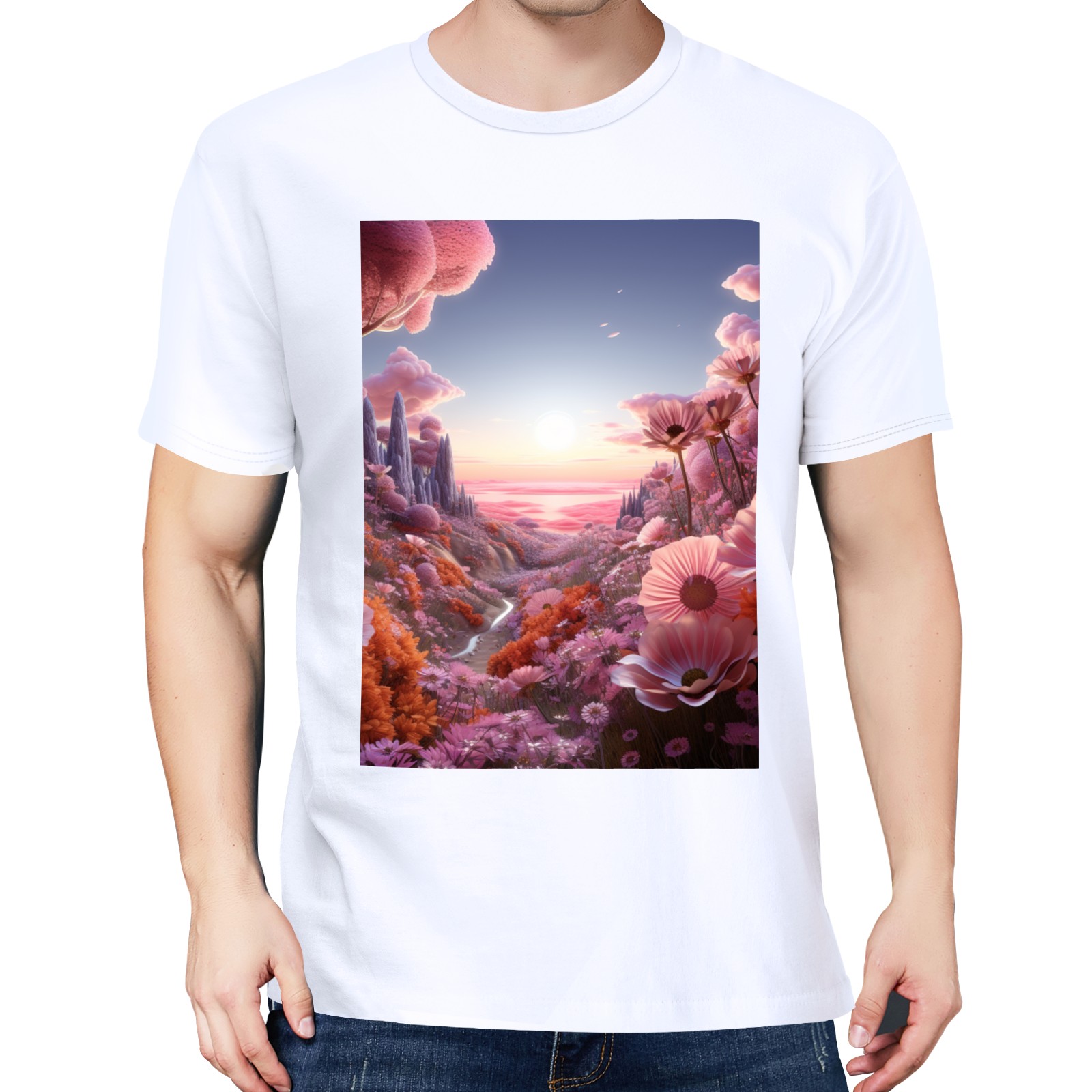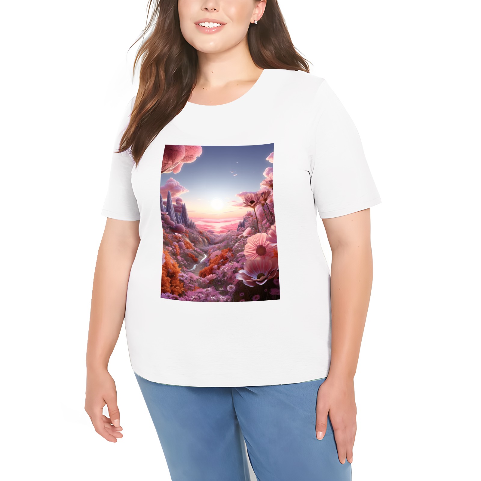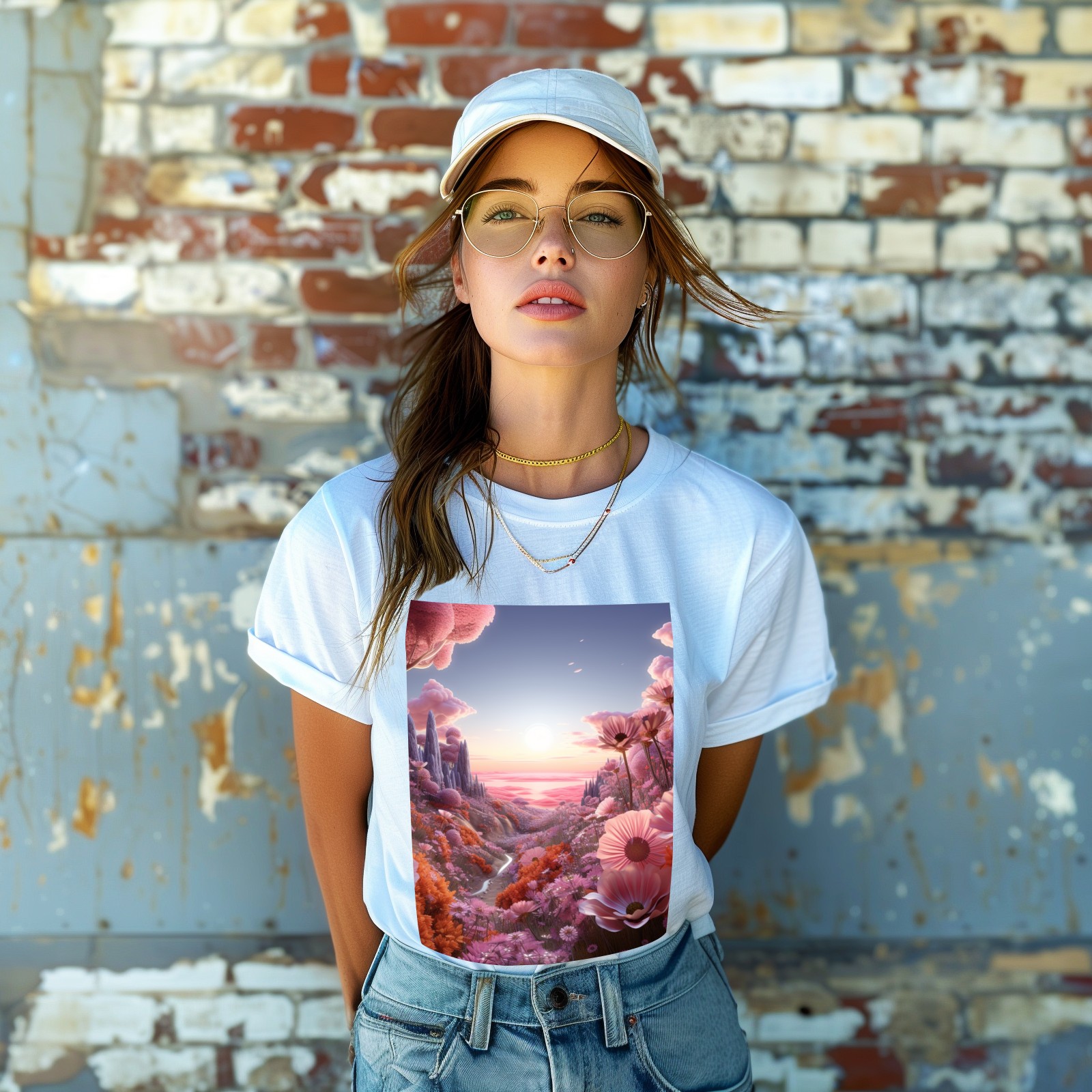 Basic Oversize Tees For WomenBjkj_a_pink_and_purple_dreamscape_in_the_style_of_delicately_r_fb605415-0cb7-4986-8223-77ac924e1146 Loose Boyfriend Shirts Casual Blouse round neck