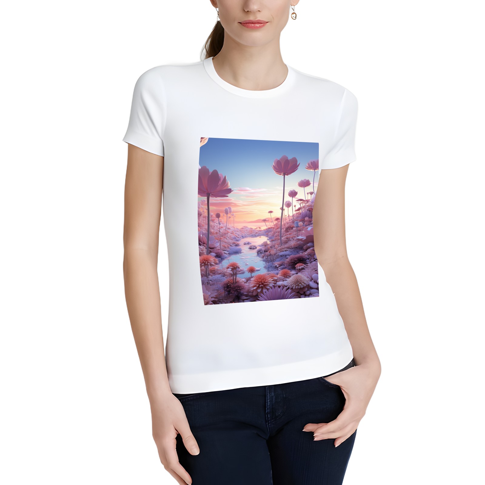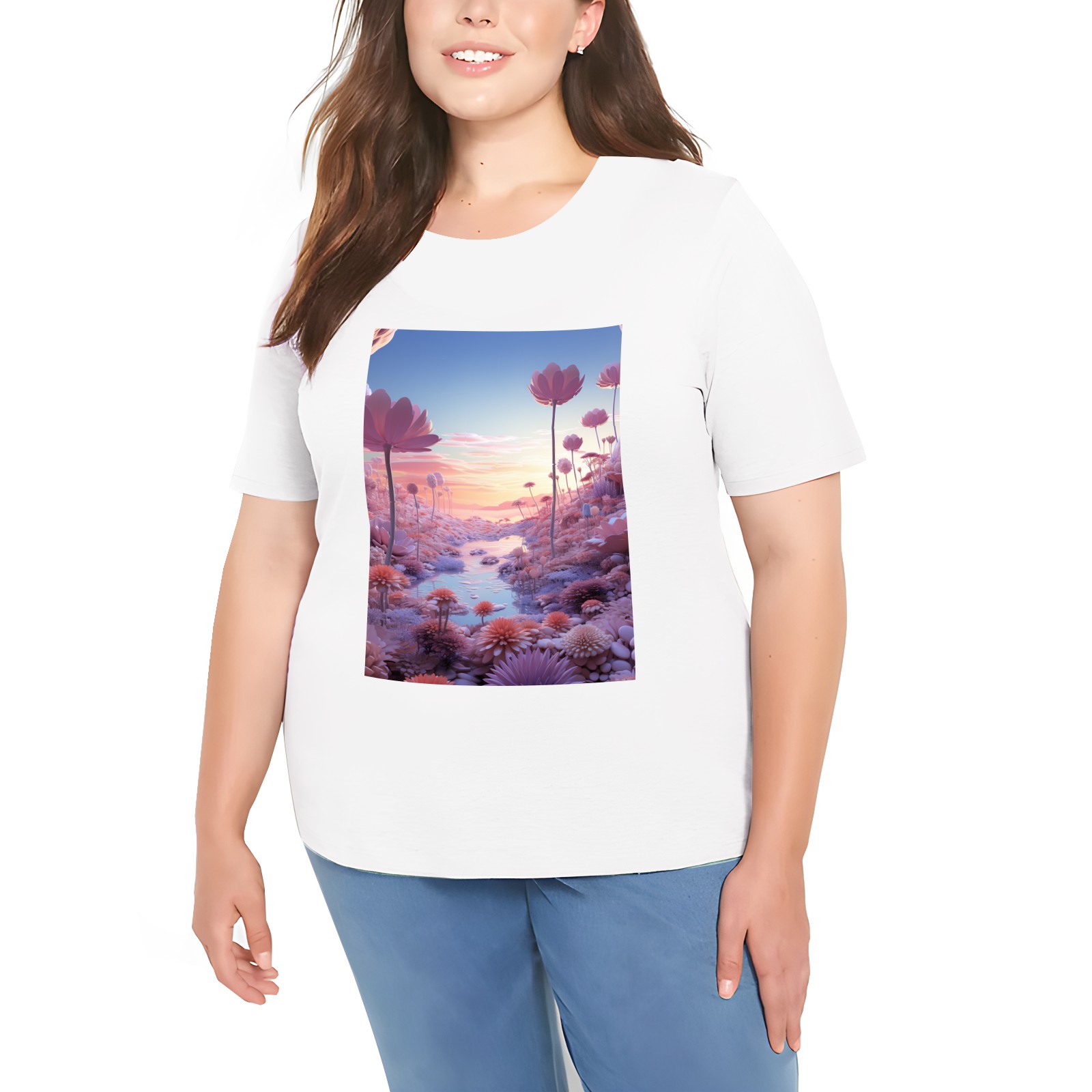 Basic Oversize Tees For WomenBjkj_a_pink_and_purple_dreamscape_in_the_style_of_delicately_r_dd118eb3-83b0-4a04-afaa-5c3e6c87c204 Loose Boyfriend Shirts Casual Blouse round neck