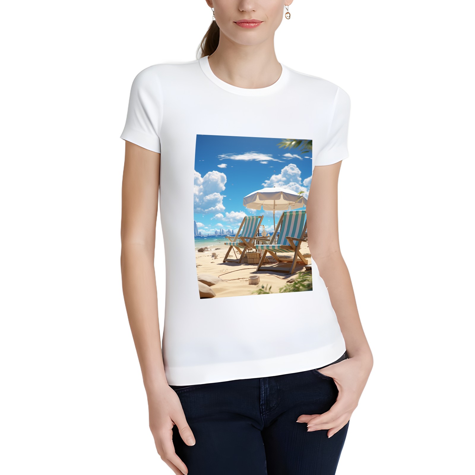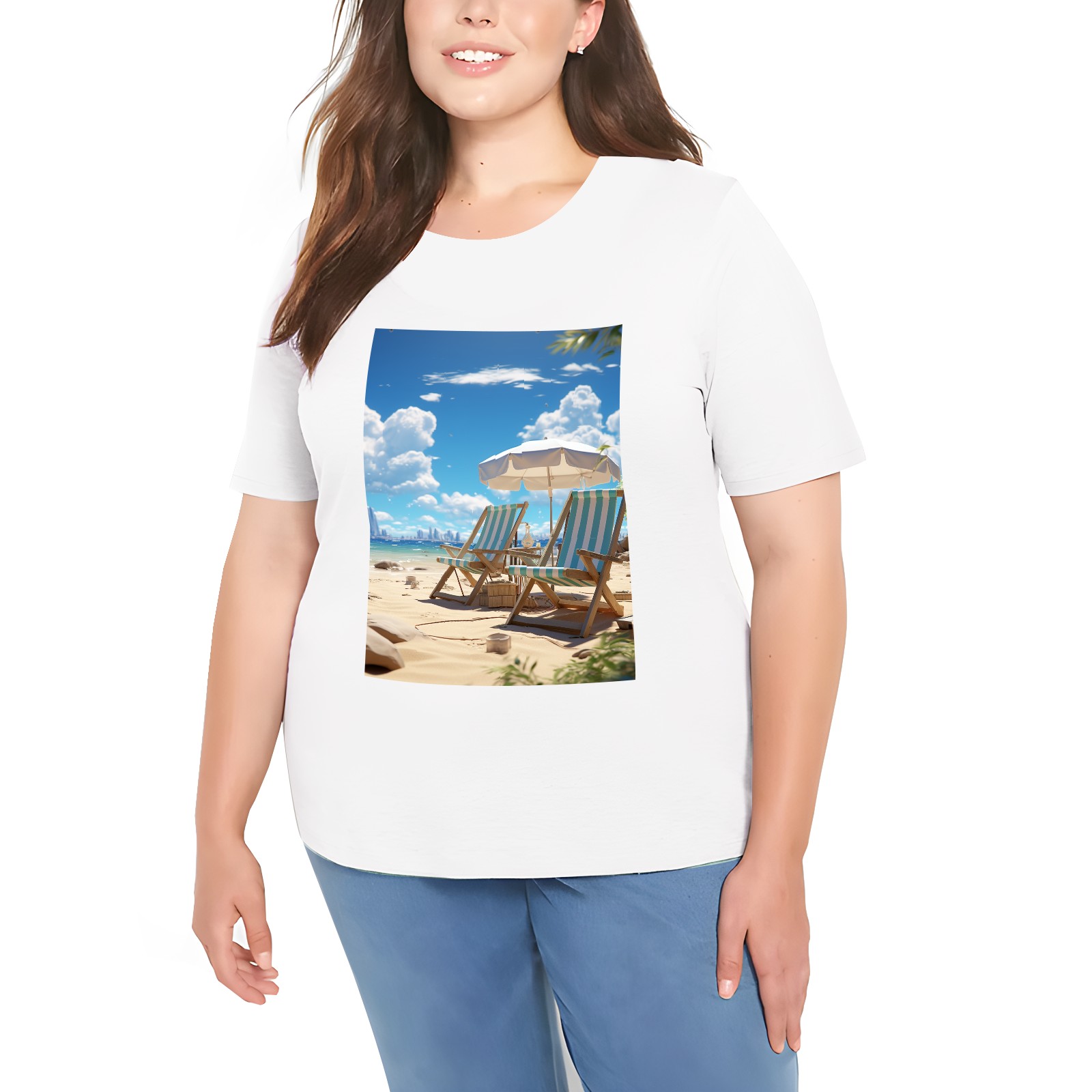 Basic Oversize Tees For WomenSeaside (51) Loose Boyfriend Shirts Casual Blouse round neck