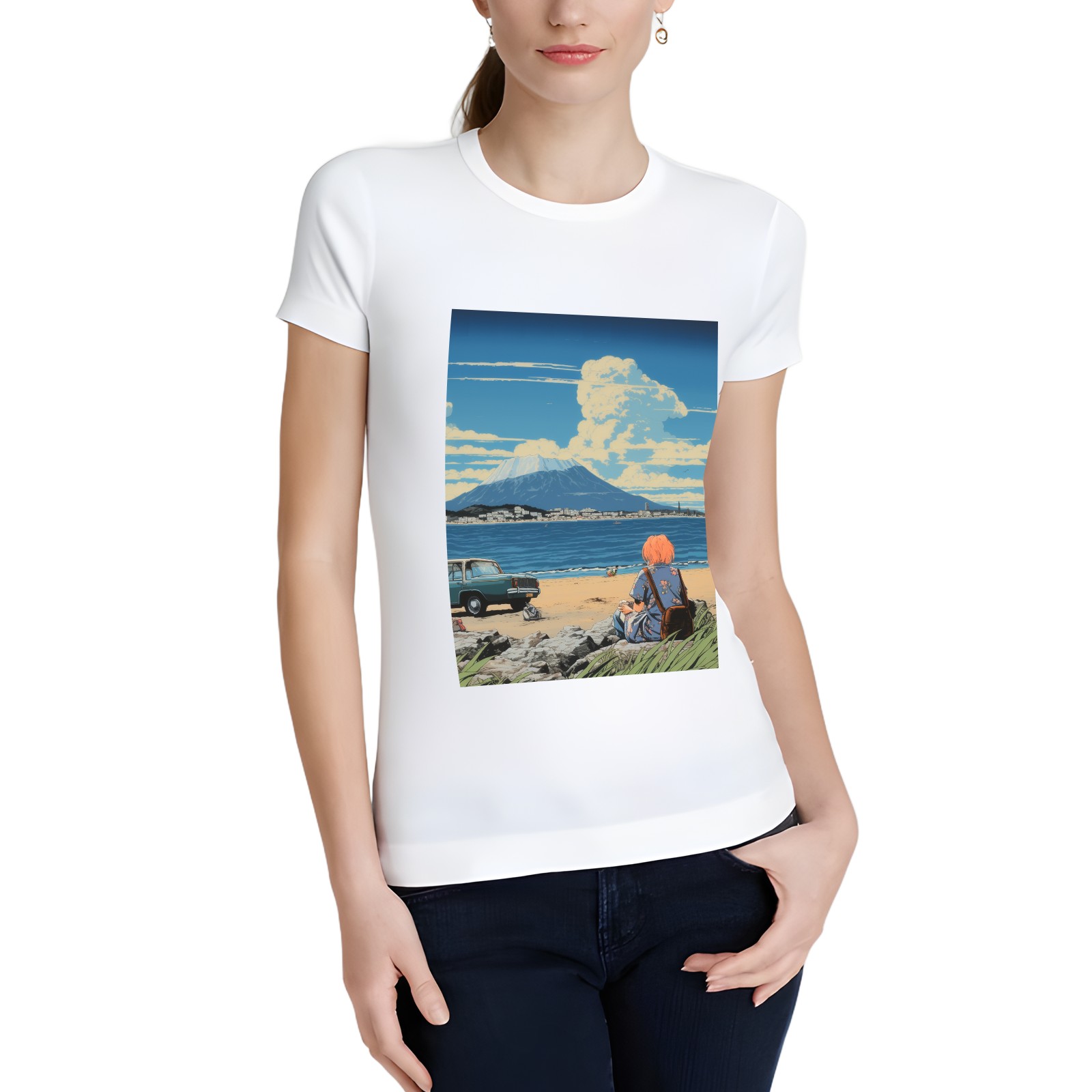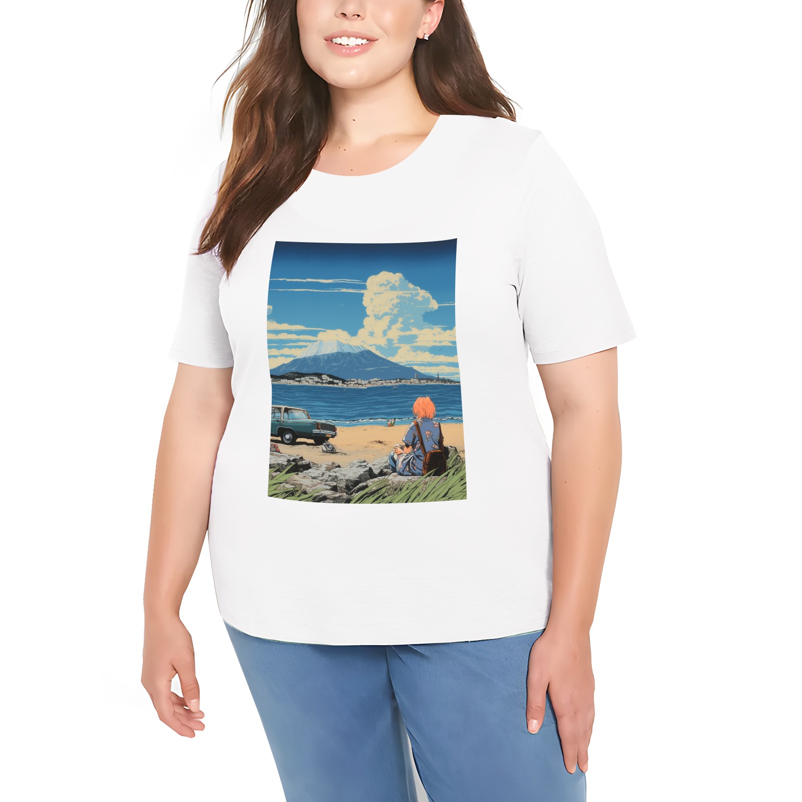 Basic Oversize Tees For WomenSeaside (47) Loose Boyfriend Shirts Casual Blouse round neck