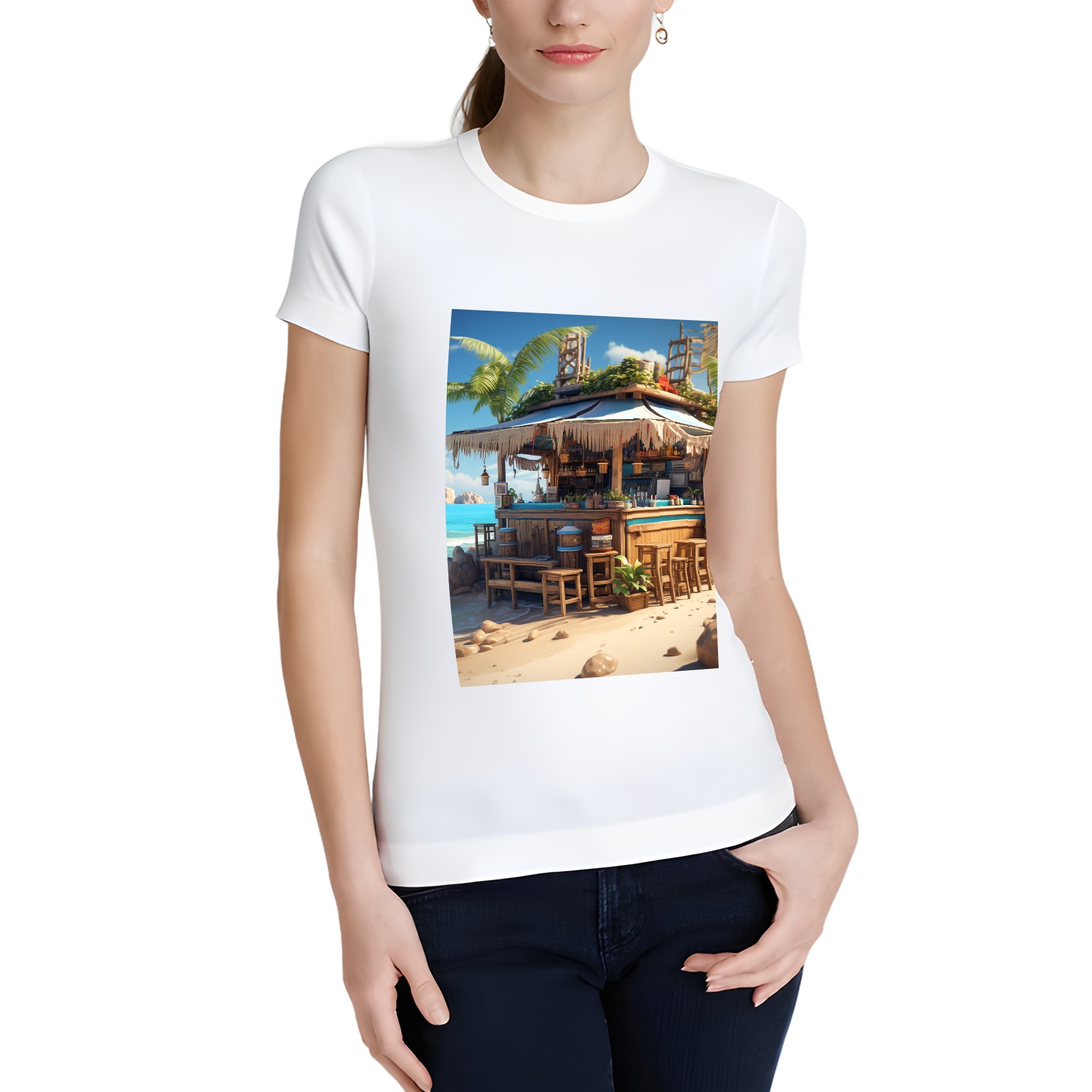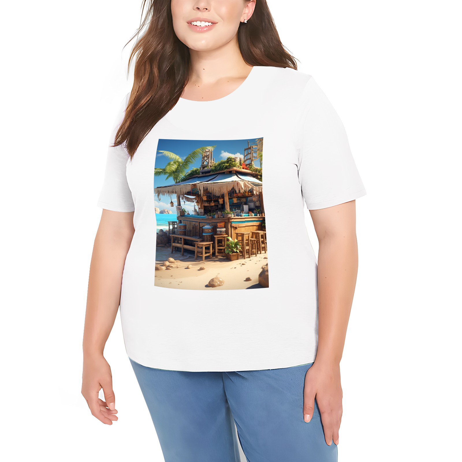 Basic Oversize Tees For WomenSeaside (42) Loose Boyfriend Shirts Casual Blouse round neck