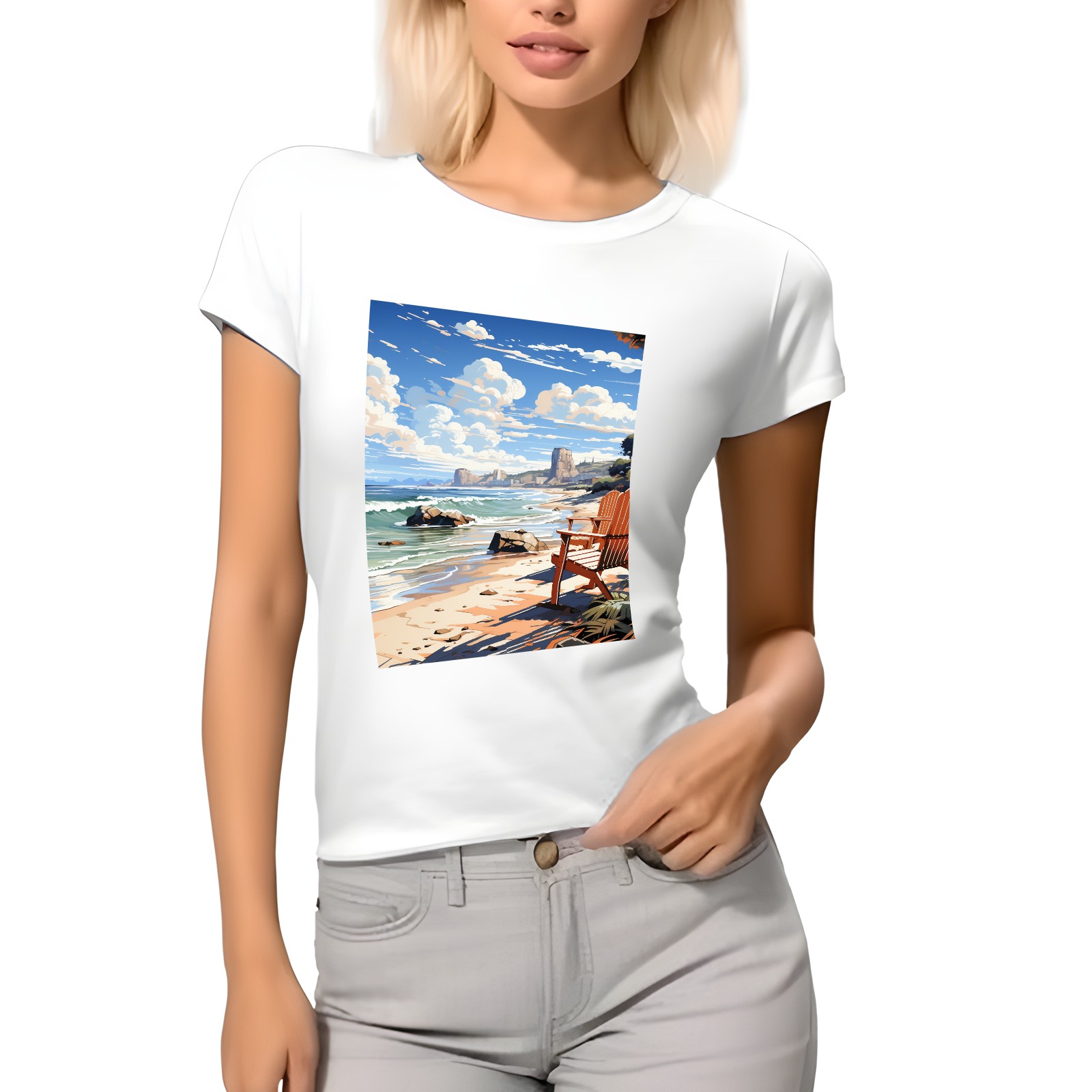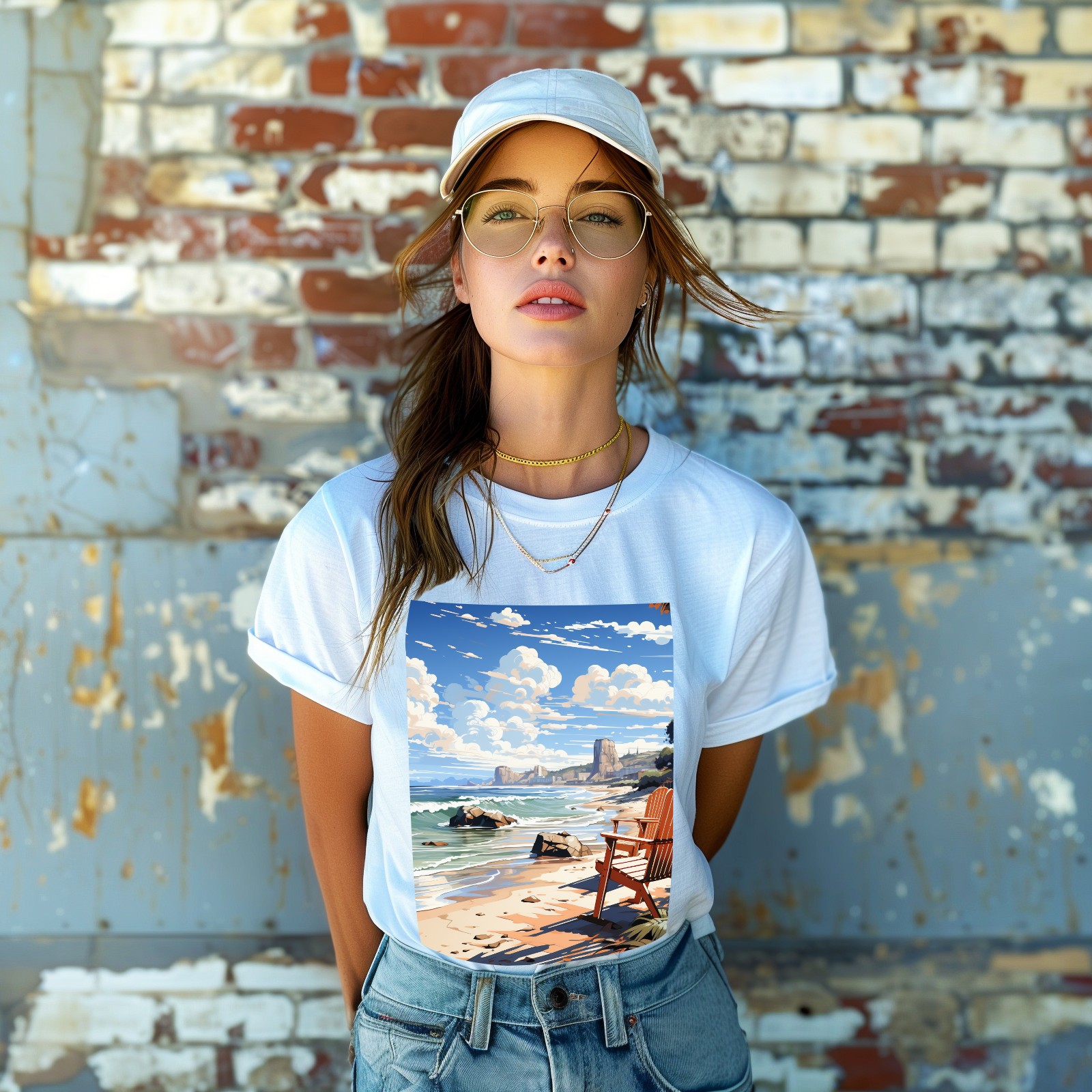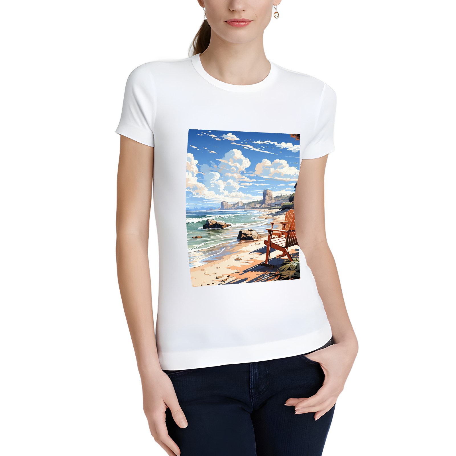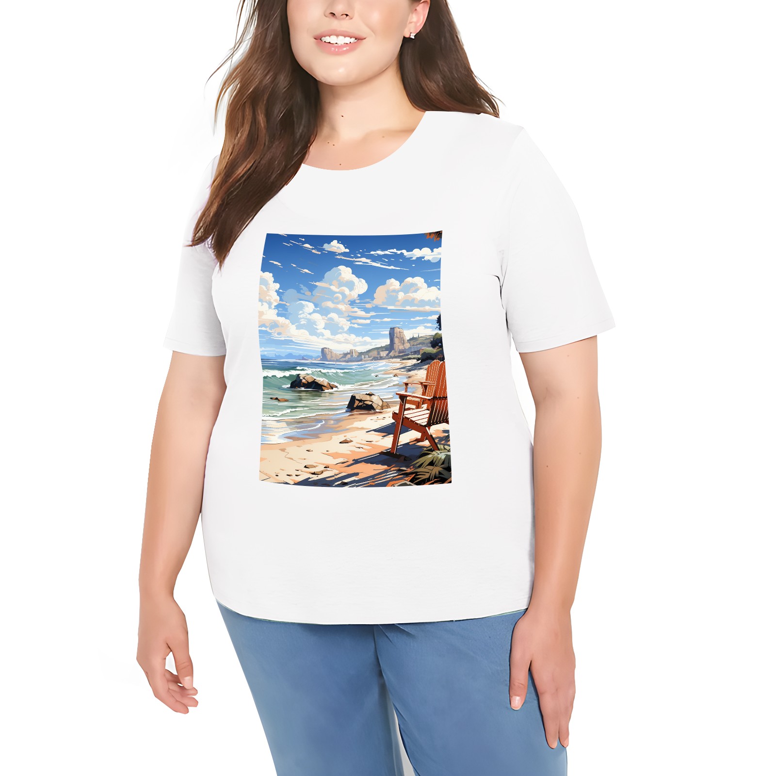 Basic Oversize Tees For WomenSeaside (36) Loose Boyfriend Shirts Casual Blouse round neck