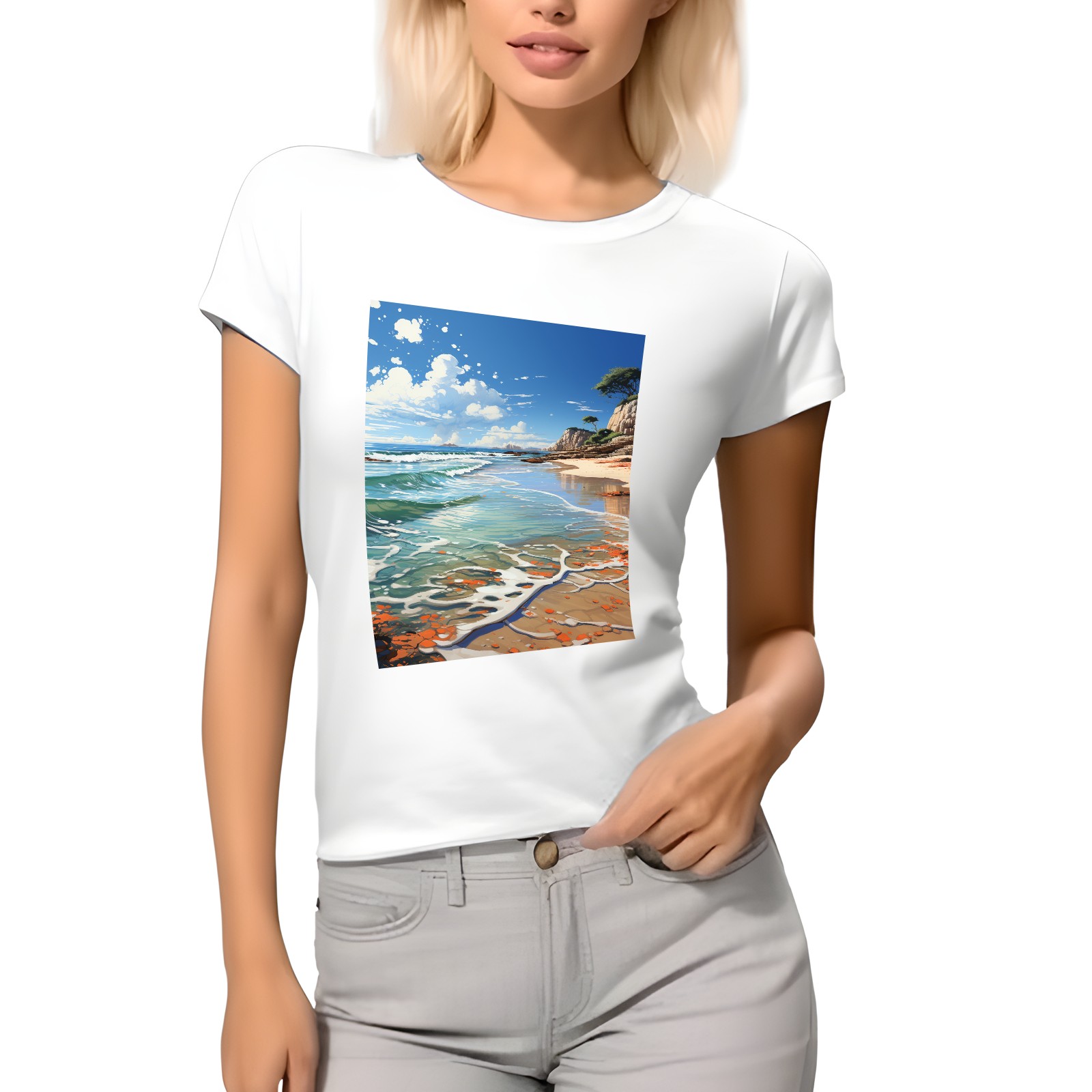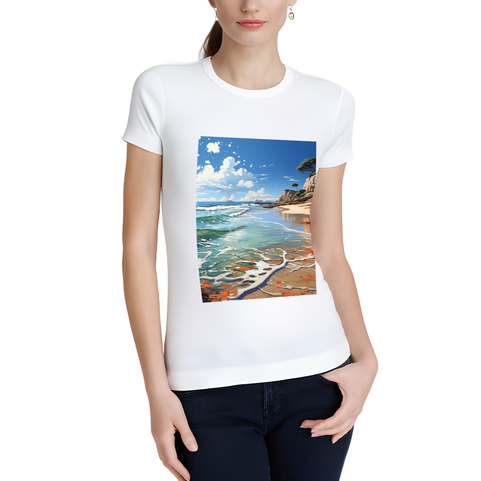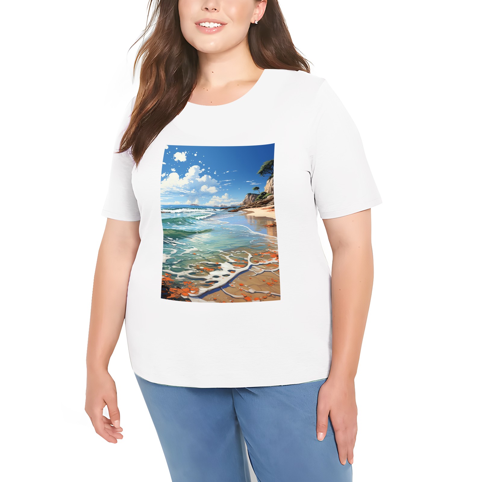 Basic Oversize Tees For WomenSeaside (35) Loose Boyfriend Shirts Casual Blouse round neck
