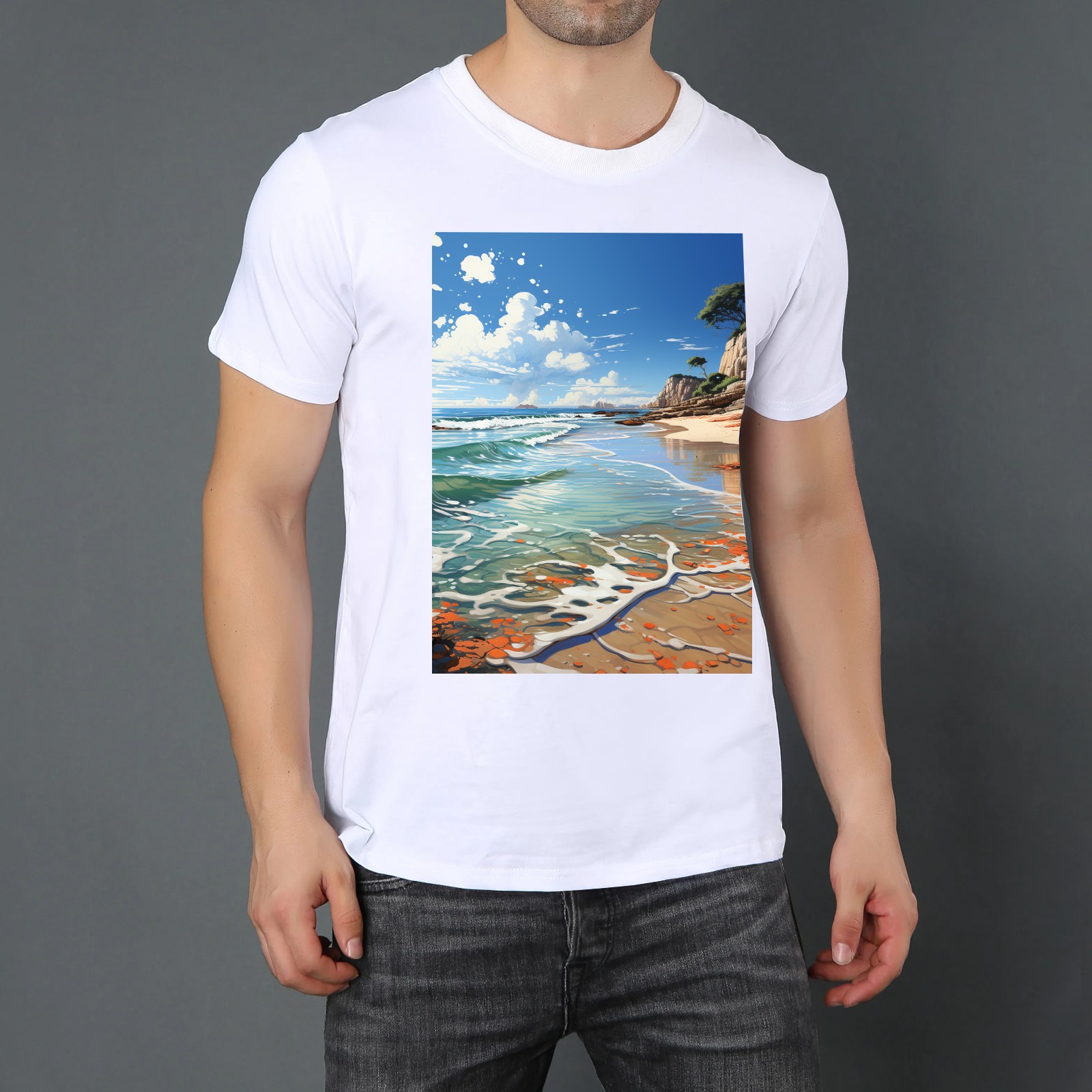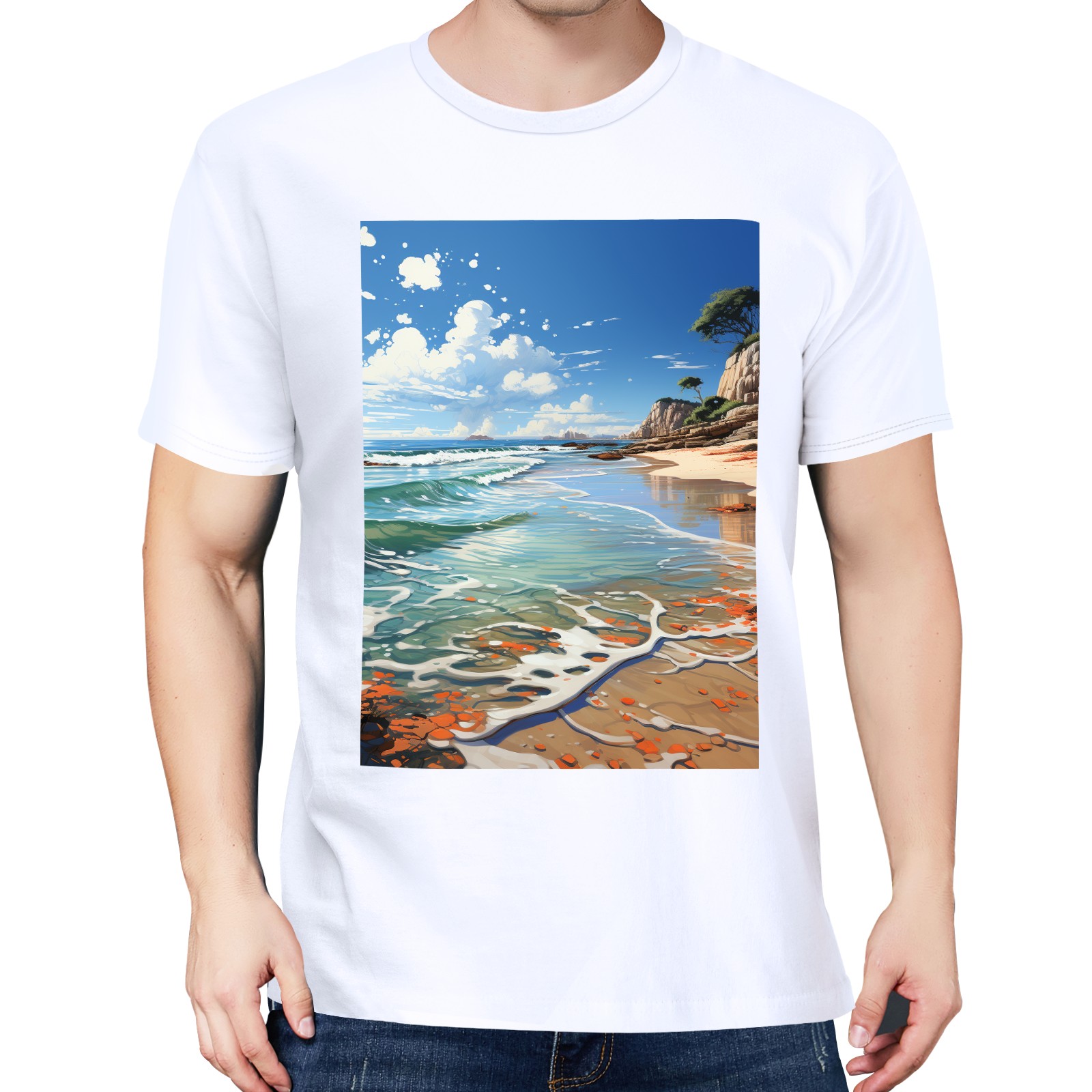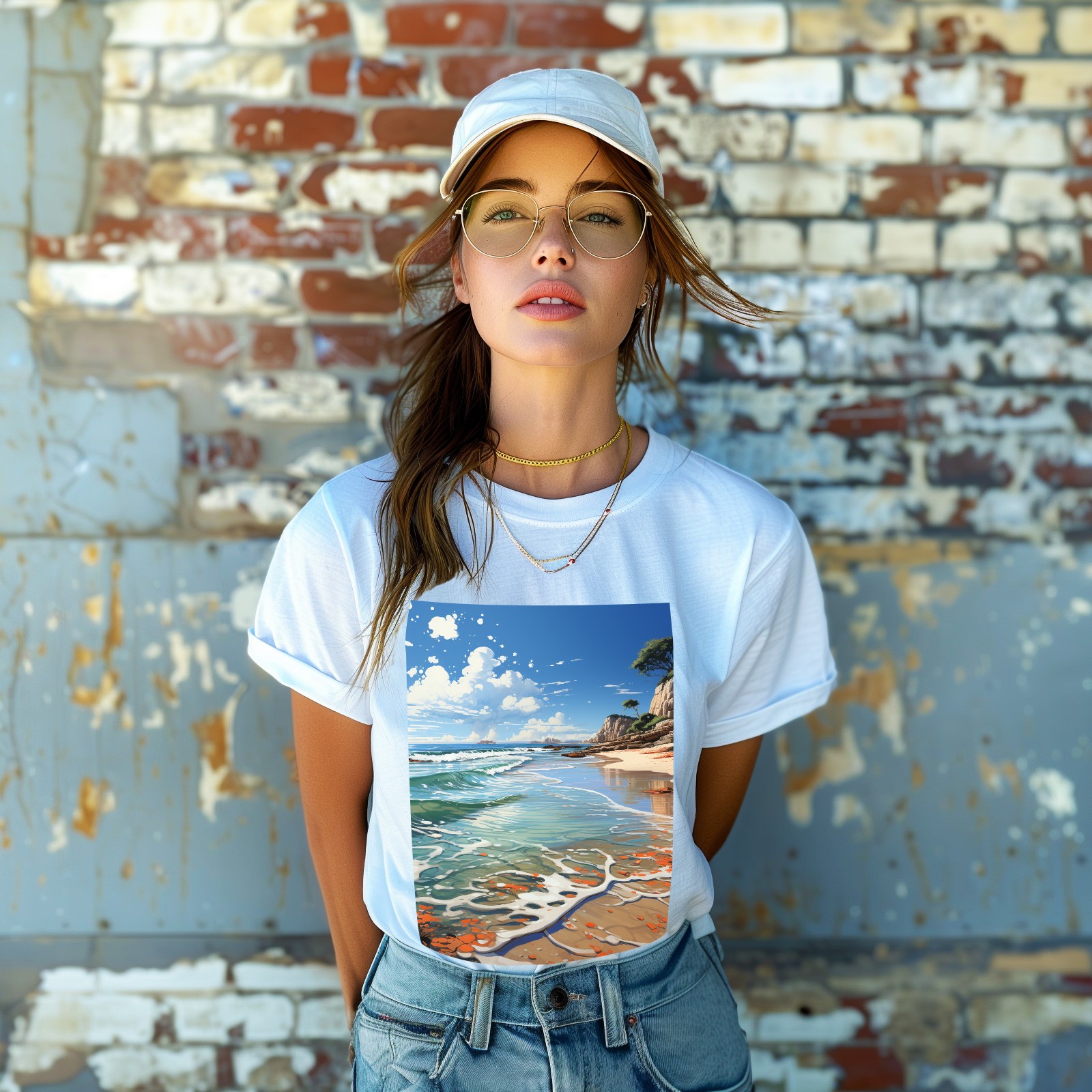 Basic Oversize Tees For WomenSeaside (35) Loose Boyfriend Shirts Casual Blouse round neck
