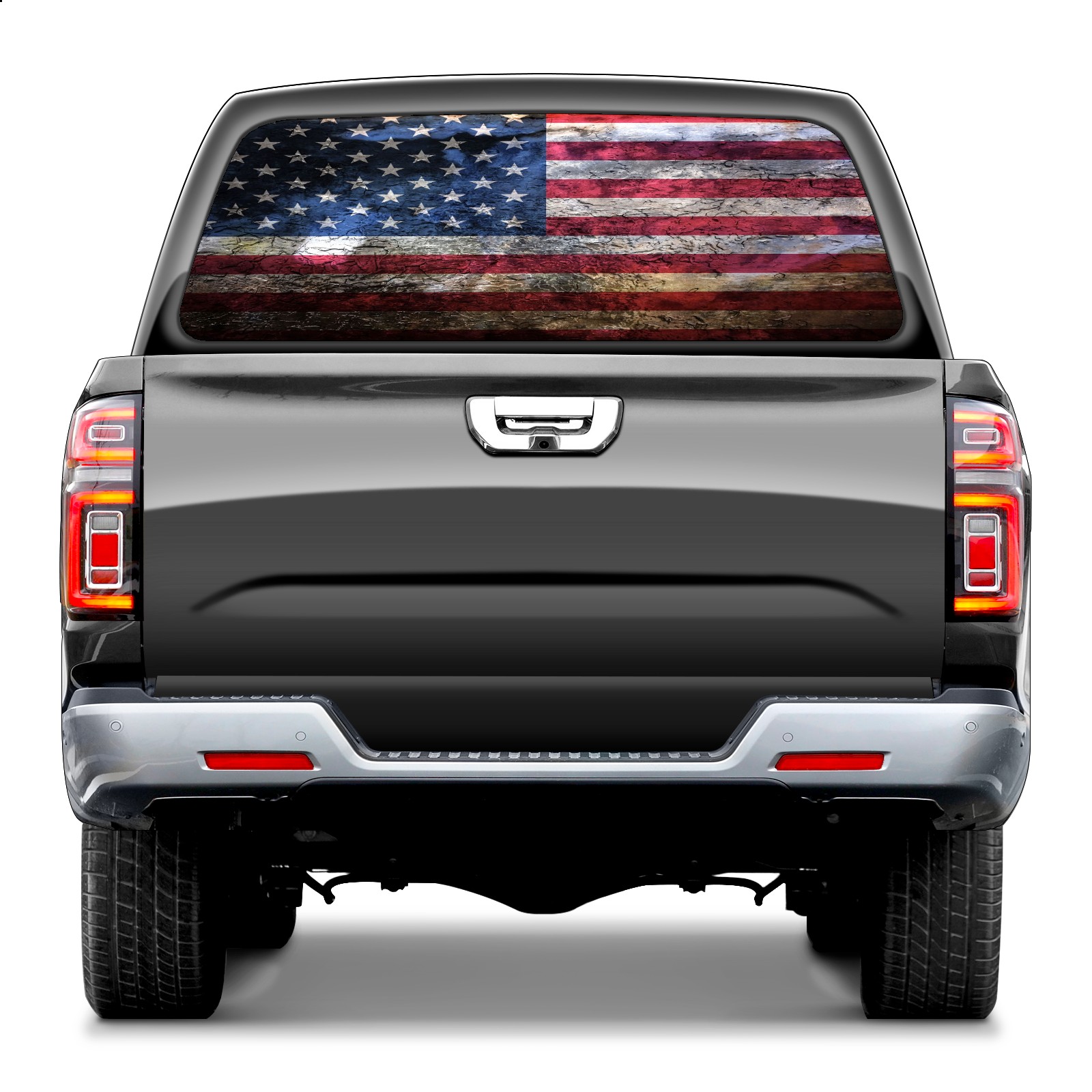 Truck Rear Window Graphic Decals Retro Old American Flag USA Pickup Car Window Stickers 66" x 22" Truck Back Window Perforated Vinyl Window Film Decal for Trucks SUV