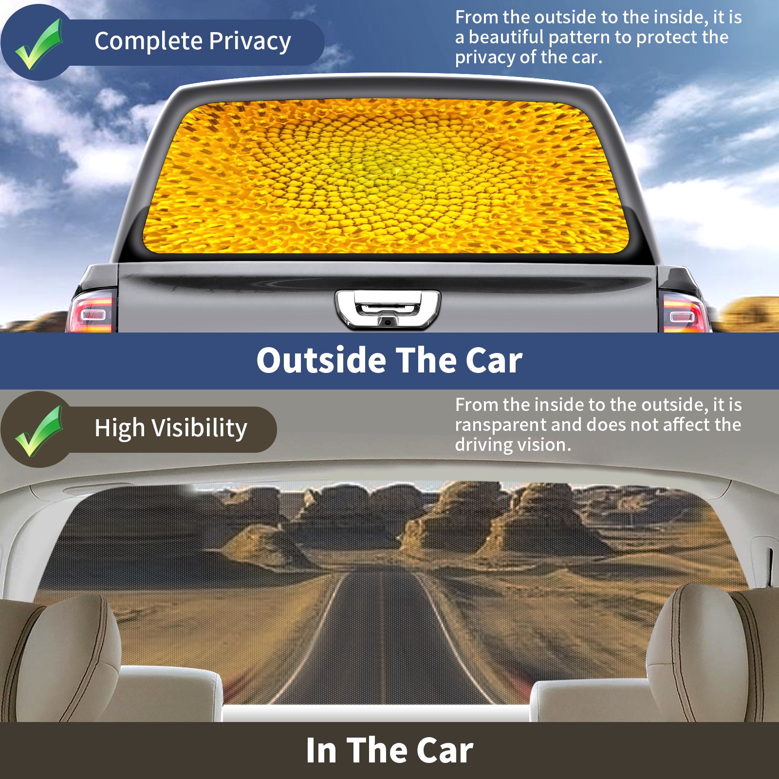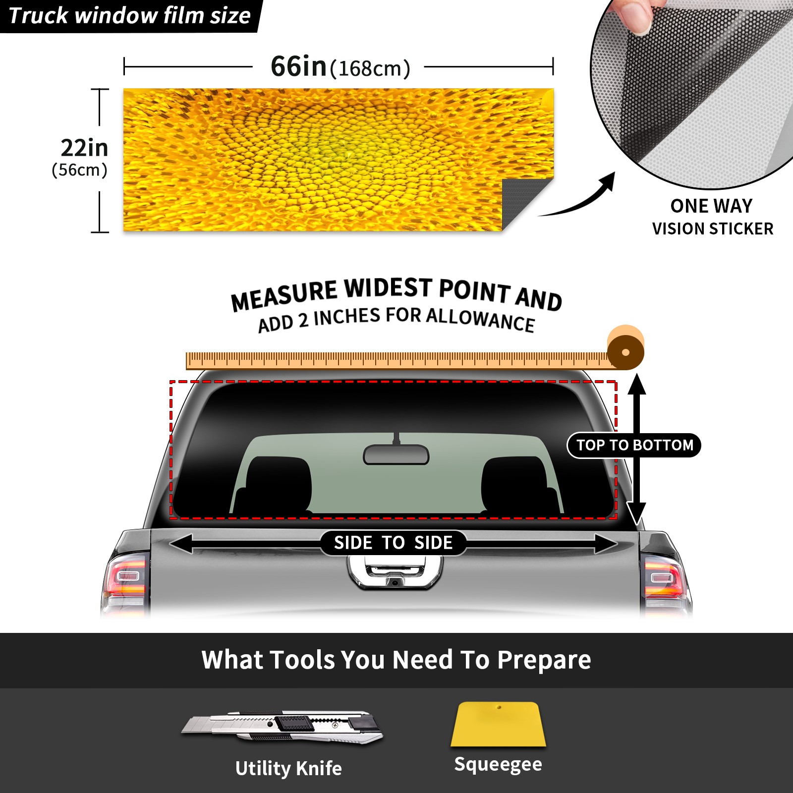 Truck Rear Window Graphic Decals Sunflower Yellow Pickup Car Window Stickers 66" x 22" Truck Back Window Perforated Vinyl Window Film Decal for Trucks SUV
