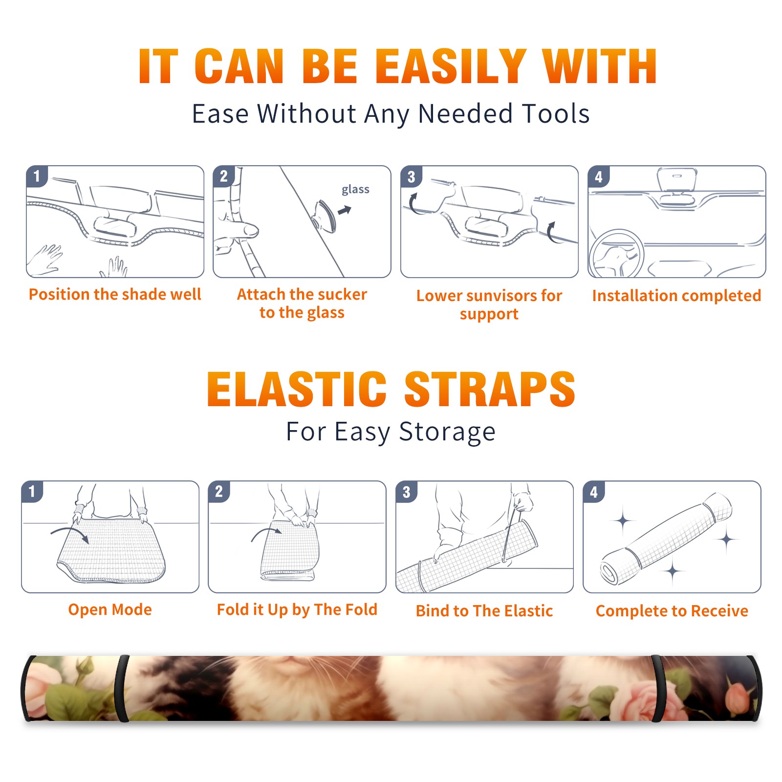 Car Windshield Sun Shade For Front Window Cat Foldable Vehicle Windshield Car Sun Visor Covers Automotive Window Protector Car Camping Privacy Sun Blocker