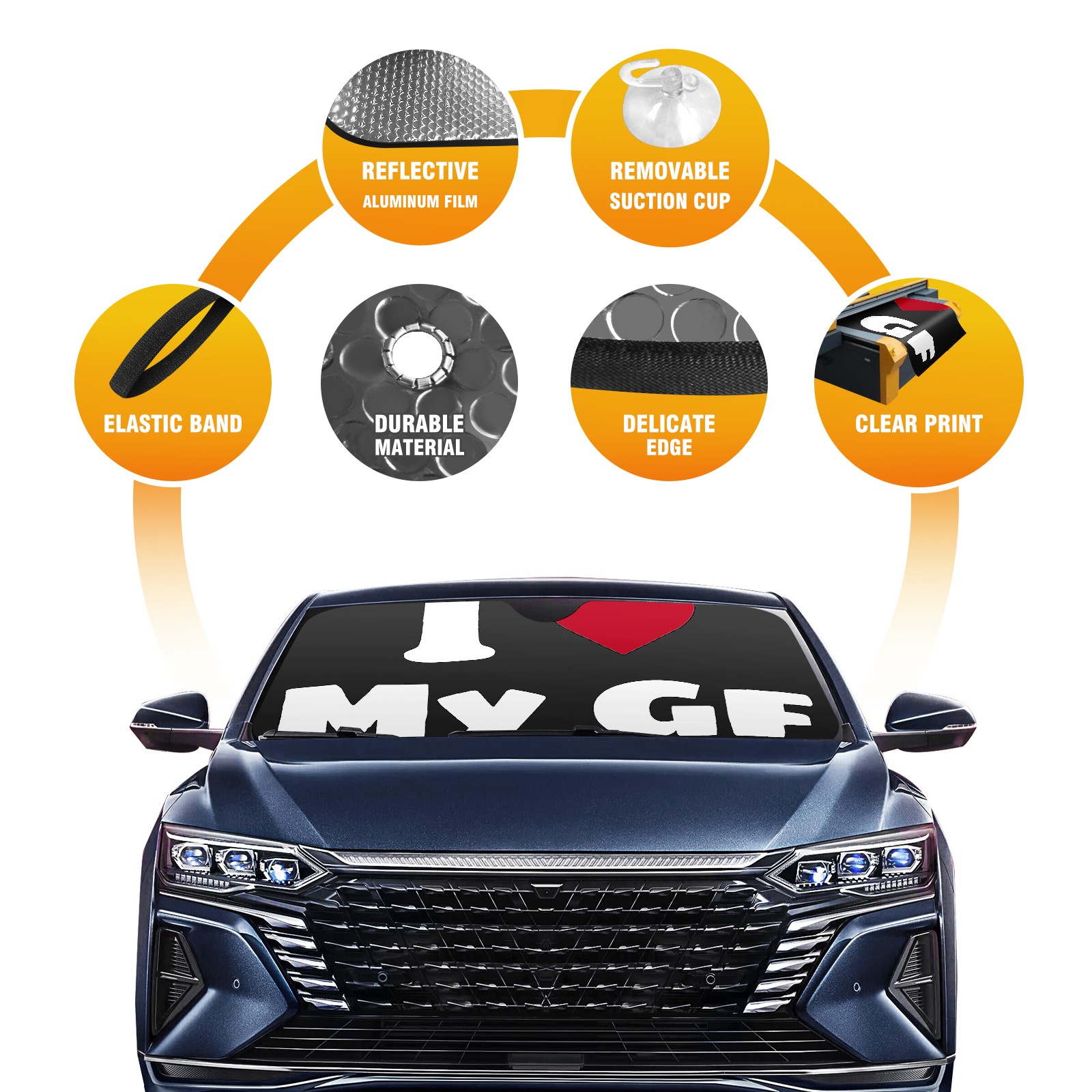 Car Windshield Sun Shade For Front Window Love Foldable Vehicle Windshield Car Sun Visor Covers Automotive Window Protector Car Camping Privacy Sun Blocker