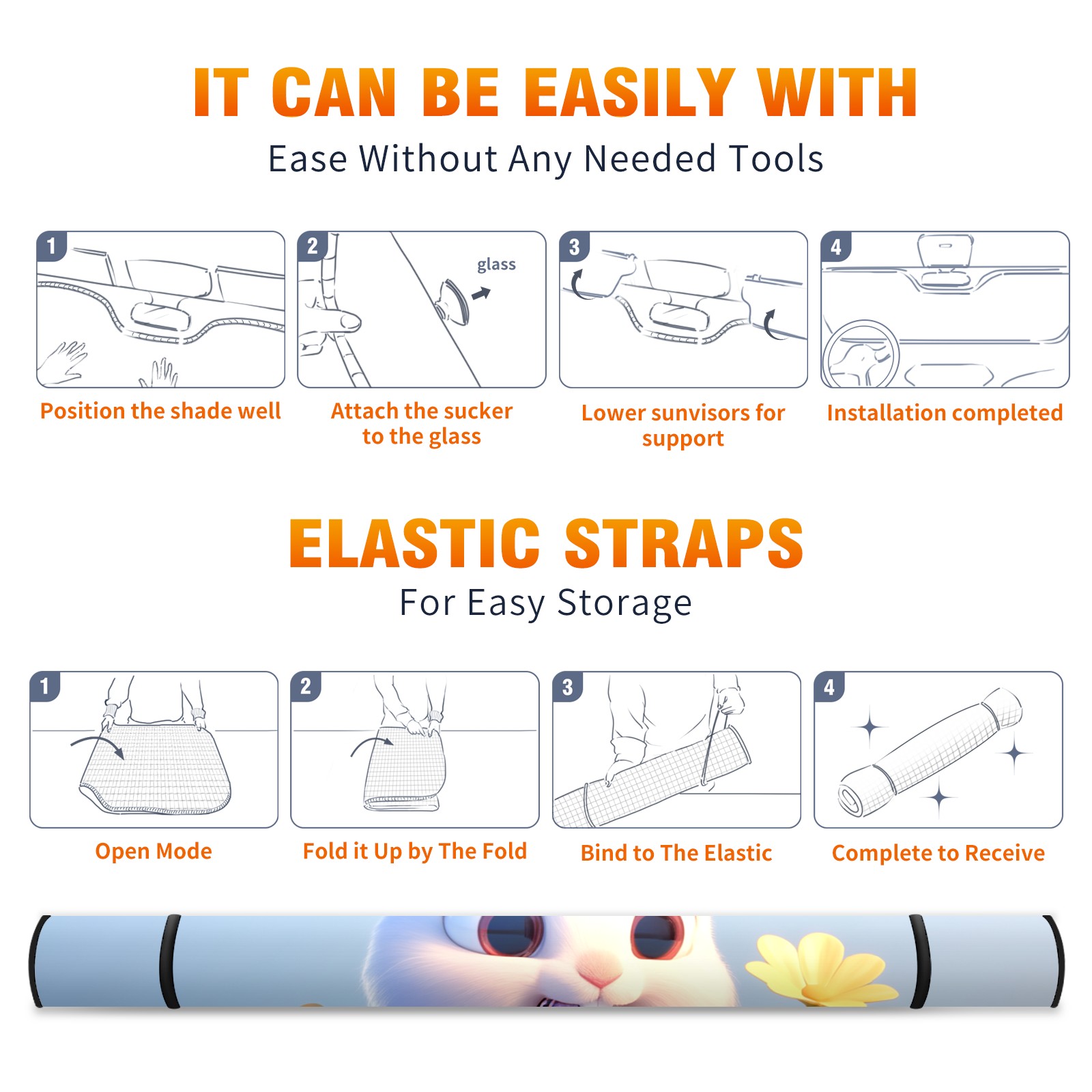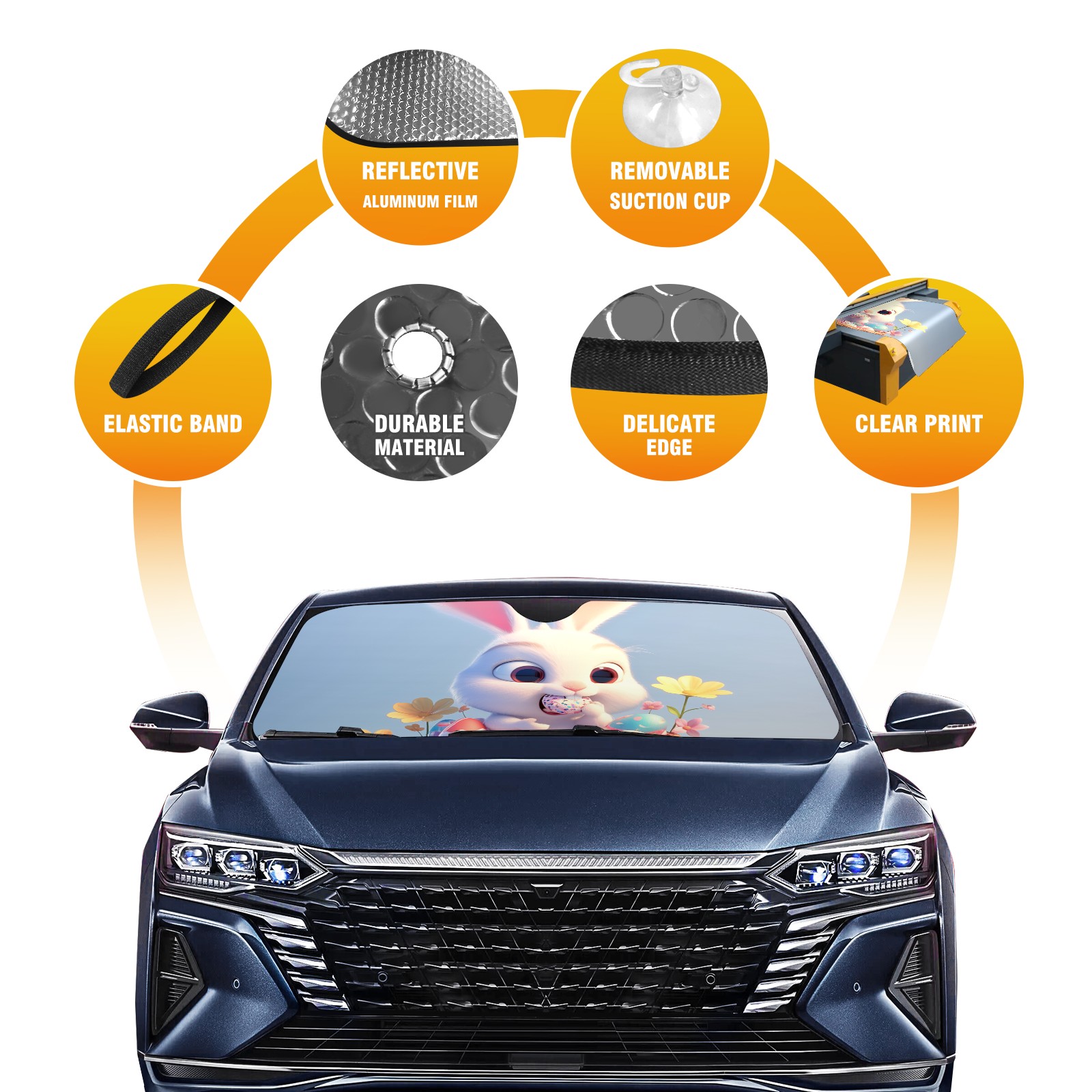 Car Windshield Sun Shade For Front Window Rabbit Foldable Vehicle Windshield Car Sun Visor Covers Automotive Window Protector Car Camping Privacy Sun Blocker