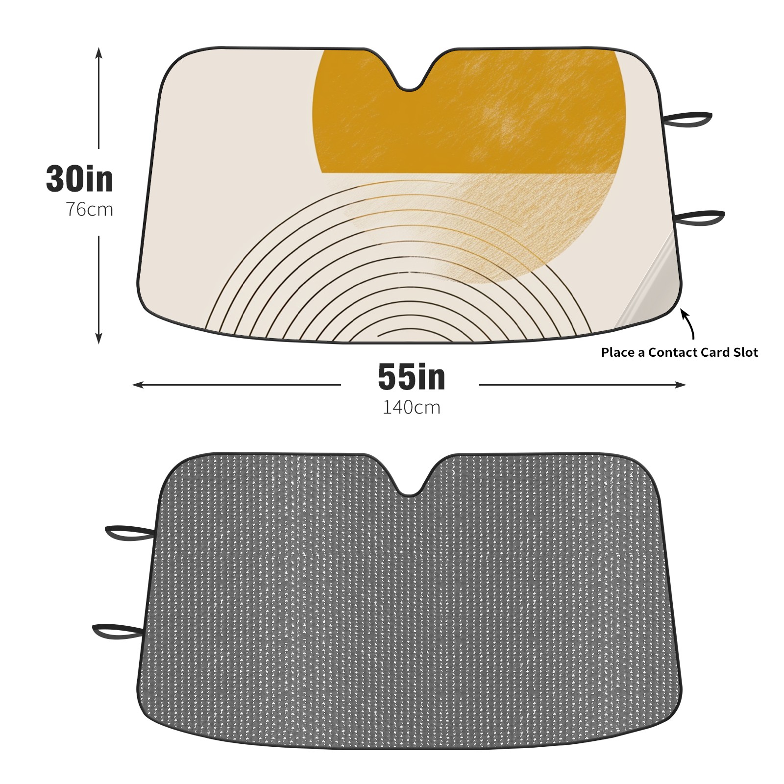 Diameter /Size 63"L x 33.5"W Made from excellent materials which makes it sturdy and protects the car from the sun. Easy to use and pack. Makes the interior of the car cooler.You can easily stash the sunshade in the storage bag or store long term.It open and closes easy. Also the leather storage bag is durable and easy to put the umbrella back into.This windshield sunshade provides complete coverage and keeps your car interior cool under direct sun. It is easy to open and position under the windshield and around the rear-view mirror. Makes Your Car Easy To Identify, Perfect For Finding Your Car In Crowded Parking Lots And Garages.Great Choice: It Is A Great Gift For Dad, Boyfriend, Brother, Brother And Uncle, Friends, Classmates, Family And So On. Notice: Due To Difference Computer Monitors, The Color Maybe Slightly Different From Picture. As Different Measurement Methods, Measurement Data Will Float Within 2%.I Hope You Understand. If You Have Any Question About The Item Please Do Not Hesitate To Contact Us Immediately And We Will Give You A Satisfactory Reply Within 24 Hours.