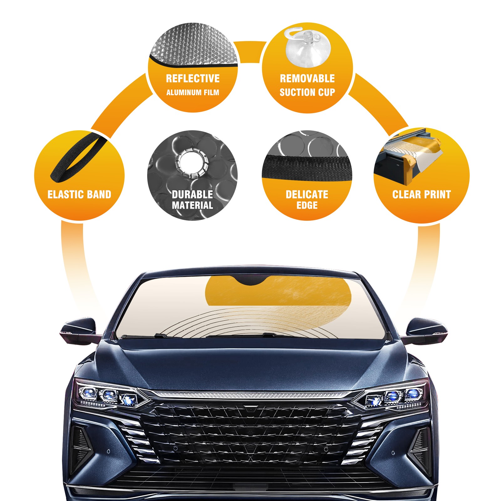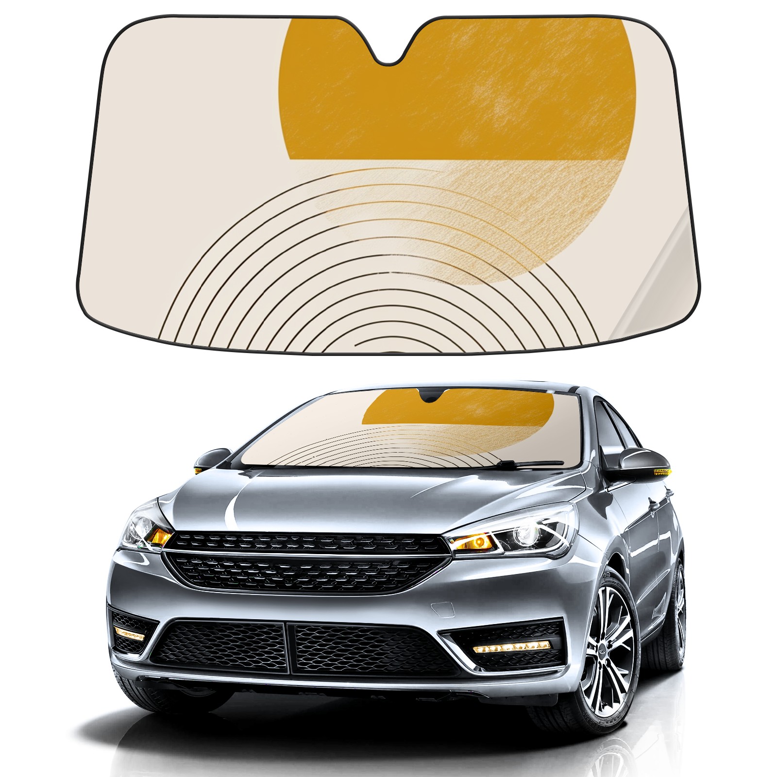 • Diameter /Size 63"L x 33.5"W Made from excellent materials which makes it sturdy and protects the car from the sun. Easy to use and pack. Makes the interior of the car cooler.You can easily stash the sunshade in the storage bag or store long term.It open and closes easy. Also the leather storage bag is durable and easy to put the umbrella back into.This windshield sunshade provides complete coverage and keeps your car interior cool under direct sun. It is easy to open and position under the windshield and around the rear-view mirror. Makes Your Car Easy To Identify, Perfect For Finding Your Car In Crowded Parking Lots And Garages.Great Choice: It Is A Great Gift For Dad, Boyfriend, Brother, Brother And Uncle, Friends, Classmates, Family And So On. Notice: Due To Difference Computer Monitors, The Color Maybe Slightly Different From Picture. As Different Measurement Methods, Measurement Data Will Float Within 2%.I Hope You Understand. If You Have Any Question About The Item Please Do Not Hesitate To Contact Us Immediately And We Will Give You A Satisfactory Reply Within 24 Hours.