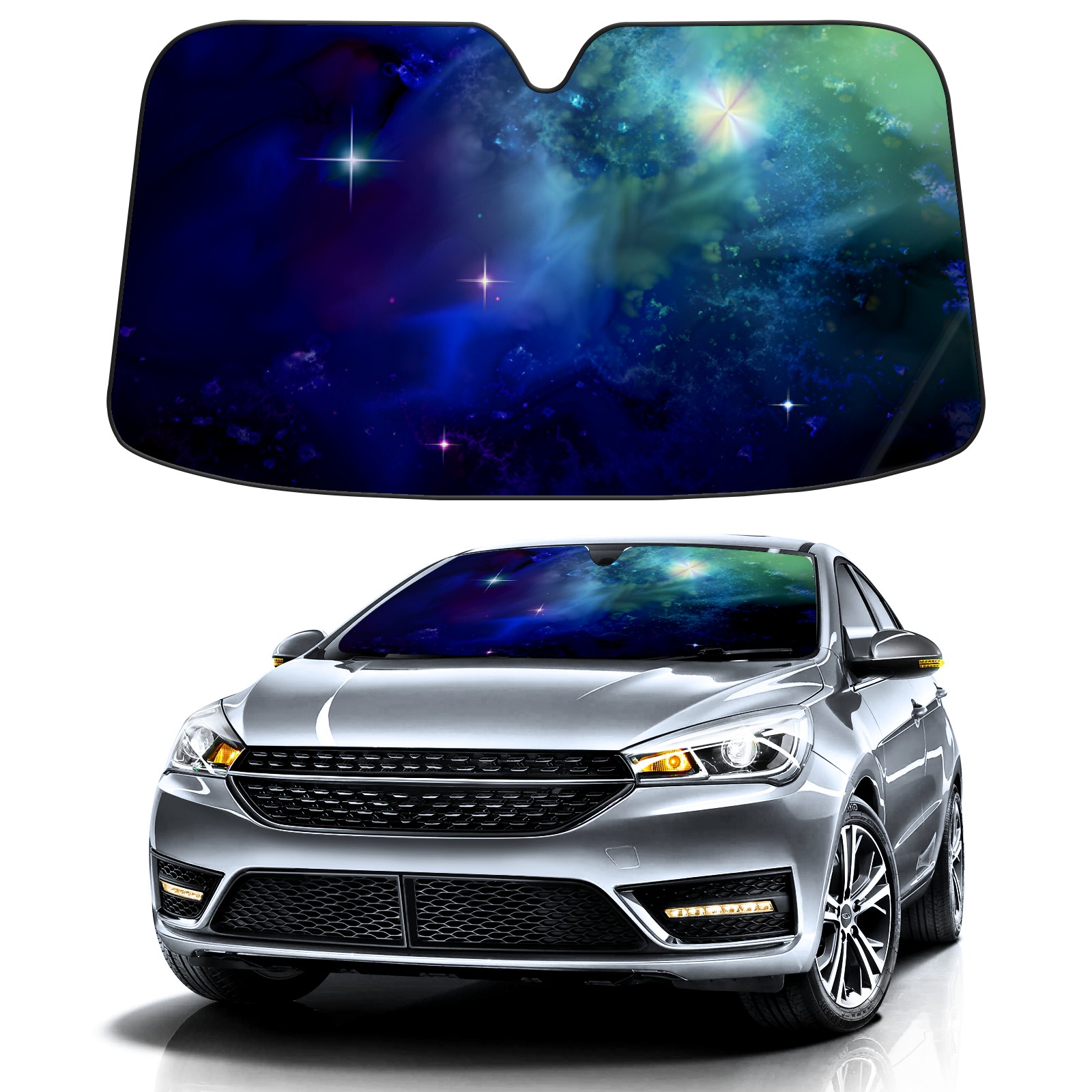 • Diameter /Size 63"L x 33.5"W Made from excellent materials which makes it sturdy and protects the car from the sun. Easy to use and pack. Makes the interior of the car cooler.You can easily stash the sunshade in the storage bag or store long term.It open and closes easy. Also the leather storage bag is durable and easy to put the umbrella back into.This windshield sunshade provides complete coverage and keeps your car interior cool under direct sun. It is easy to open and position under the windshield and around the rear-view mirror. Makes Your Car Easy To Identify, Perfect For Finding Your Car In Crowded Parking Lots And Garages.Great Choice: It Is A Great Gift For Dad, Boyfriend, Brother, Brother And Uncle, Friends, Classmates, Family And So On. Notice: Due To Difference Computer Monitors, The Color Maybe Slightly Different From Picture. As Different Measurement Methods, Measurement Data Will Float Within 2%.I Hope You Understand. If You Have Any Question About The Item Please Do Not Hesitate To Contact Us Immediately And We Will Give You A Satisfactory Reply Within 24 Hours.