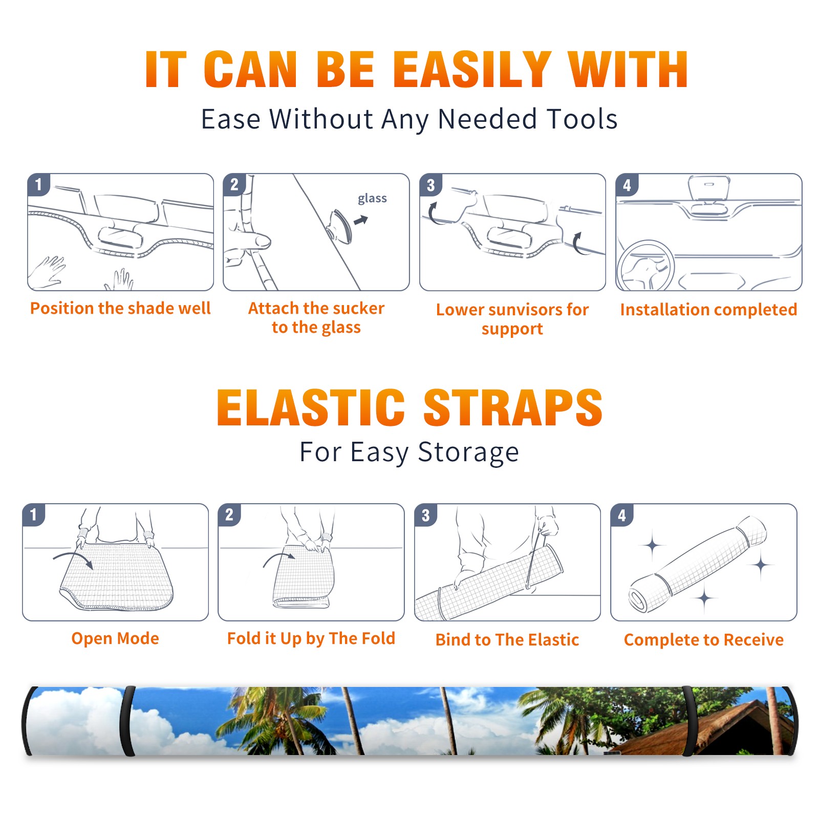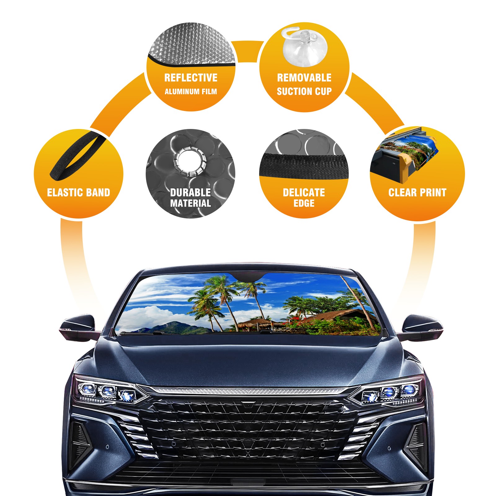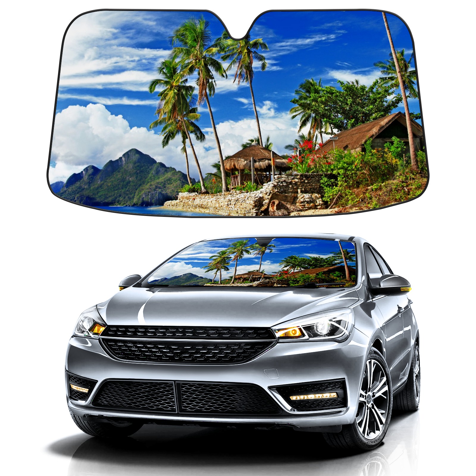 Car Windshield Sun Shade For Front Window Tropical-scenery Foldable Vehicle Windshield Car Sun Visor Covers Automotive Window Protector Car Camping Privacy Sun Blocker