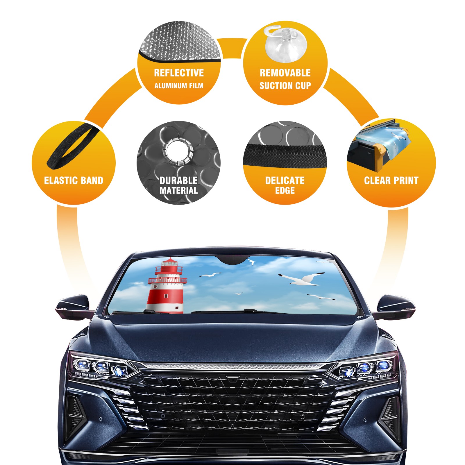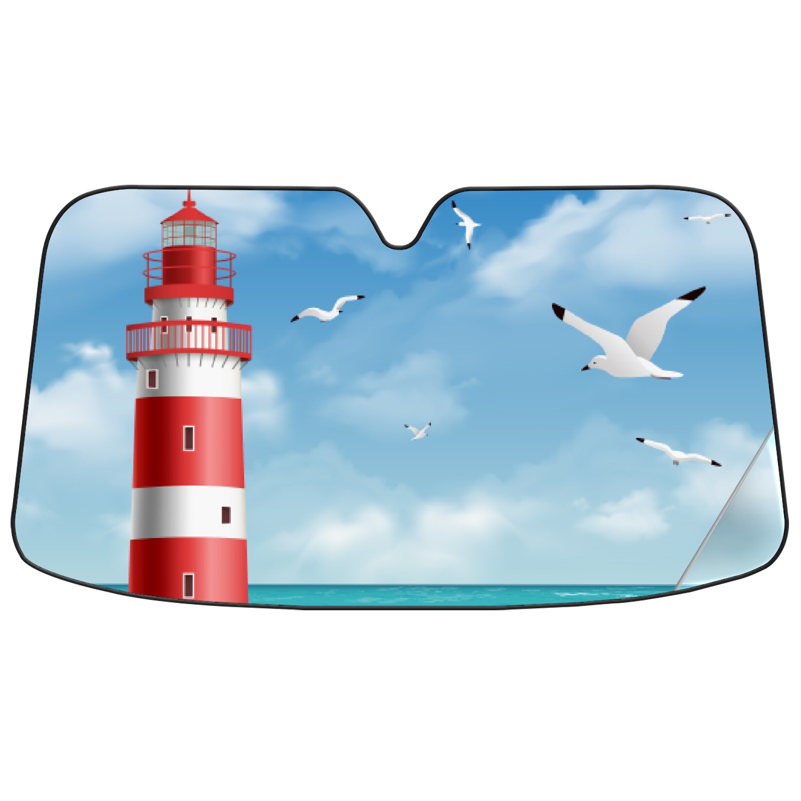 Car Windshield Sun Shade For Front Window Lighthouse And Seagulls Foldable Vehicle Windshield Car Sun Visor Covers Automotive Window Protector Car Camping Privacy Sun Blocker