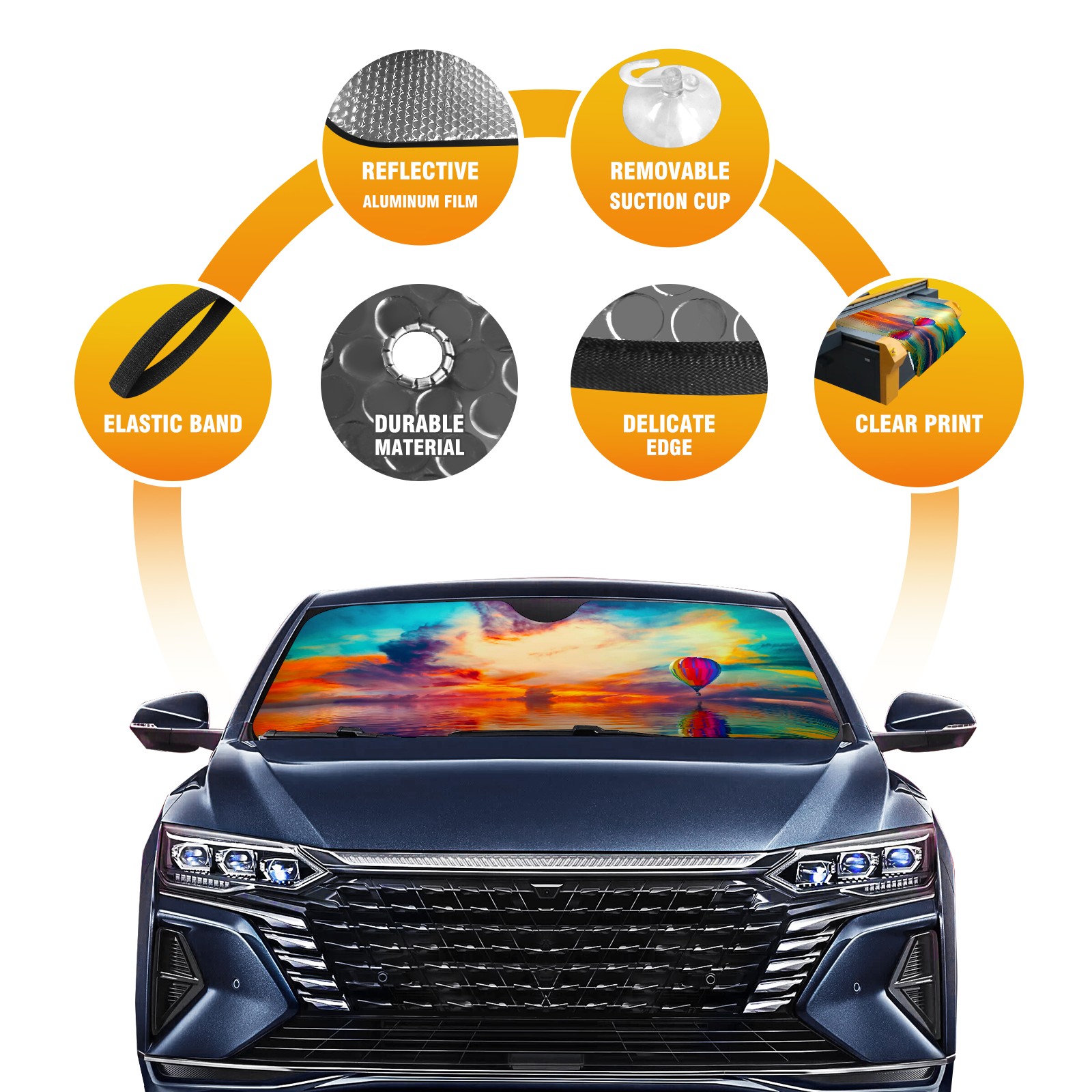 Car Windshield Sun Shade For Front Window Sunrise Hot Air Balloon Lake Colorful Foldable Vehicle Windshield Car Sun Visor Covers Automotive Window Protector Car Camping Privacy Sun Blocker