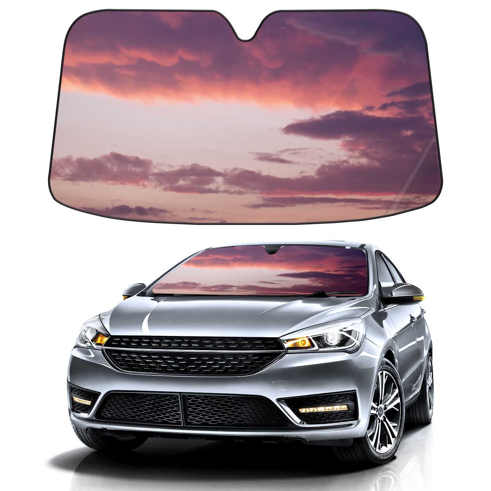 Car Windshield Sun Shade For Front Window Pink Cloud Nature Sky Foldable Vehicle Windshield Car Sun Visor Covers Automotive Window Protector Car Camping Privacy Sun Blocker