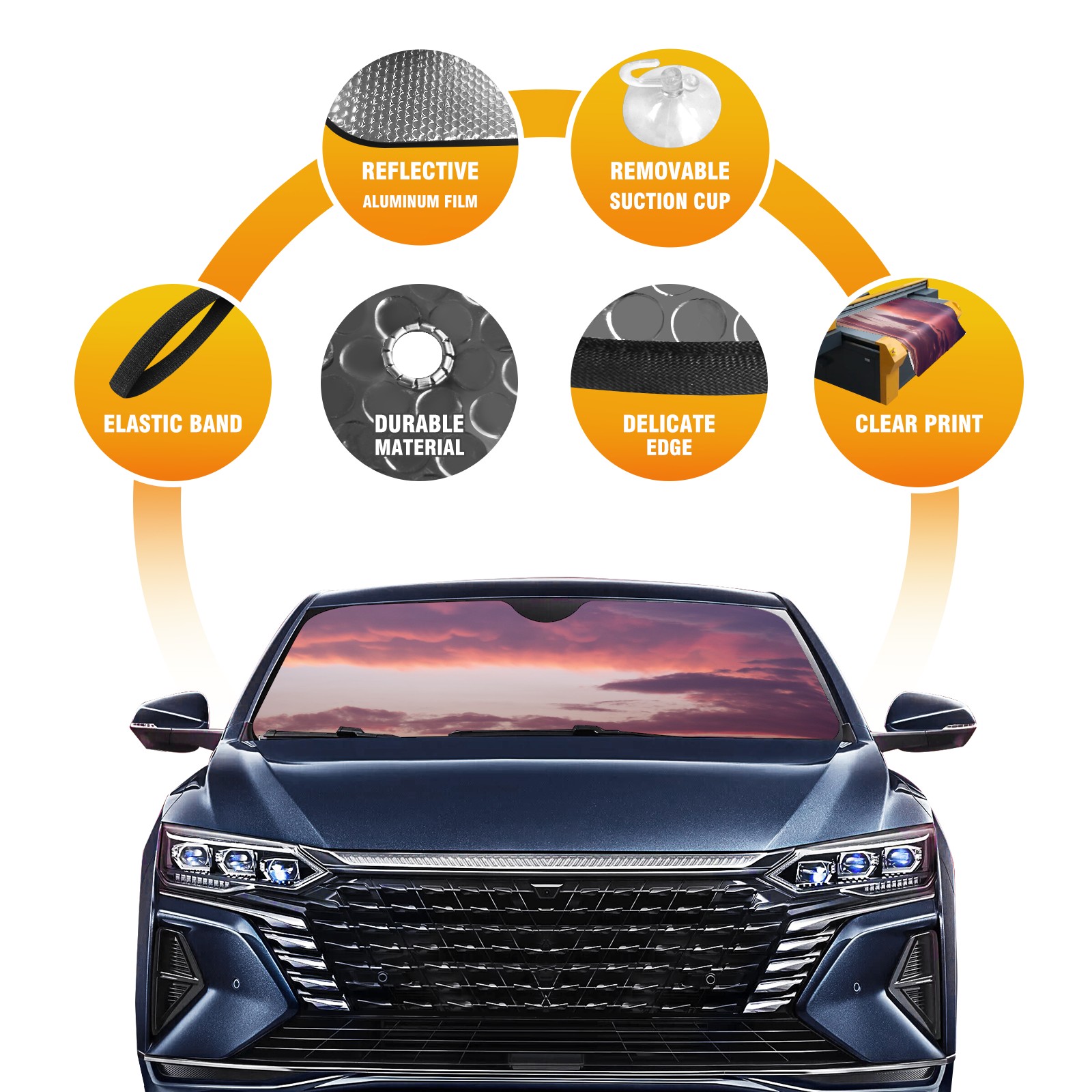 • Diameter /Size 63"L x 33.5"W Made from excellent materials which makes it sturdy and protects the car from the sun. Easy to use and pack. Makes the interior of the car cooler.You can easily stash the sunshade in the storage bag or store long term.It open and closes easy. Also the leather storage bag is durable and easy to put the umbrella back into.This windshield sunshade provides complete coverage and keeps your car interior cool under direct sun. It is easy to open and position under the windshield and around the rear-view mirror. Makes Your Car Easy To Identify, Perfect For Finding Your Car In Crowded Parking Lots And Garages.Great Choice: It Is A Great Gift For Dad, Boyfriend, Brother, Brother And Uncle, Friends, Classmates, Family And So On. Notice: Due To Difference Computer Monitors, The Color Maybe Slightly Different From Picture. As Different Measurement Methods, Measurement Data Will Float Within 2%.I Hope You Understand. If You Have Any Question About The Item Please Do Not Hesitate To Contact Us Immediately And We Will Give You A Satisfactory Reply Within 24 Hours.