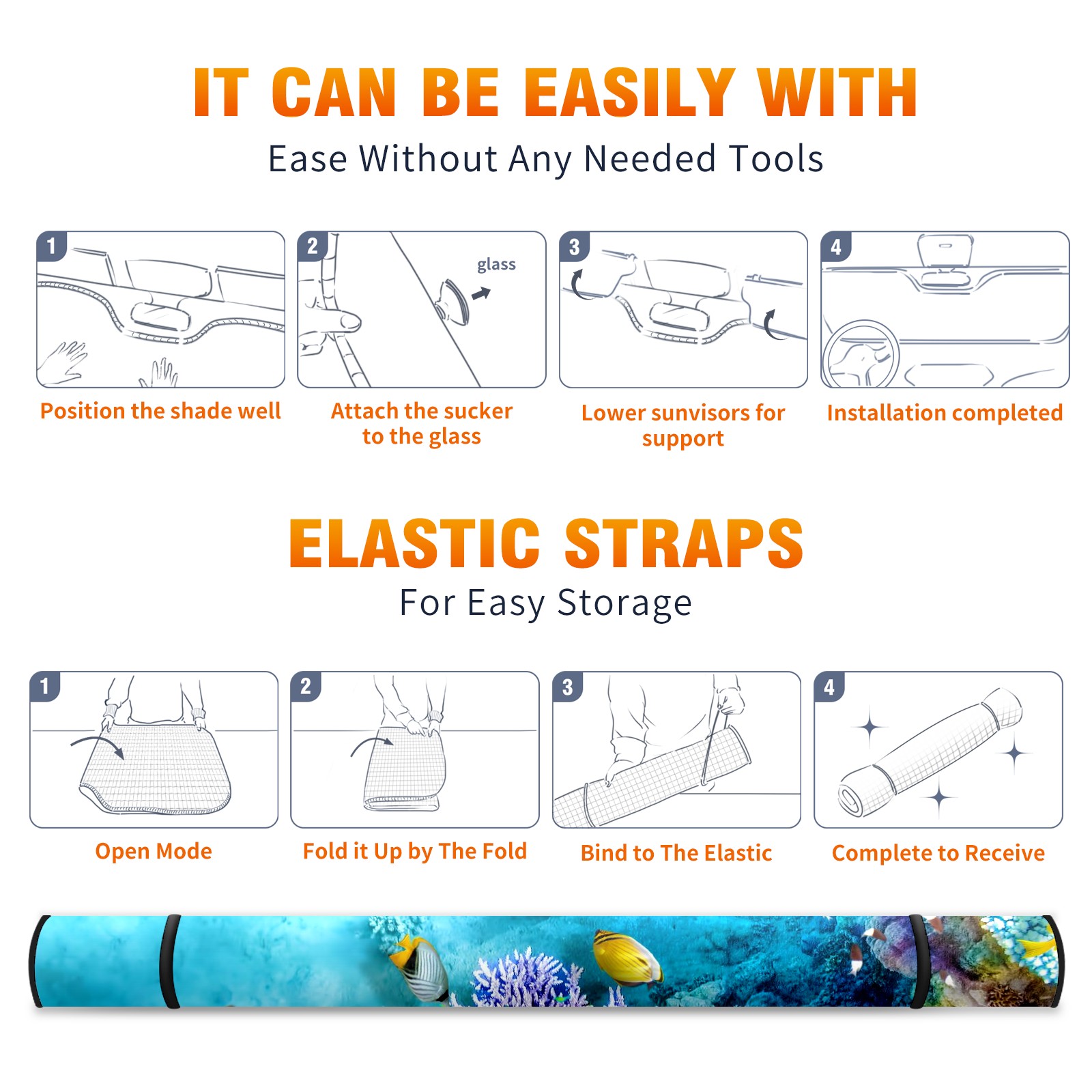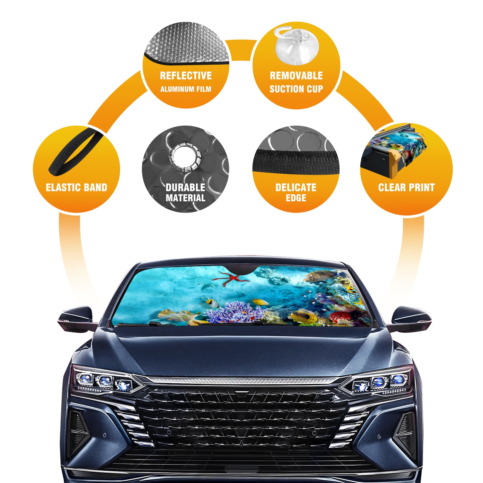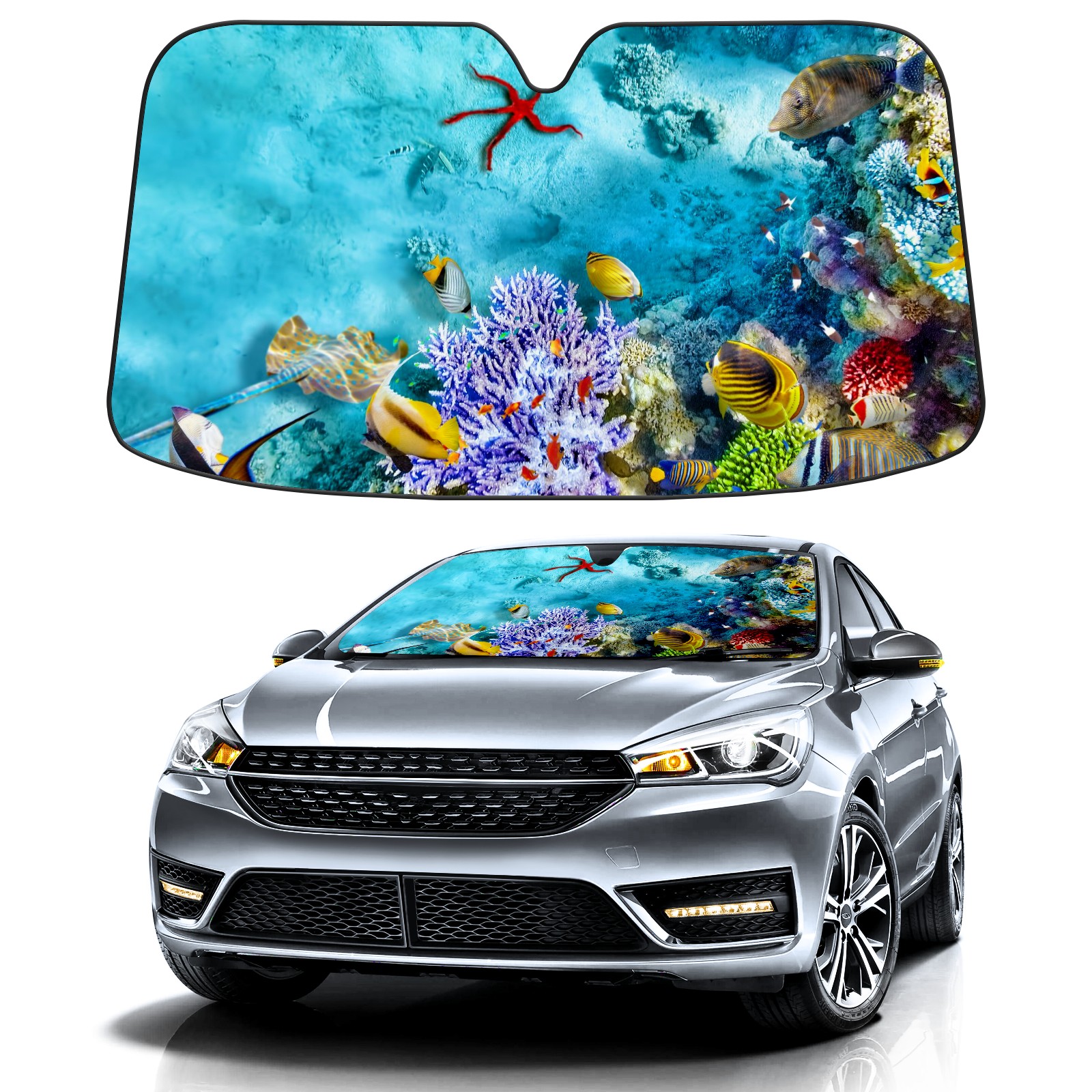 Car Windshield Sun Shade For Front Window The Underwater World Coral Reef Fishes Starfish Foldable Vehicle Windshield Car Sun Visor Covers Automotive Window Protector Car Camping Privacy Sun Blocker