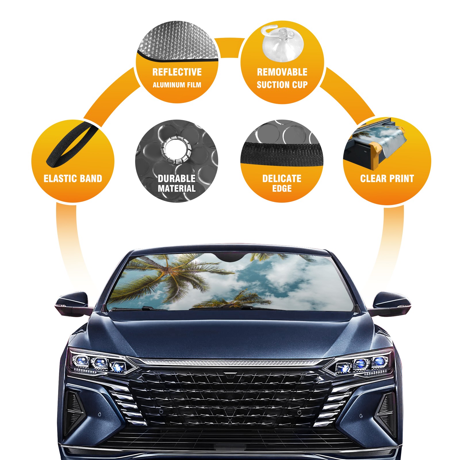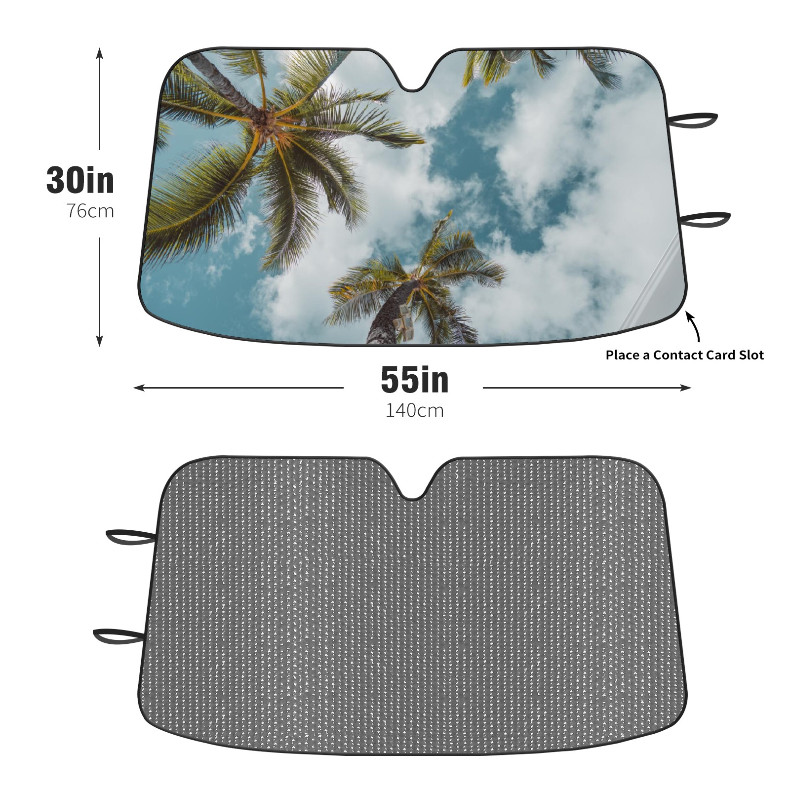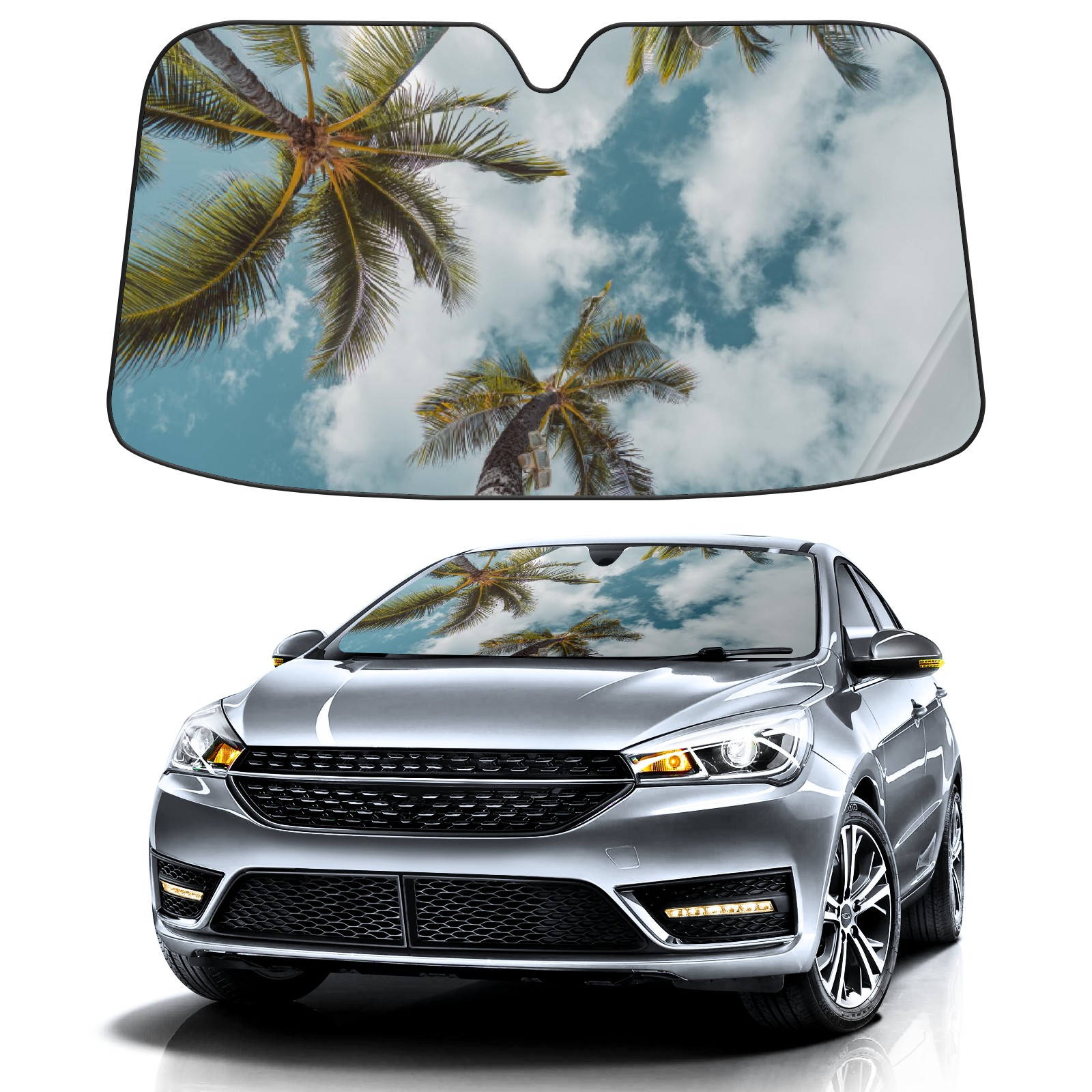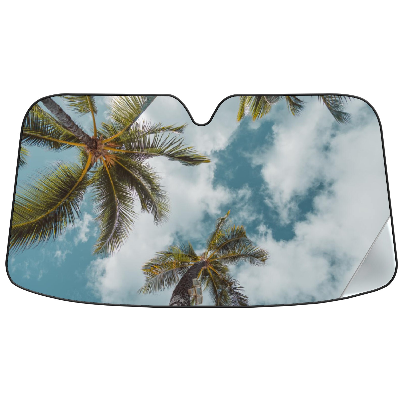 Car Windshield Sun Shade For Front Window Palm Tree Clouds Sky Foldable Vehicle Windshield Car Sun Visor Covers Automotive Window Protector Car Camping Privacy Sun Blocker