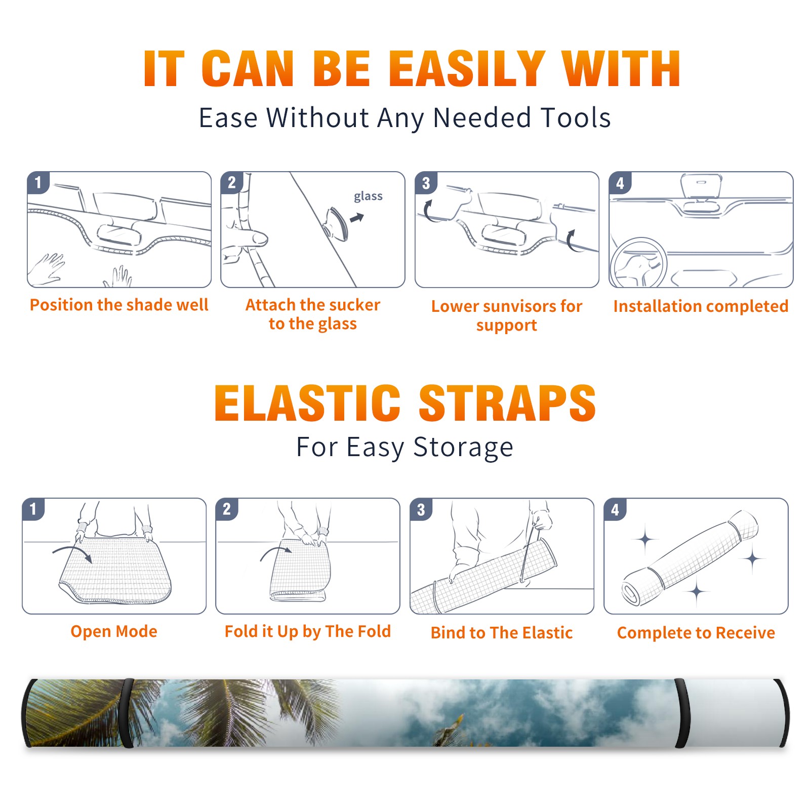 • Diameter /Size 63"L x 33.5"W Made from excellent materials which makes it sturdy and protects the car from the sun. Easy to use and pack. Makes the interior of the car cooler.You can easily stash the sunshade in the storage bag or store long term.It open and closes easy. Also the leather storage bag is durable and easy to put the umbrella back into.This windshield sunshade provides complete coverage and keeps your car interior cool under direct sun. It is easy to open and position under the windshield and around the rear-view mirror. Makes Your Car Easy To Identify, Perfect For Finding Your Car In Crowded Parking Lots And Garages.Great Choice: It Is A Great Gift For Dad, Boyfriend, Brother, Brother And Uncle, Friends, Classmates, Family And So On. Notice: Due To Difference Computer Monitors, The Color Maybe Slightly Different From Picture. As Different Measurement Methods, Measurement Data Will Float Within 2%.I Hope You Understand. If You Have Any Question About The Item Please Do Not Hesitate To Contact Us Immediately And We Will Give You A Satisfactory Reply Within 24 Hours.