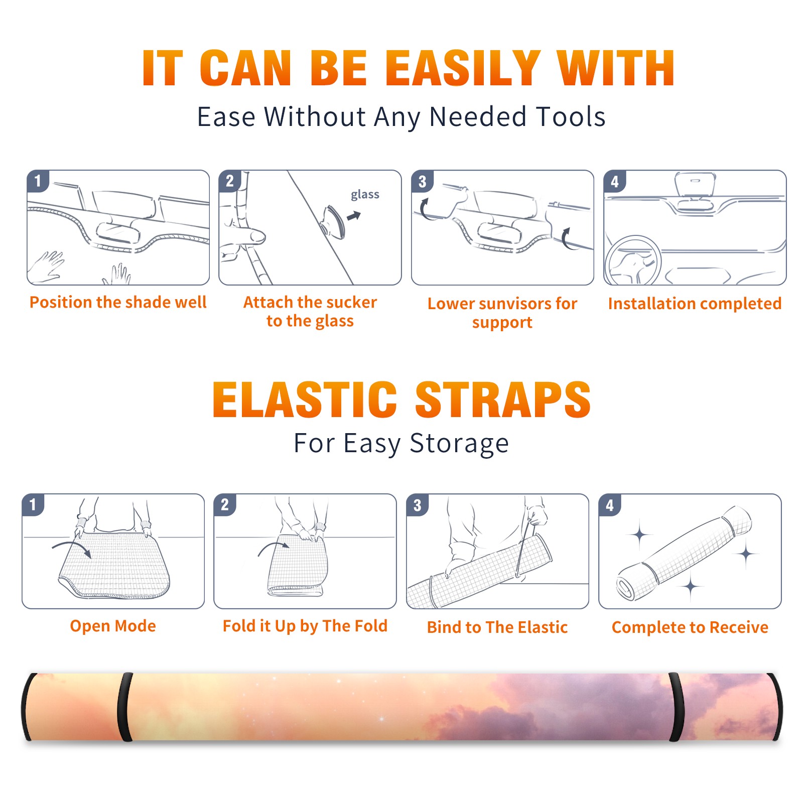 • Diameter /Size 63"L x 33.5"W Made from excellent materials which makes it sturdy and protects the car from the sun. Easy to use and pack. Makes the interior of the car cooler.You can easily stash the sunshade in the storage bag or store long term.It open and closes easy. Also the leather storage bag is durable and easy to put the umbrella back into.This windshield sunshade provides complete coverage and keeps your car interior cool under direct sun. It is easy to open and position under the windshield and around the rear-view mirror. Makes Your Car Easy To Identify, Perfect For Finding Your Car In Crowded Parking Lots And Garages.Great Choice: It Is A Great Gift For Dad, Boyfriend, Brother, Brother And Uncle, Friends, Classmates, Family And So On. Notice: Due To Difference Computer Monitors, The Color Maybe Slightly Different From Picture. As Different Measurement Methods, Measurement Data Will Float Within 2%.I Hope You Understand. If You Have Any Question About The Item Please Do Not Hesitate To Contact Us Immediately And We Will Give You A Satisfactory Reply Within 24 Hours.