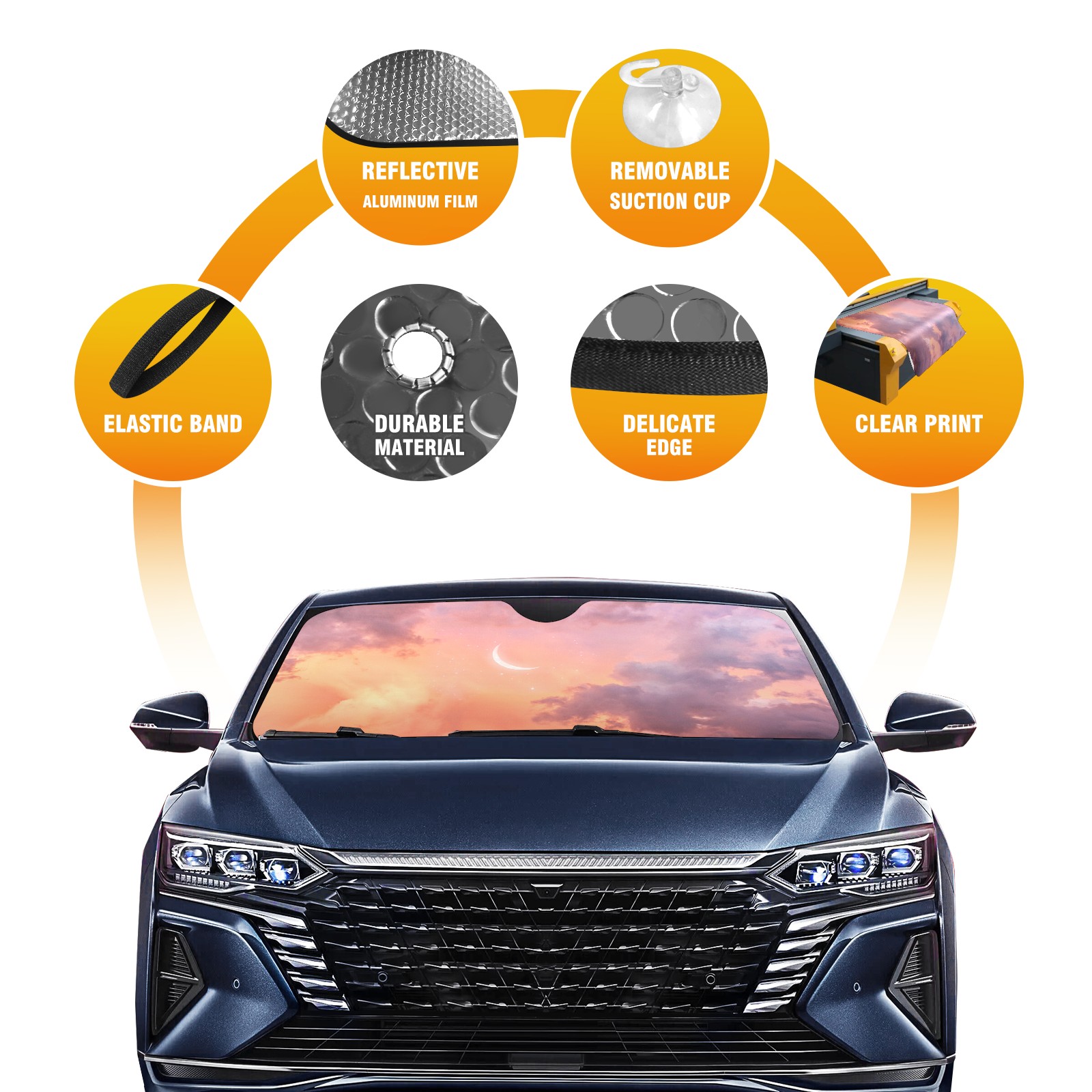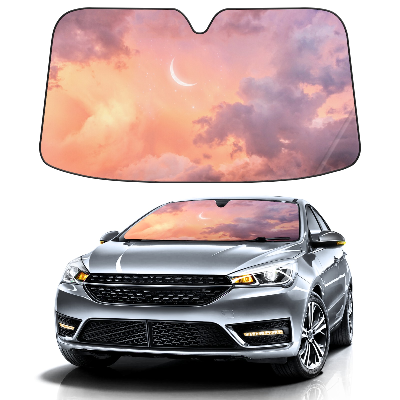 Car Windshield Sun Shade For Front Window Moon-crescent-sky-clouds-outdoor Foldable Vehicle Windshield Car Sun Visor Covers Automotive Window Protector Car Camping Privacy Sun Blocker