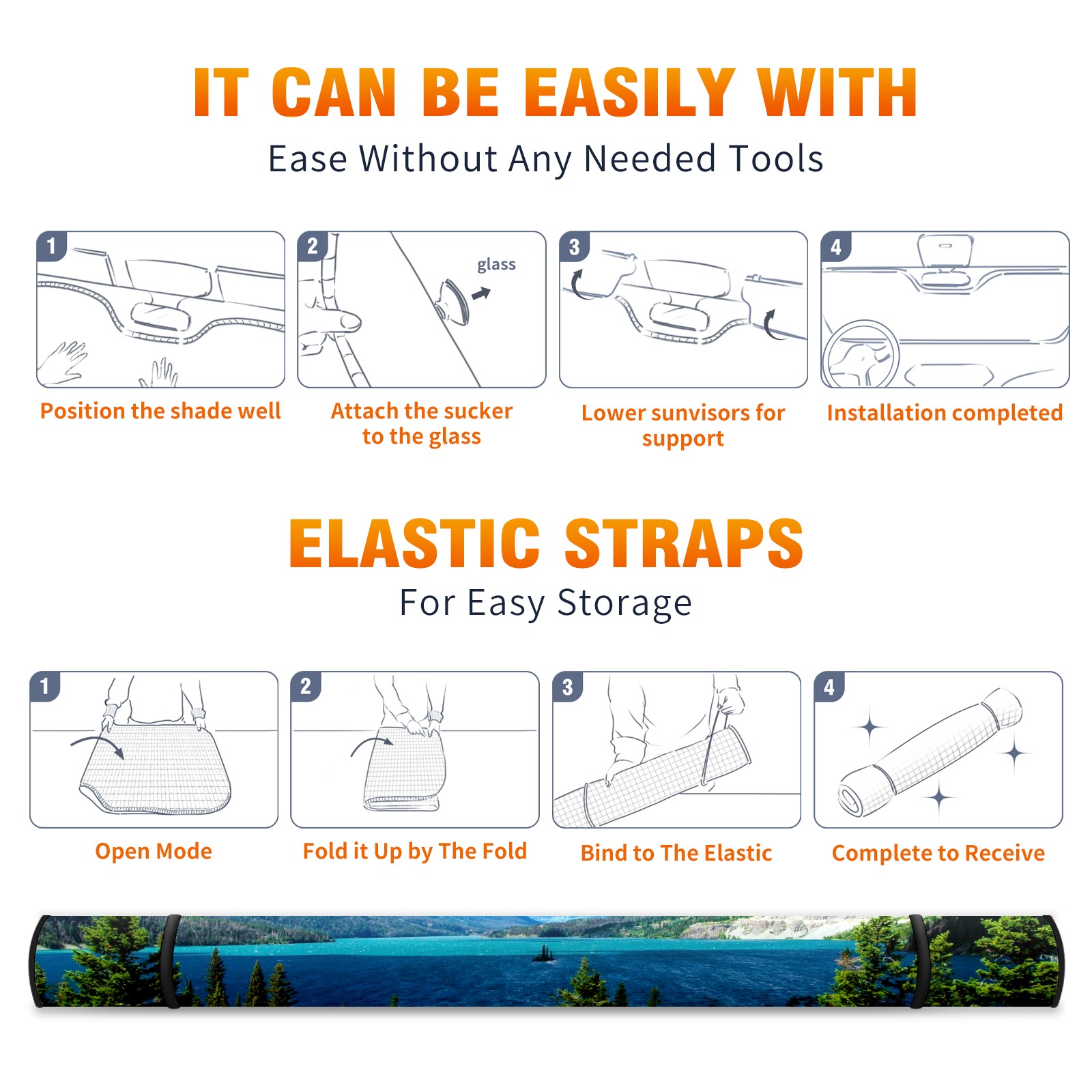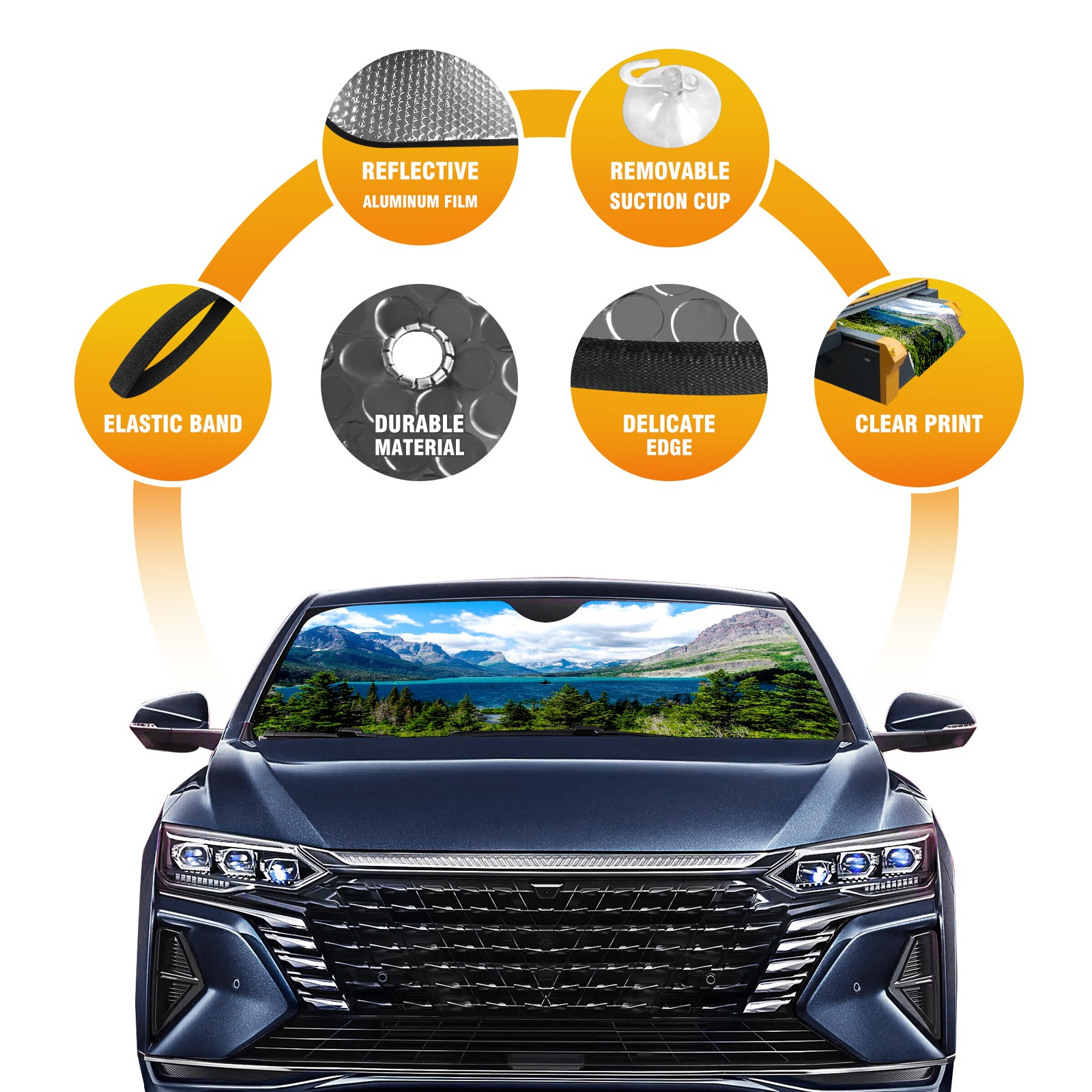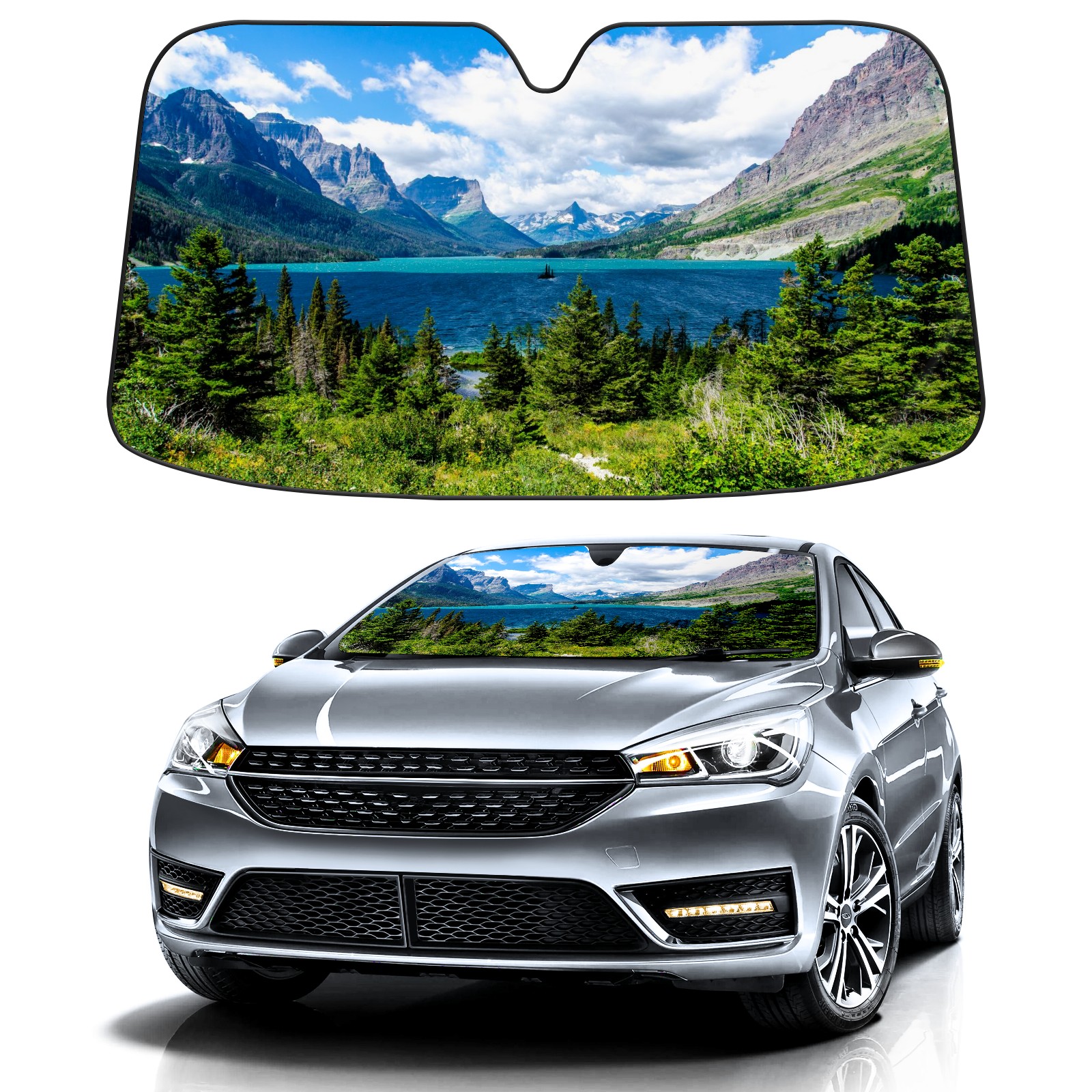 Car Windshield Sun Shade For Front Window Wild Nature View Clear Lake Mountain Foldable Vehicle Windshield Car Sun Visor Covers Automotive Window Protector Car Camping Privacy Sun Blocker