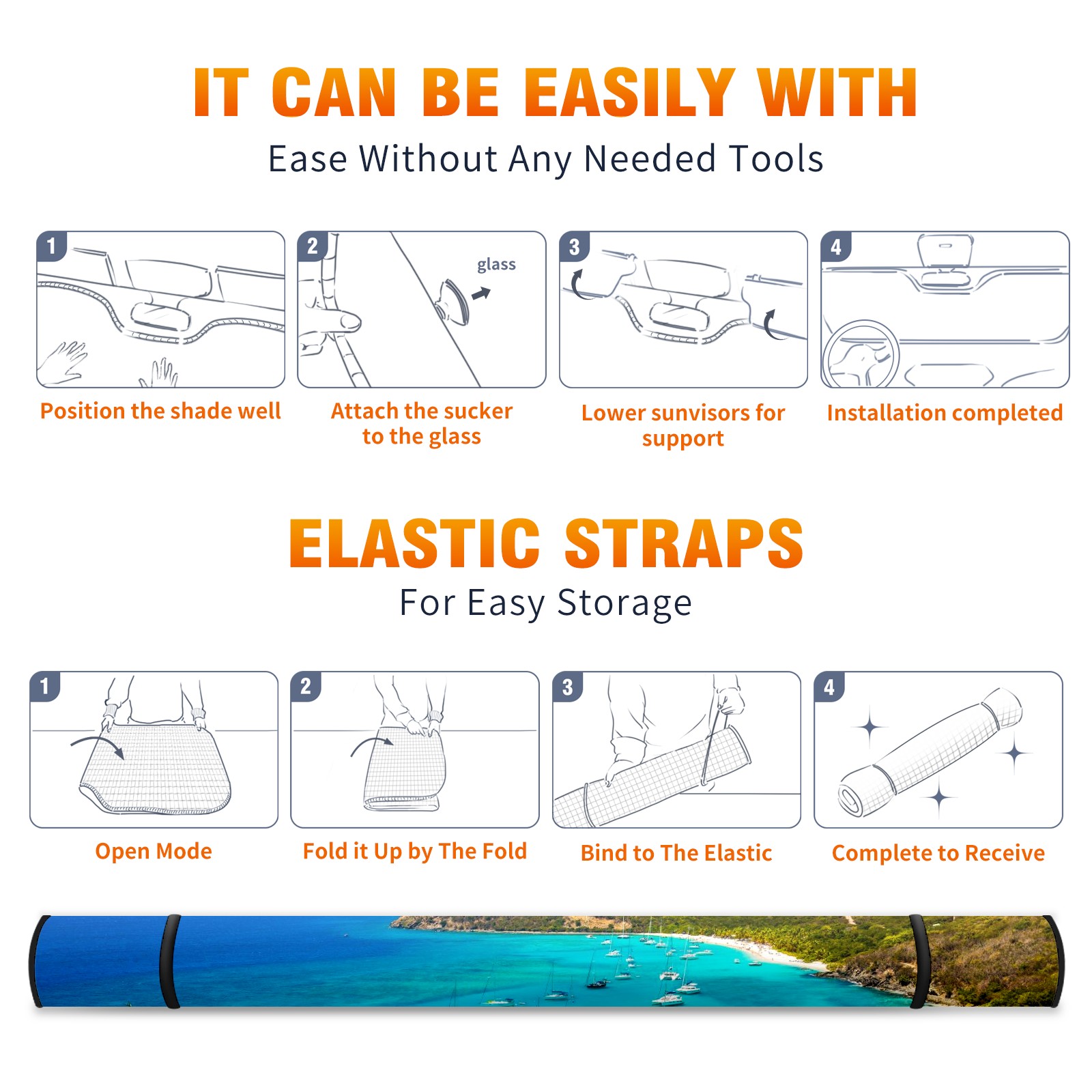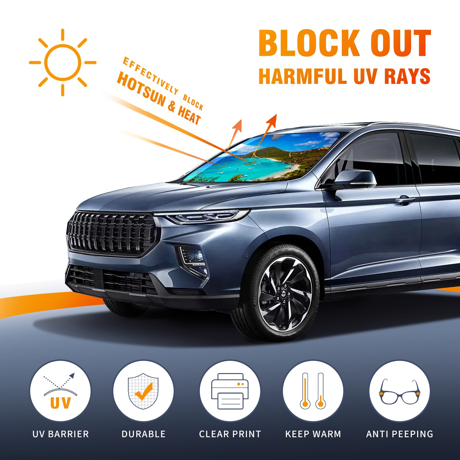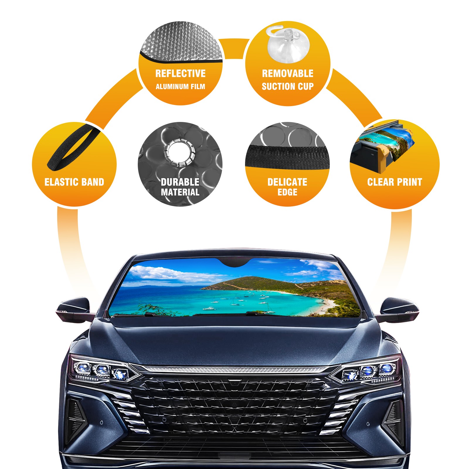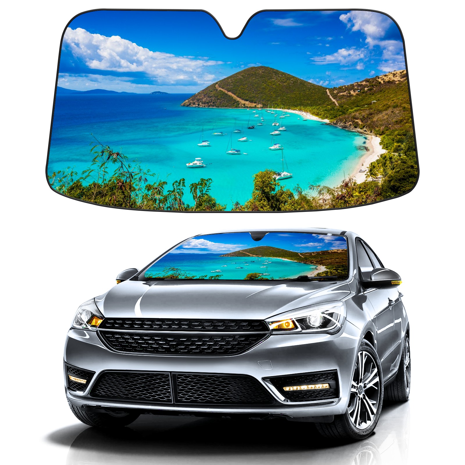 Car Windshield Sun Shade For Front Window Clear Blue Sea Seashore Mountain View Foldable Vehicle Windshield Car Sun Visor Covers Automotive Window Protector Car Camping Privacy Sun Blocker