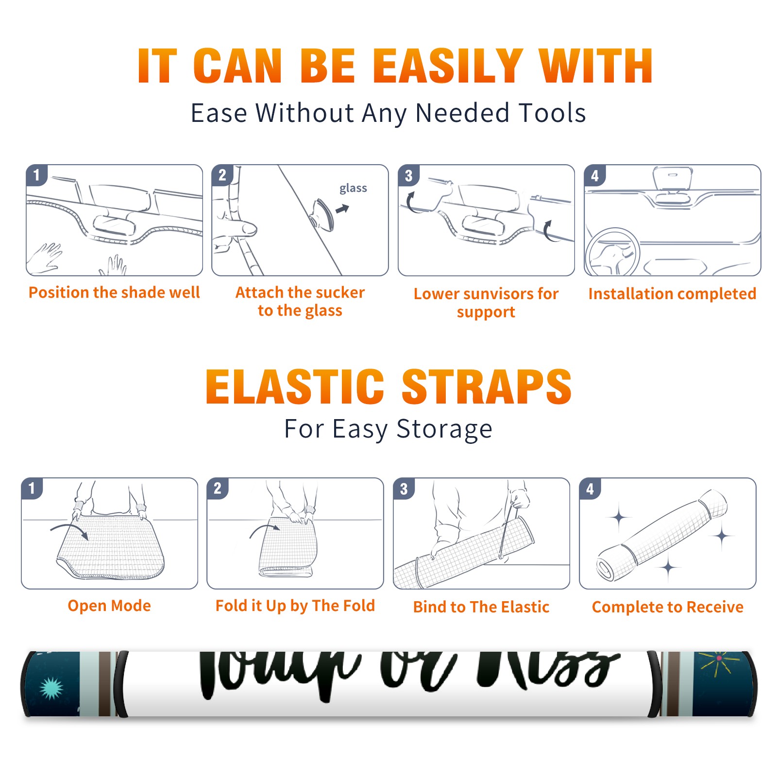 • Diameter /Size 63"L x 33.5"W Made from excellent materials which makes it sturdy and protects the car from the sun. Easy to use and pack. Makes the interior of the car cooler.You can easily stash the sunshade in the storage bag or store long term.It open and closes easy. Also the leather storage bag is durable and easy to put the umbrella back into.This windshield sunshade provides complete coverage and keeps your car interior cool under direct sun. It is easy to open and position under the windshield and around the rear-view mirror. Makes Your Car Easy To Identify, Perfect For Finding Your Car In Crowded Parking Lots And Garages.Great Choice: It Is A Great Gift For Dad, Boyfriend, Brother, Brother And Uncle, Friends, Classmates, Family And So On. Notice: Due To Difference Computer Monitors, The Color Maybe Slightly Different From Picture. As Different Measurement Methods, Measurement Data Will Float Within 2%.I Hope You Understand. If You Have Any Question About The Item Please Do Not Hesitate To Contact Us Immediately And We Will Give You A Satisfactory Reply Within 24 Hours.