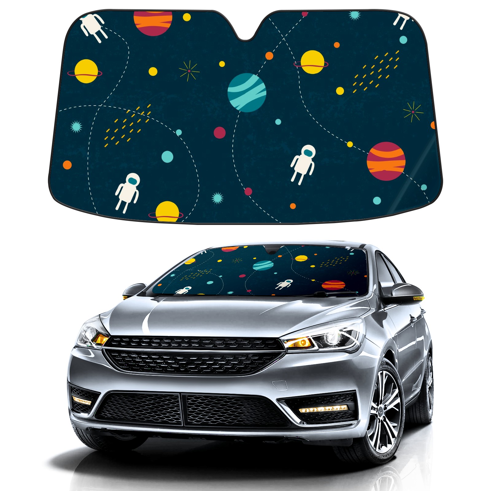 Car Windshield Sun Shade For Front Window Outer Space Planets Alien Earth Foldable Vehicle Windshield Car Sun Visor Covers Automotive Window Protector Car Camping Privacy Sun Blocker