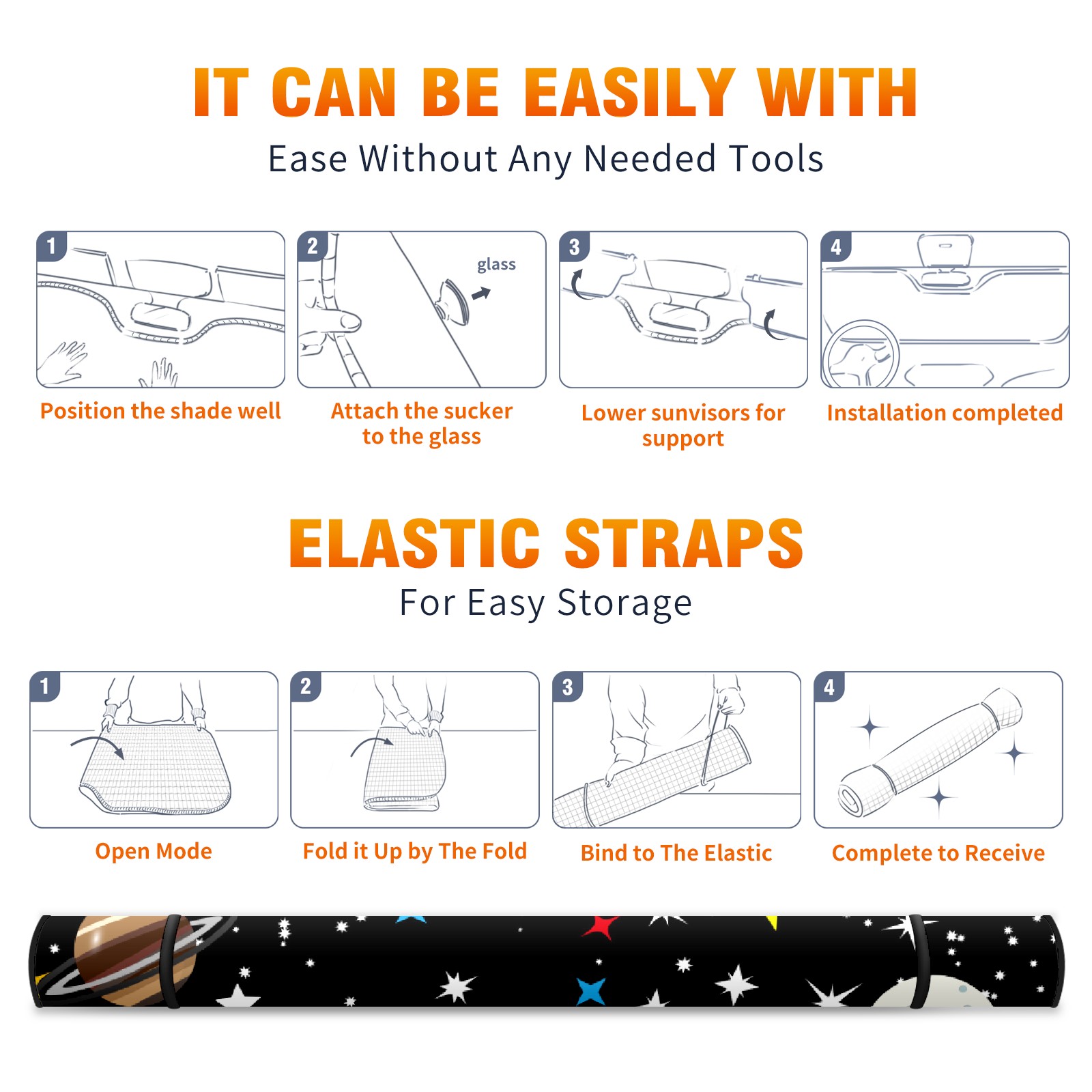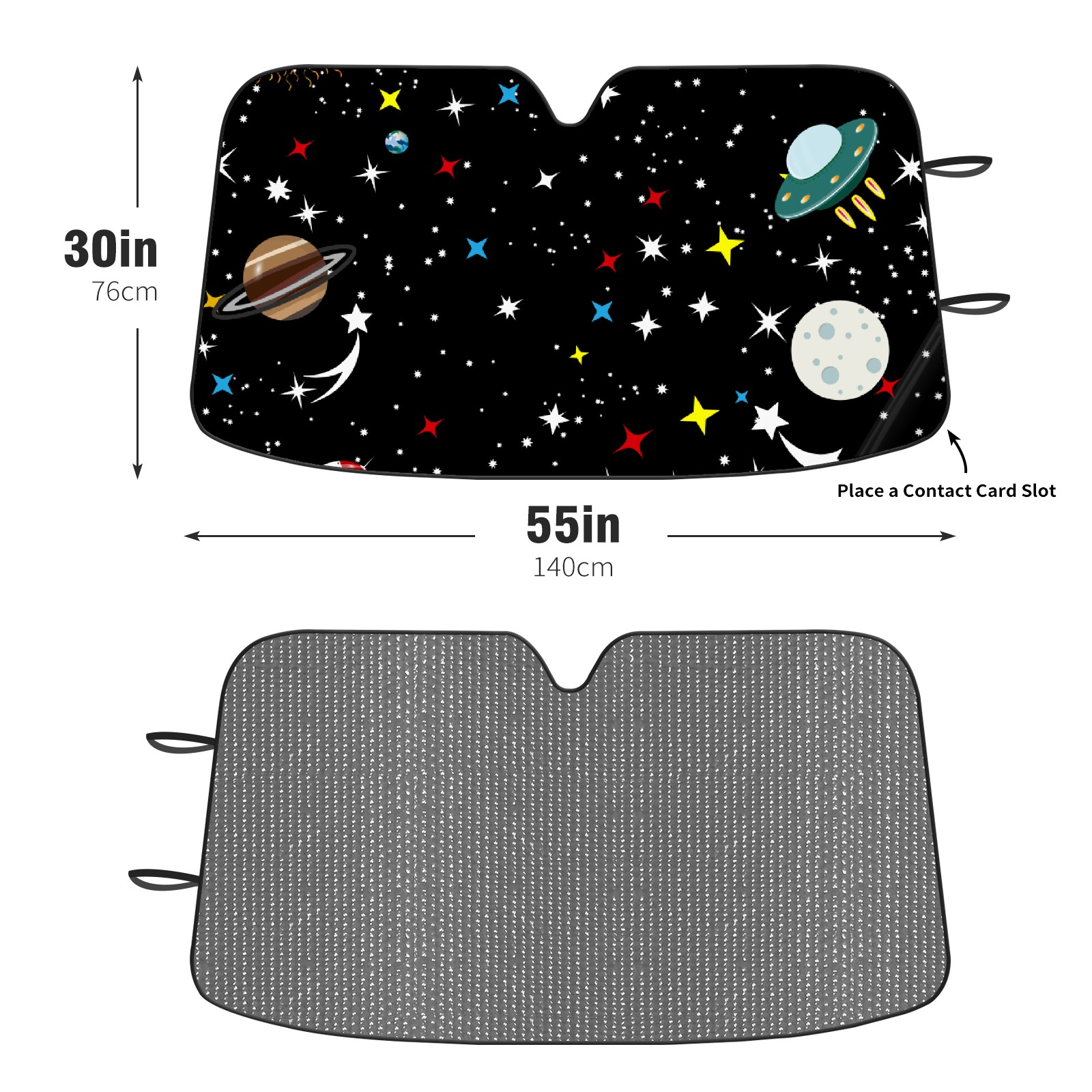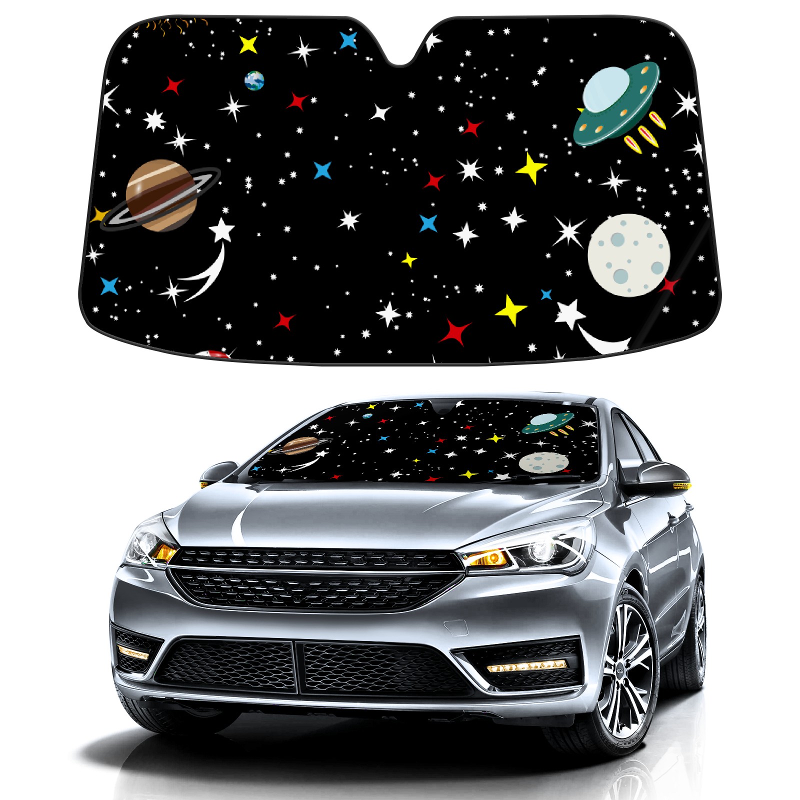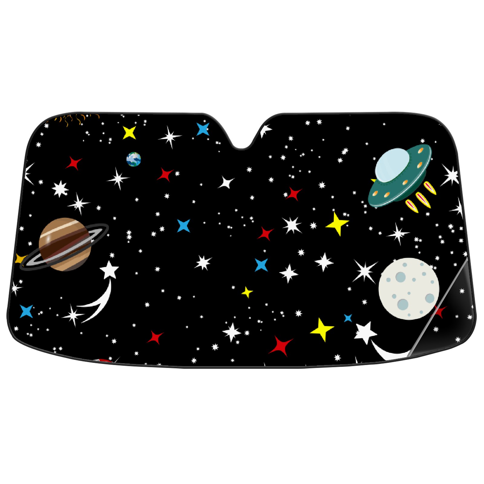 Car Windshield Sun Shade For Front Window Cartoon Rocket Spaceship Planets Star Foldable Vehicle Windshield Car Sun Visor Covers Automotive Window Protector Car Camping Privacy Sun Blocker