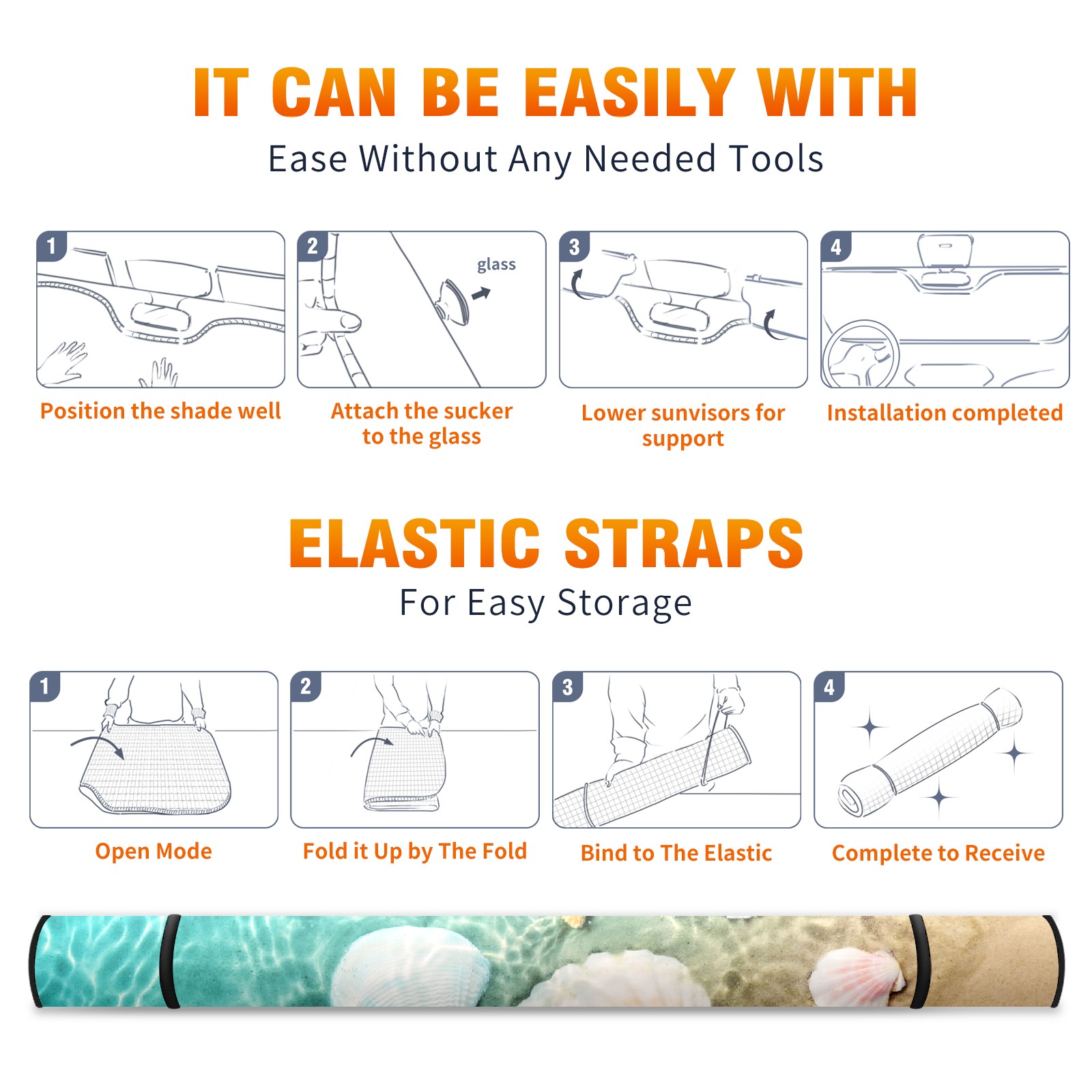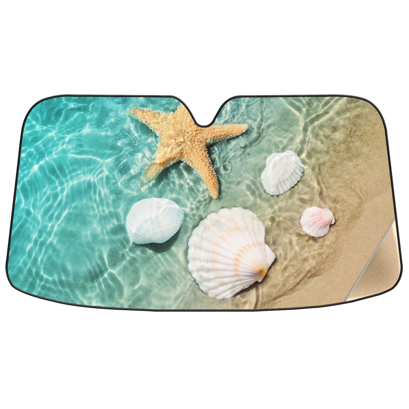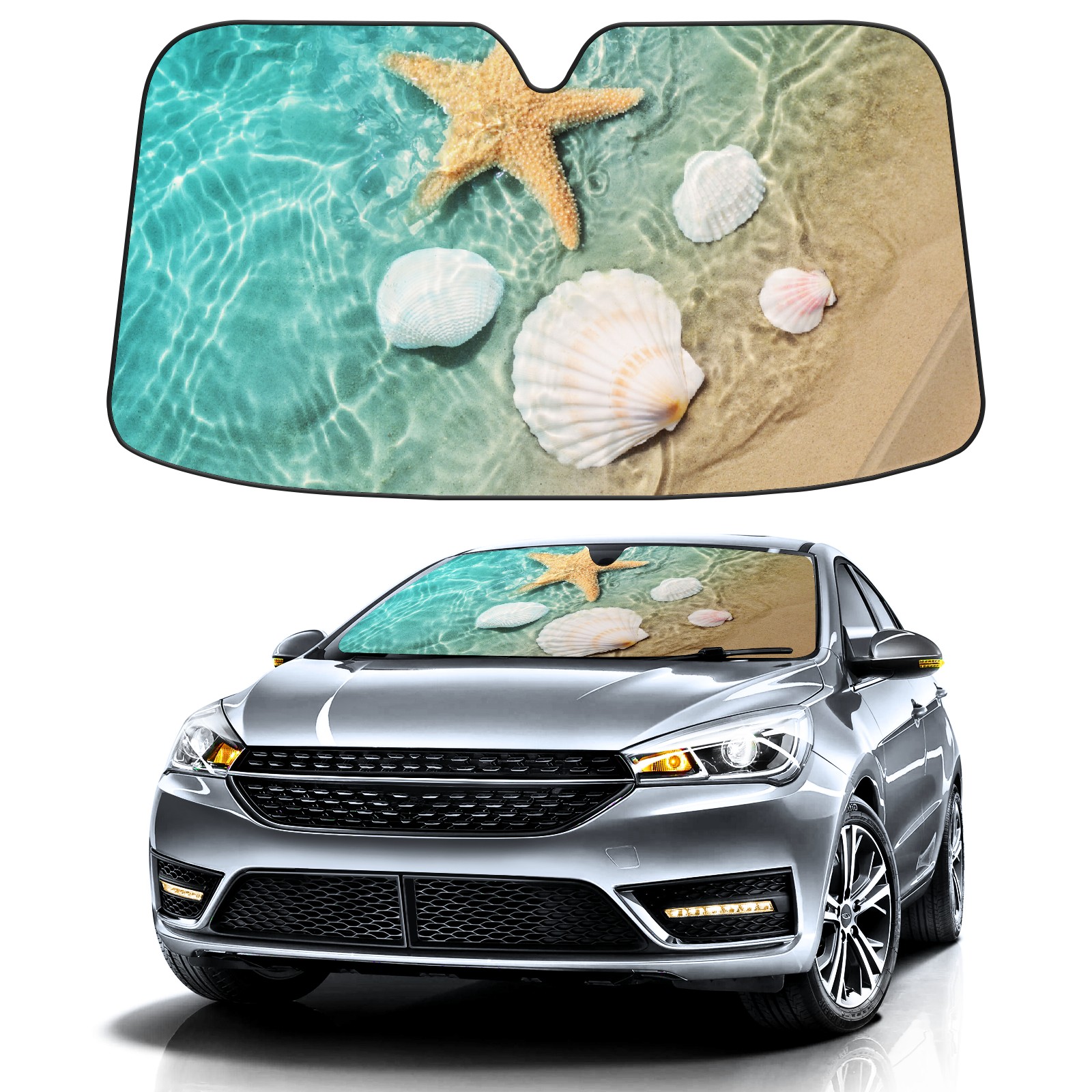 Car Windshield Sun Shade For Front Window Beach Starfish Shell Foldable Vehicle Windshield Car Sun Visor Covers Automotive Window Protector Car Camping Privacy Sun Blocker
