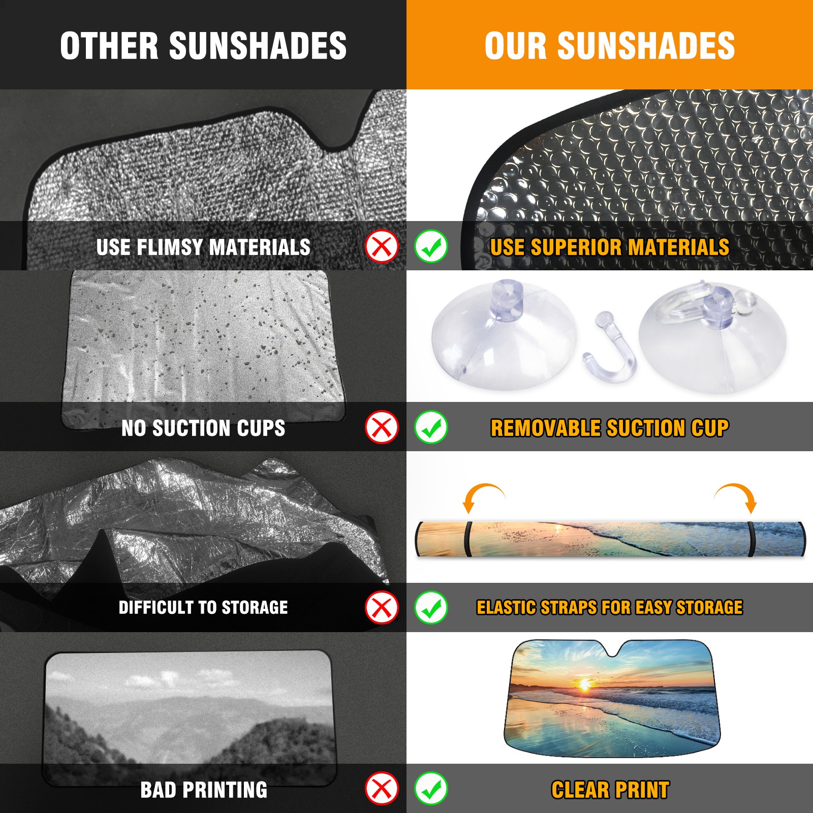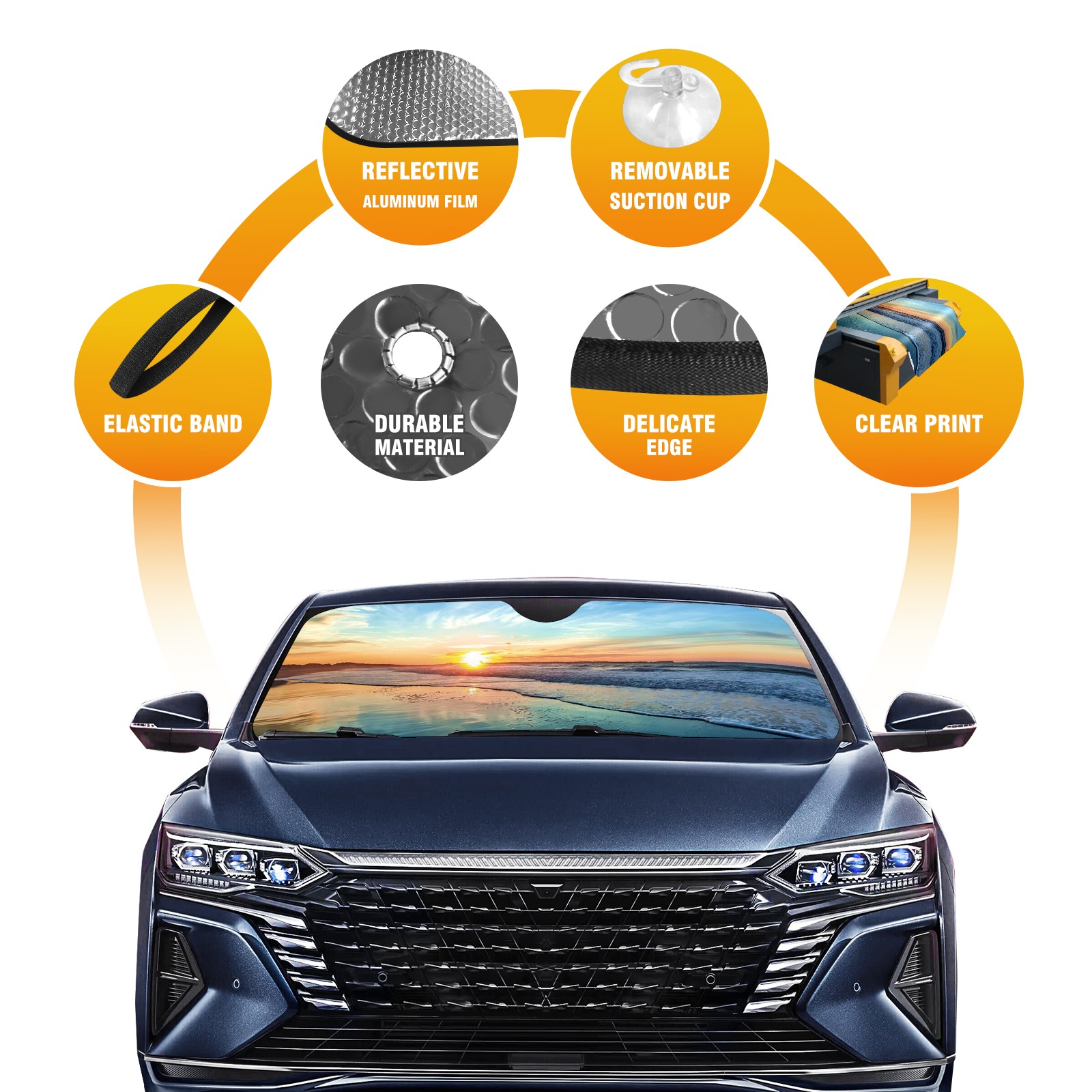 • Diameter /Size 63"L x 33.5"W Made from excellent materials which makes it sturdy and protects the car from the sun. Easy to use and pack. Makes the interior of the car cooler.You can easily stash the sunshade in the storage bag or store long term.It open and closes easy. Also the leather storage bag is durable and easy to put the umbrella back into.This windshield sunshade provides complete coverage and keeps your car interior cool under direct sun. It is easy to open and position under the windshield and around the rear-view mirror. Makes Your Car Easy To Identify, Perfect For Finding Your Car In Crowded Parking Lots And Garages.Great Choice: It Is A Great Gift For Dad, Boyfriend, Brother, Brother And Uncle, Friends, Classmates, Family And So On. Notice: Due To Difference Computer Monitors, The Color Maybe Slightly Different From Picture. As Different Measurement Methods, Measurement Data Will Float Within 2%.I Hope You Understand. If You Have Any Question About The Item Please Do Not Hesitate To Contact Us Immediately And We Will Give You A Satisfactory Reply Within 24 Hours.