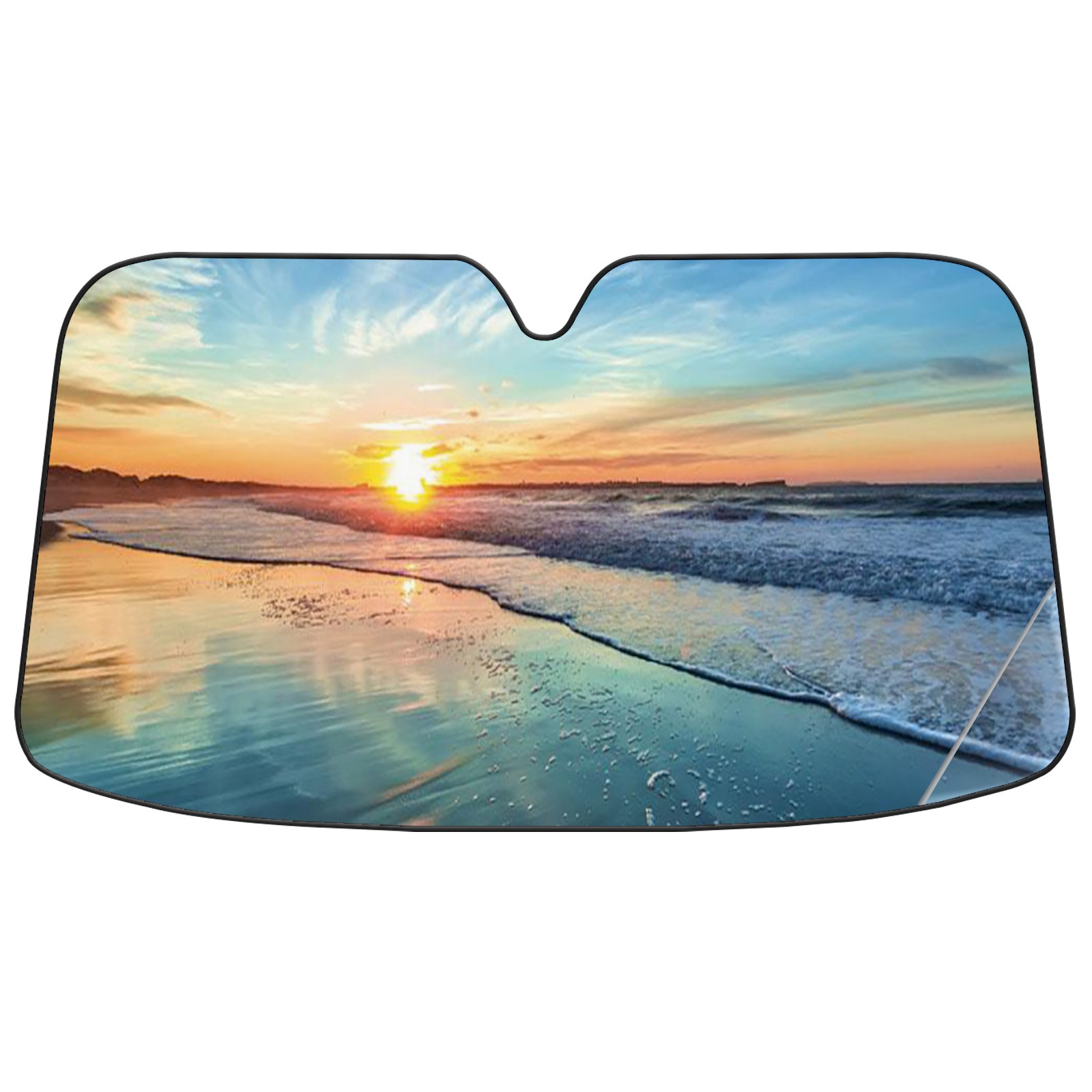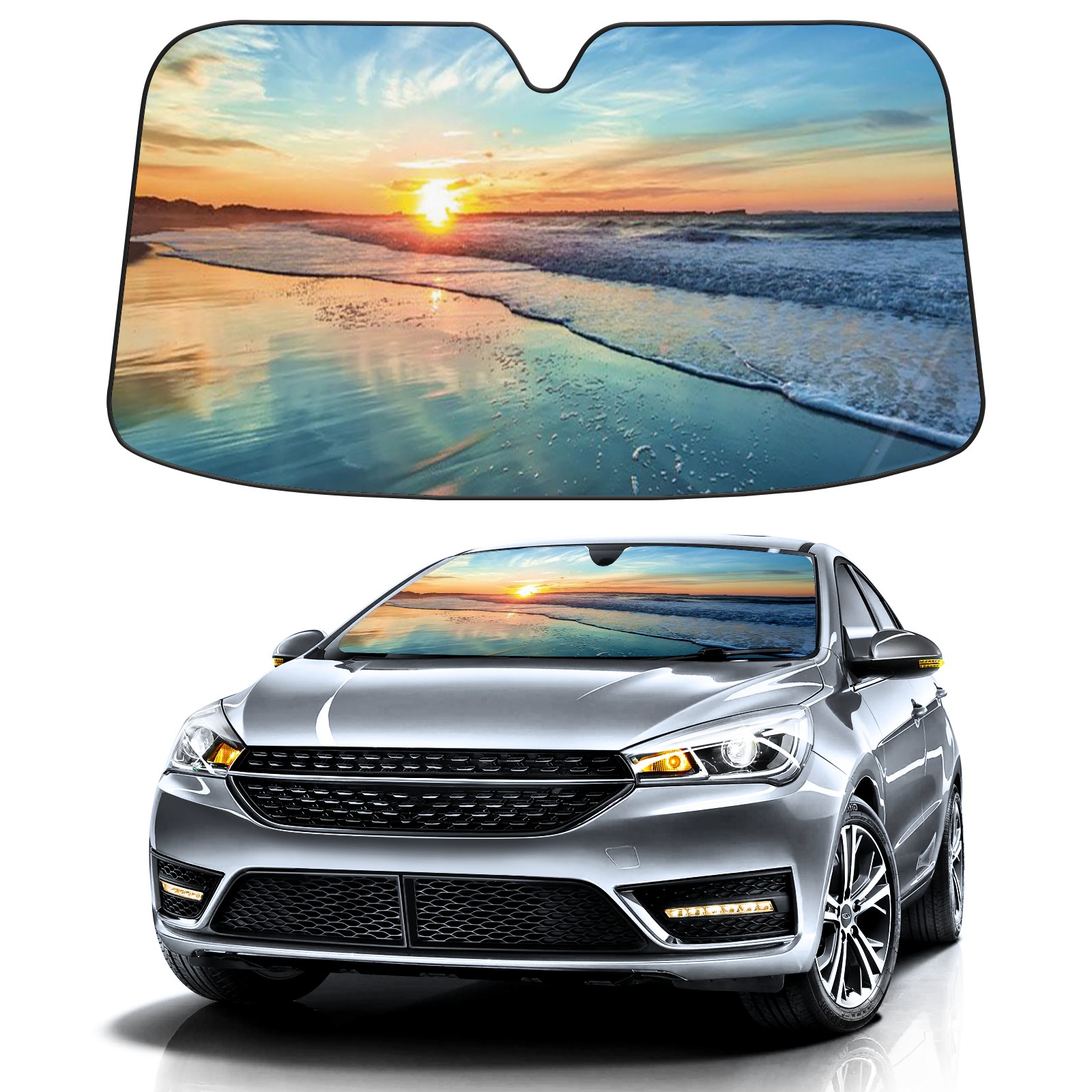 Car Windshield Sun Shade For Front Window Sunset Green Ocean Beach Foldable Vehicle Windshield Car Sun Visor Covers Automotive Window Protector Car Camping Privacy Sun Blocker