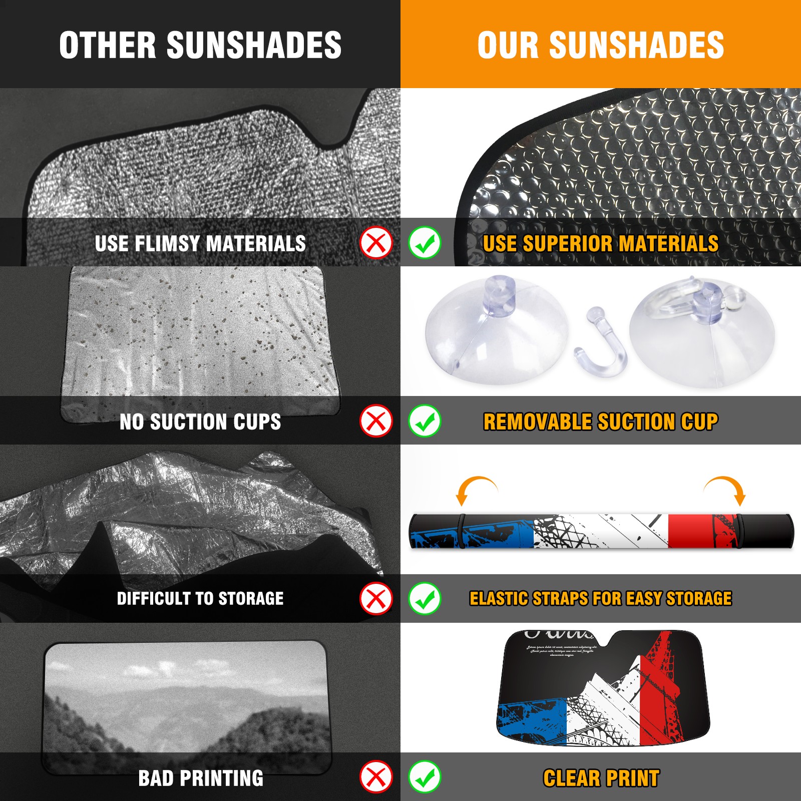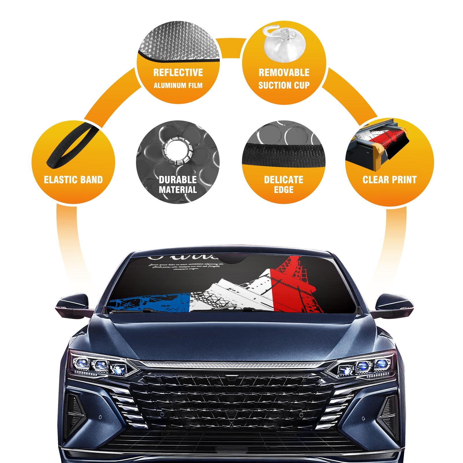 Car Windshield Sun Shade For Front Window Paris Eiffel Tower Foldable Vehicle Windshield Car Sun Visor Covers Automotive Window Protector Car Camping Privacy Sun Blocker