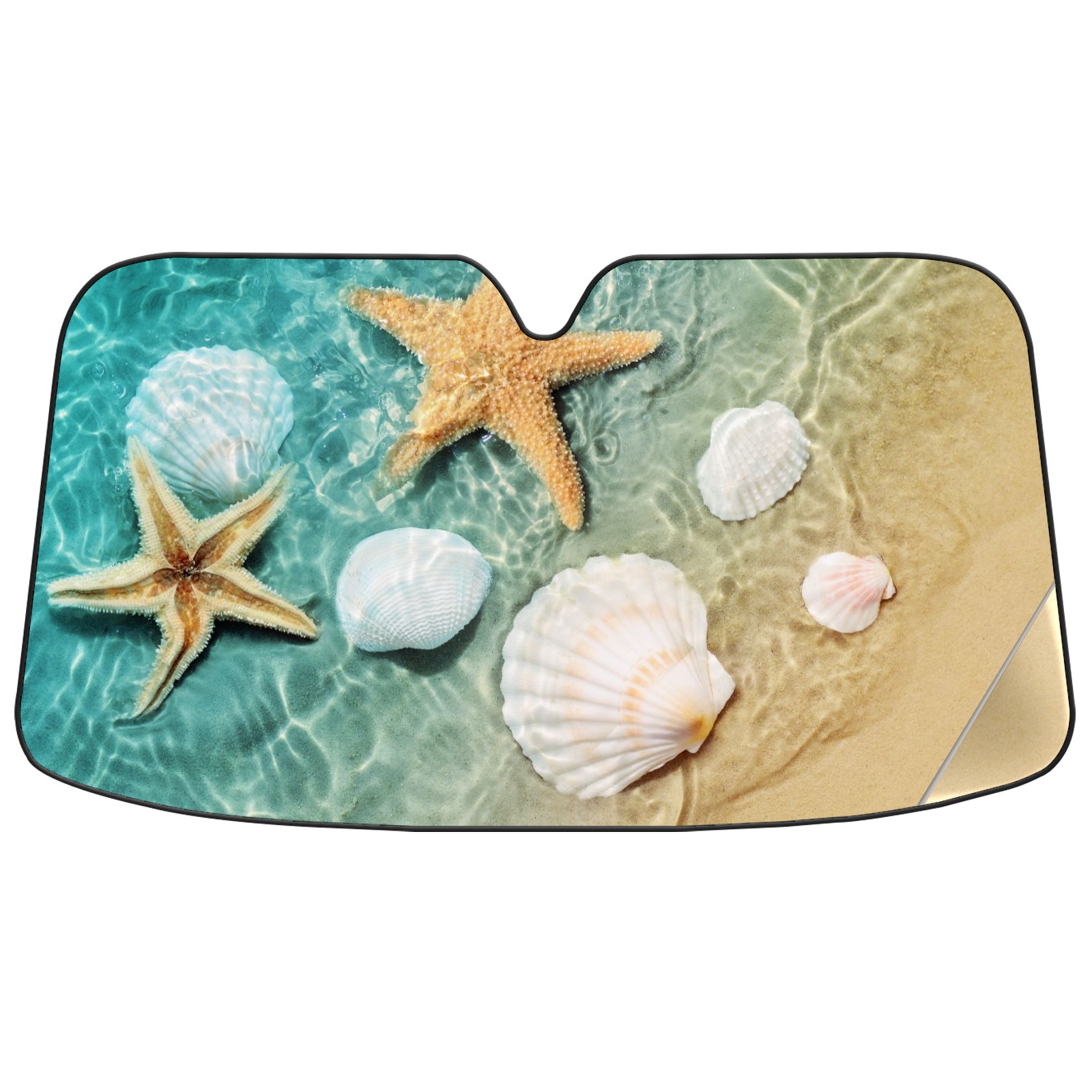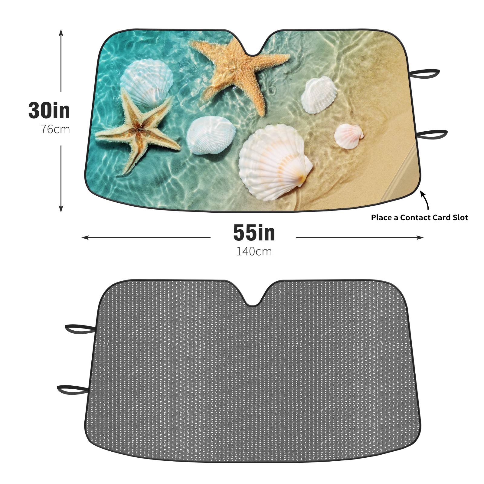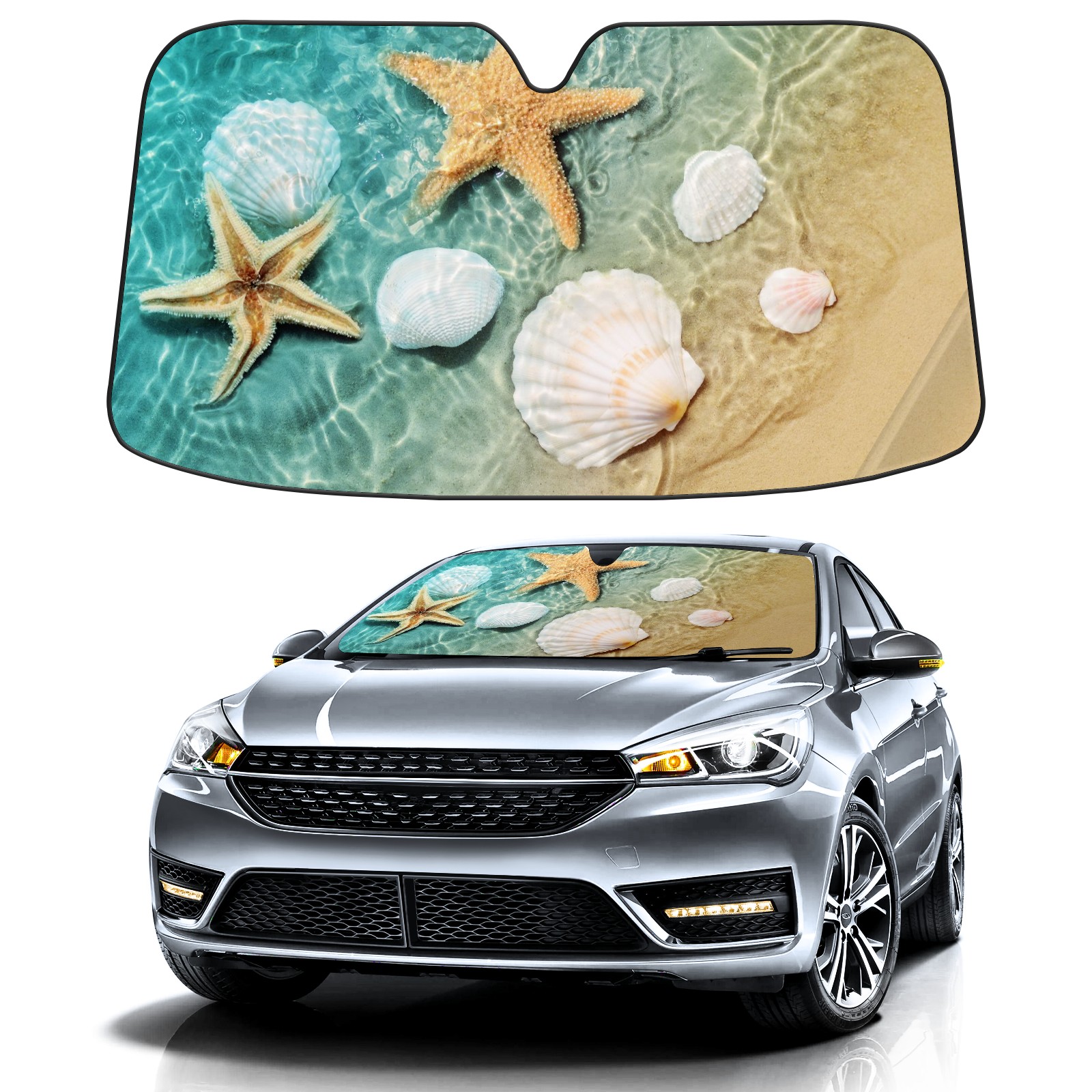 Car Windshield Sun Shade For Front Window Beach Starfish Shell Ocean Foldable Vehicle Windshield Car Sun Visor Covers Automotive Window Protector Car Camping Privacy Sun Blocker