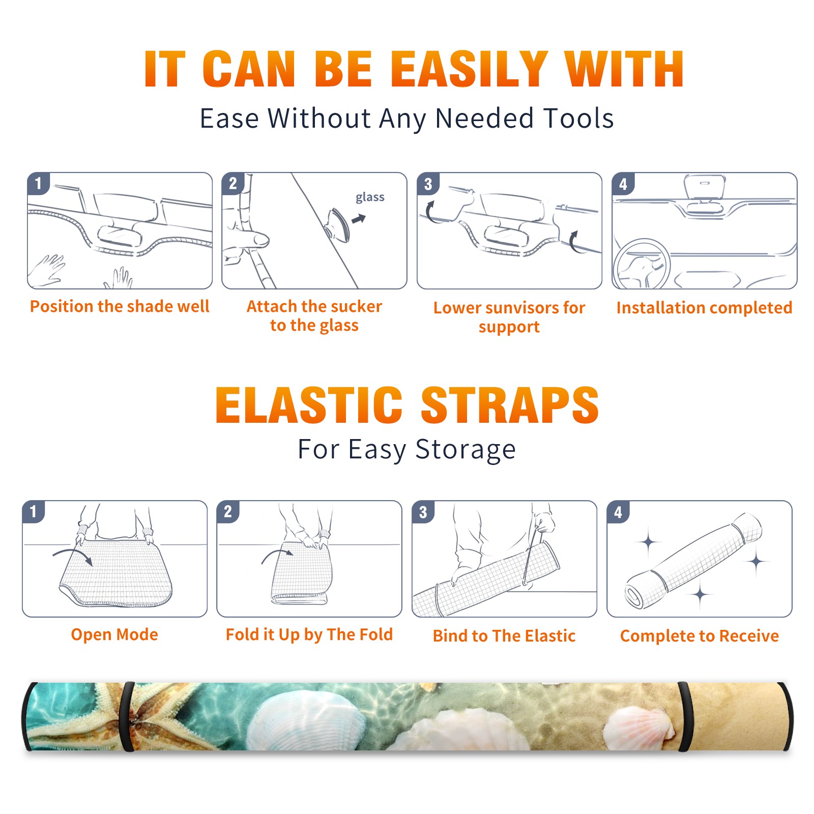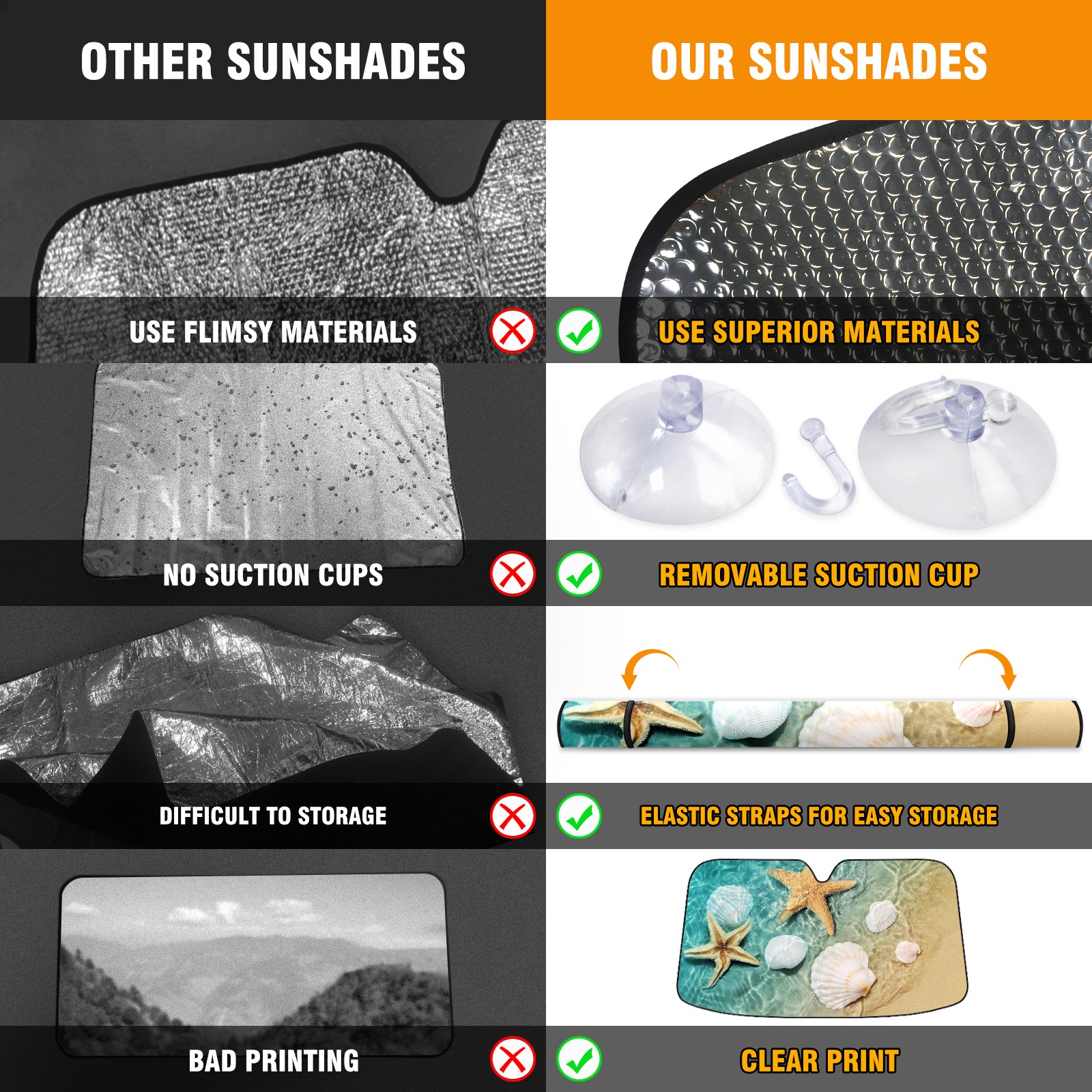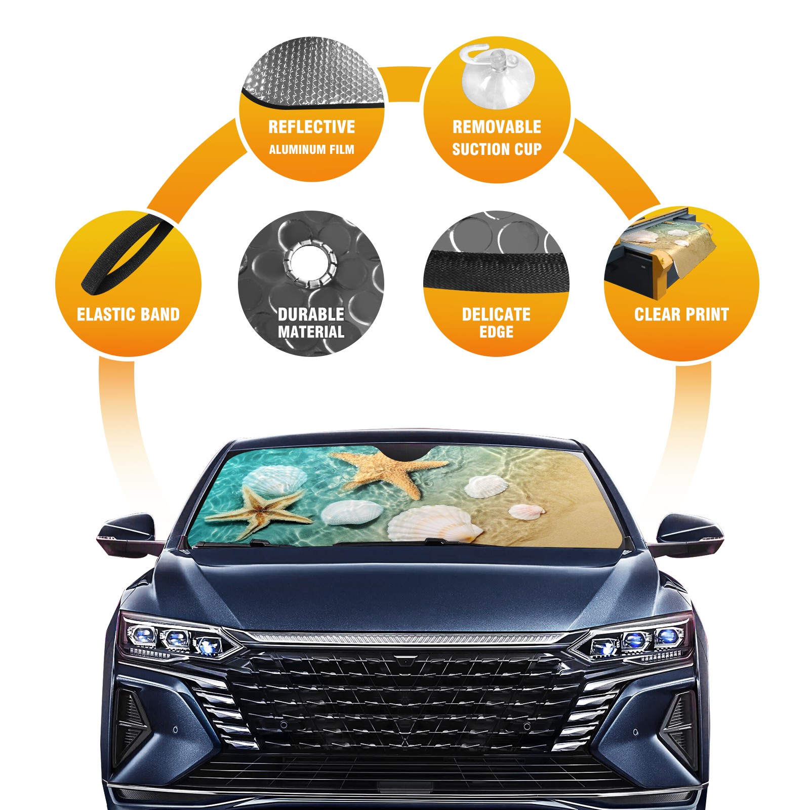 Car Windshield Sun Shade For Front Window Beach Starfish Shell Ocean Foldable Vehicle Windshield Car Sun Visor Covers Automotive Window Protector Car Camping Privacy Sun Blocker