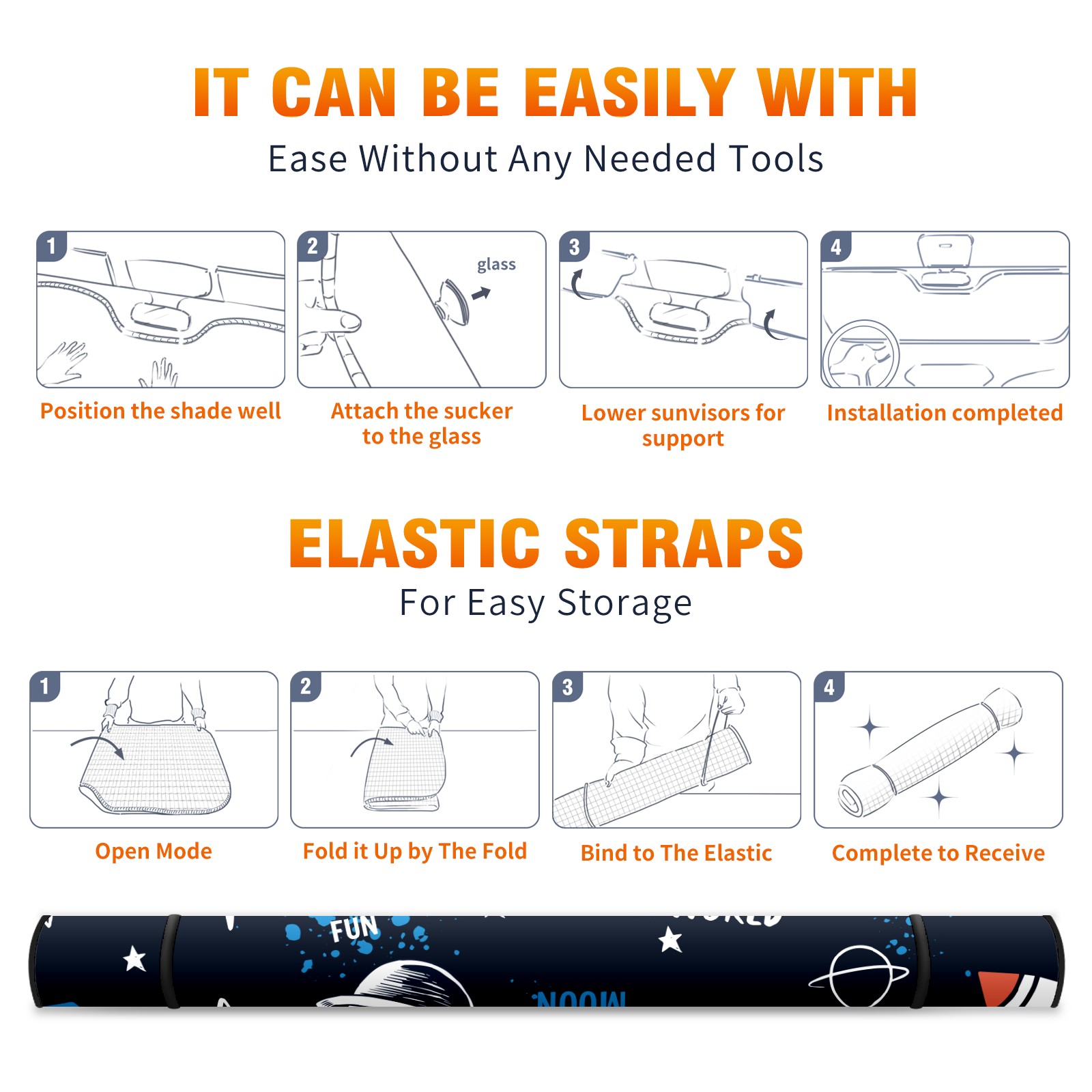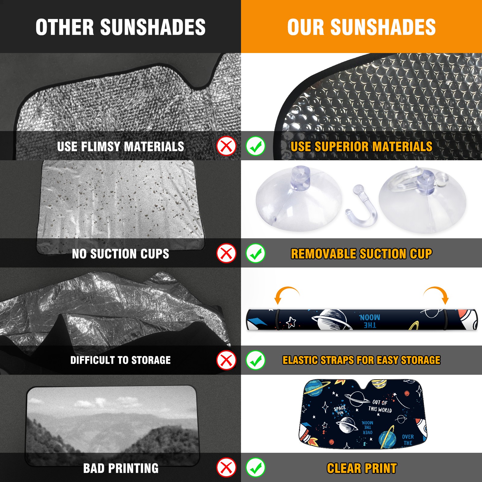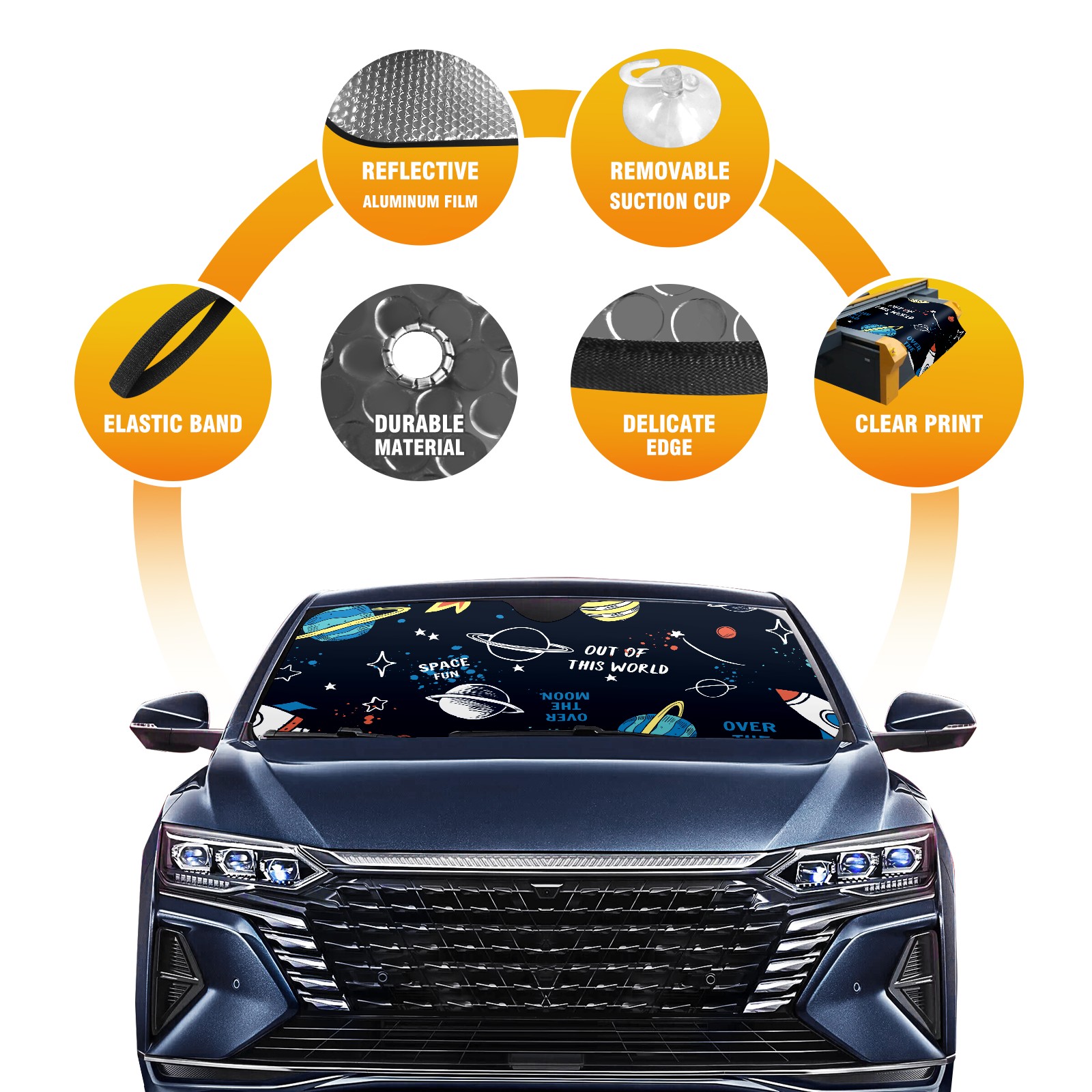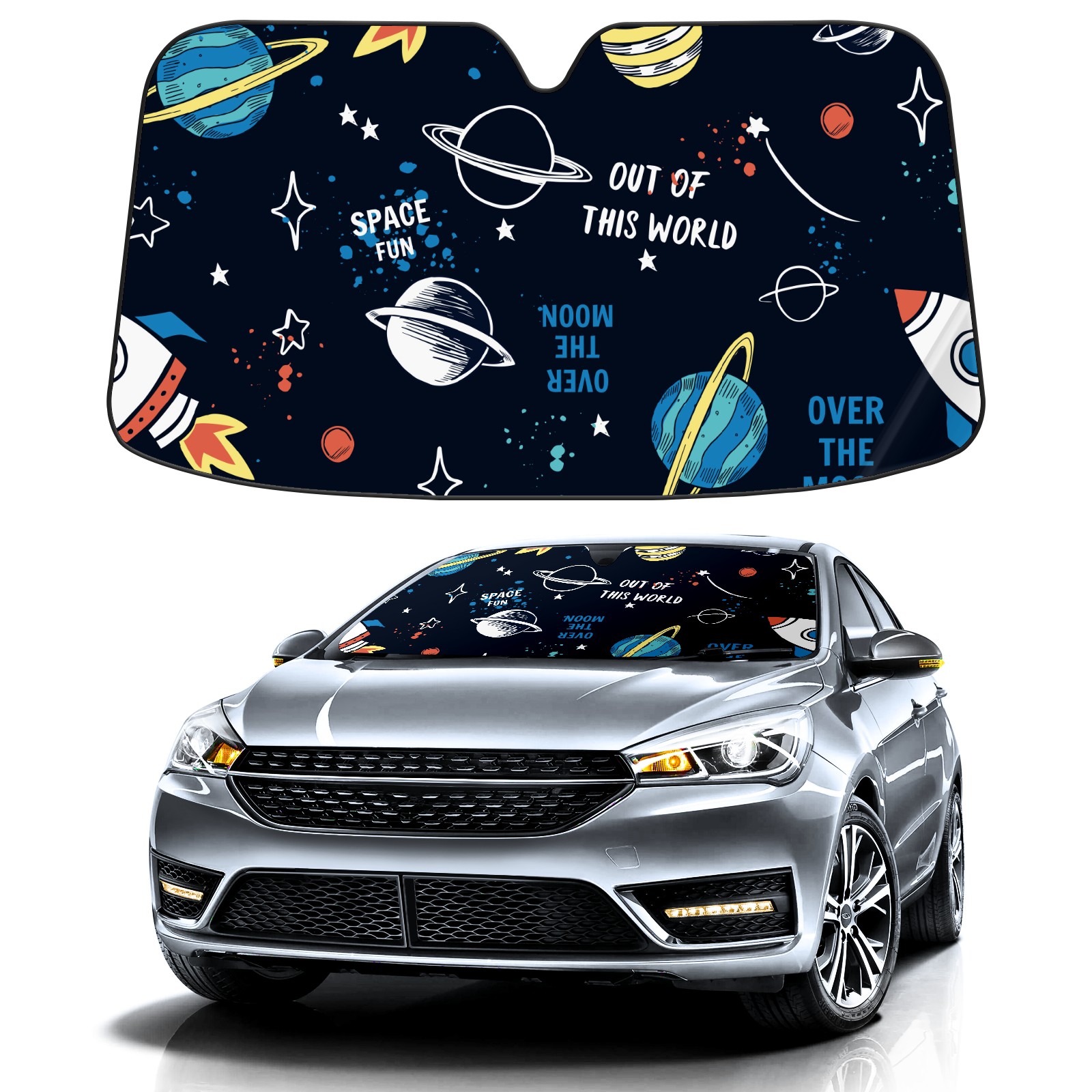 Car Windshield Sun Shade For Front Window 宇宙船 空間 Foldable Vehicle Windshield Car Sun Visor Covers Automotive Window Protector Car Camping Privacy Sun Blocker