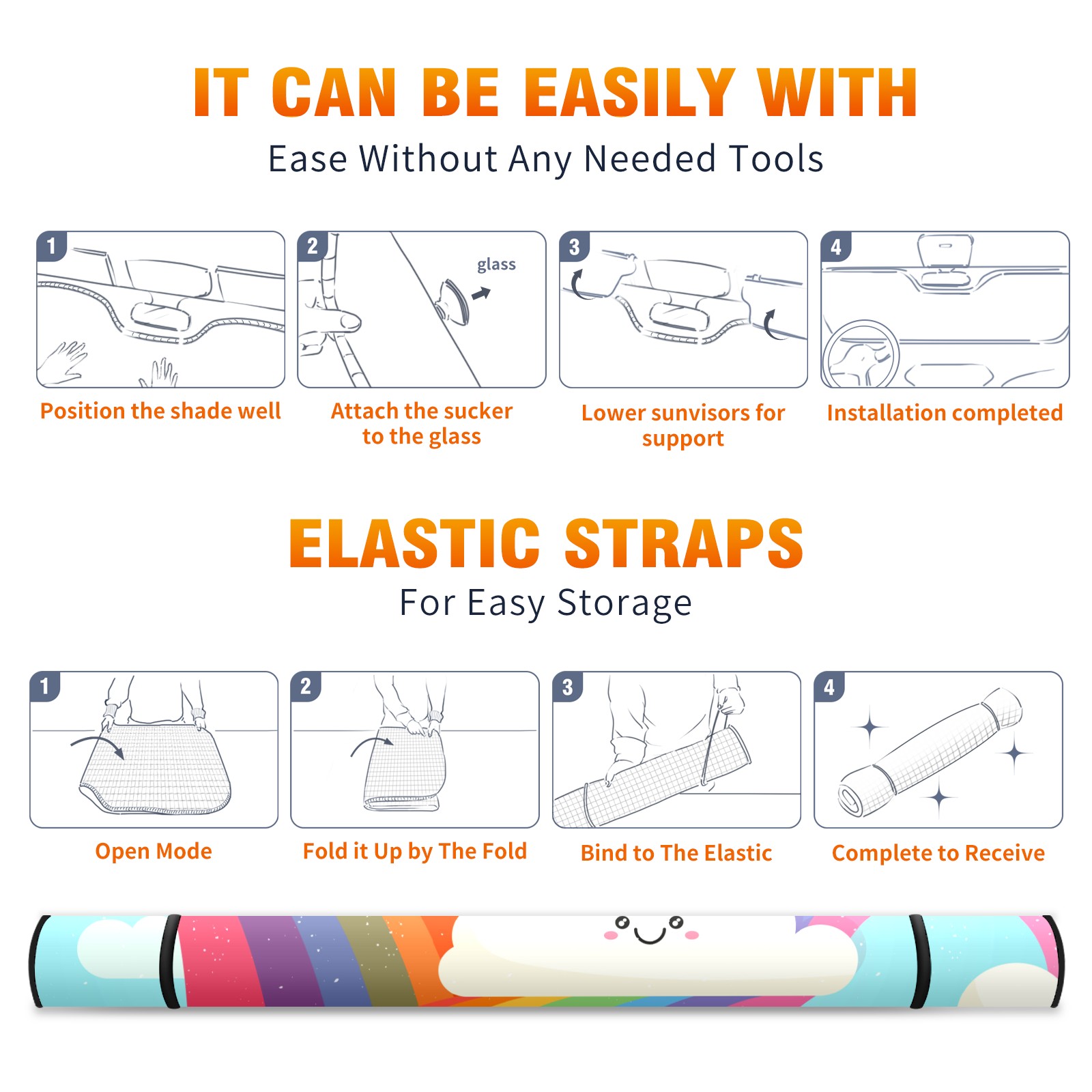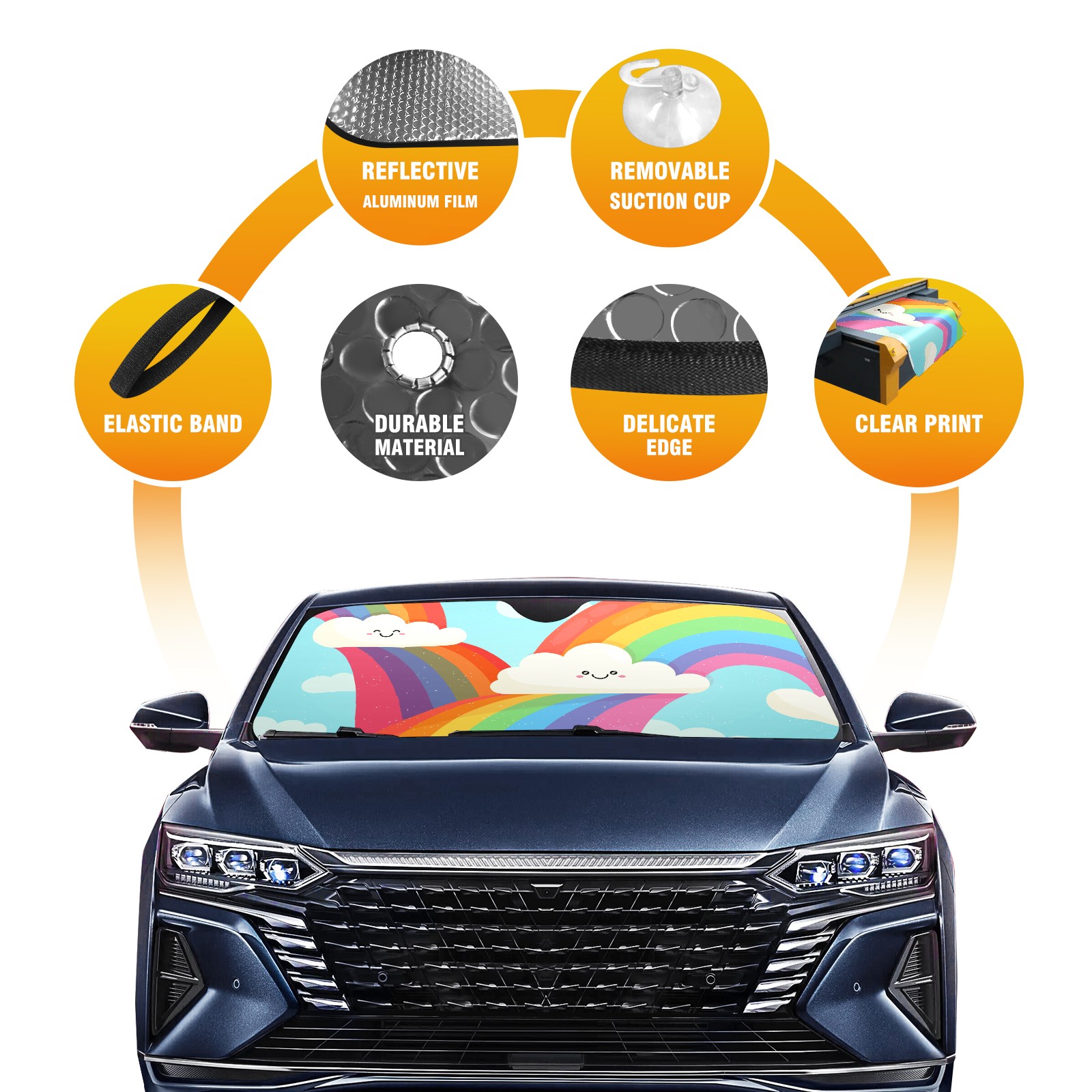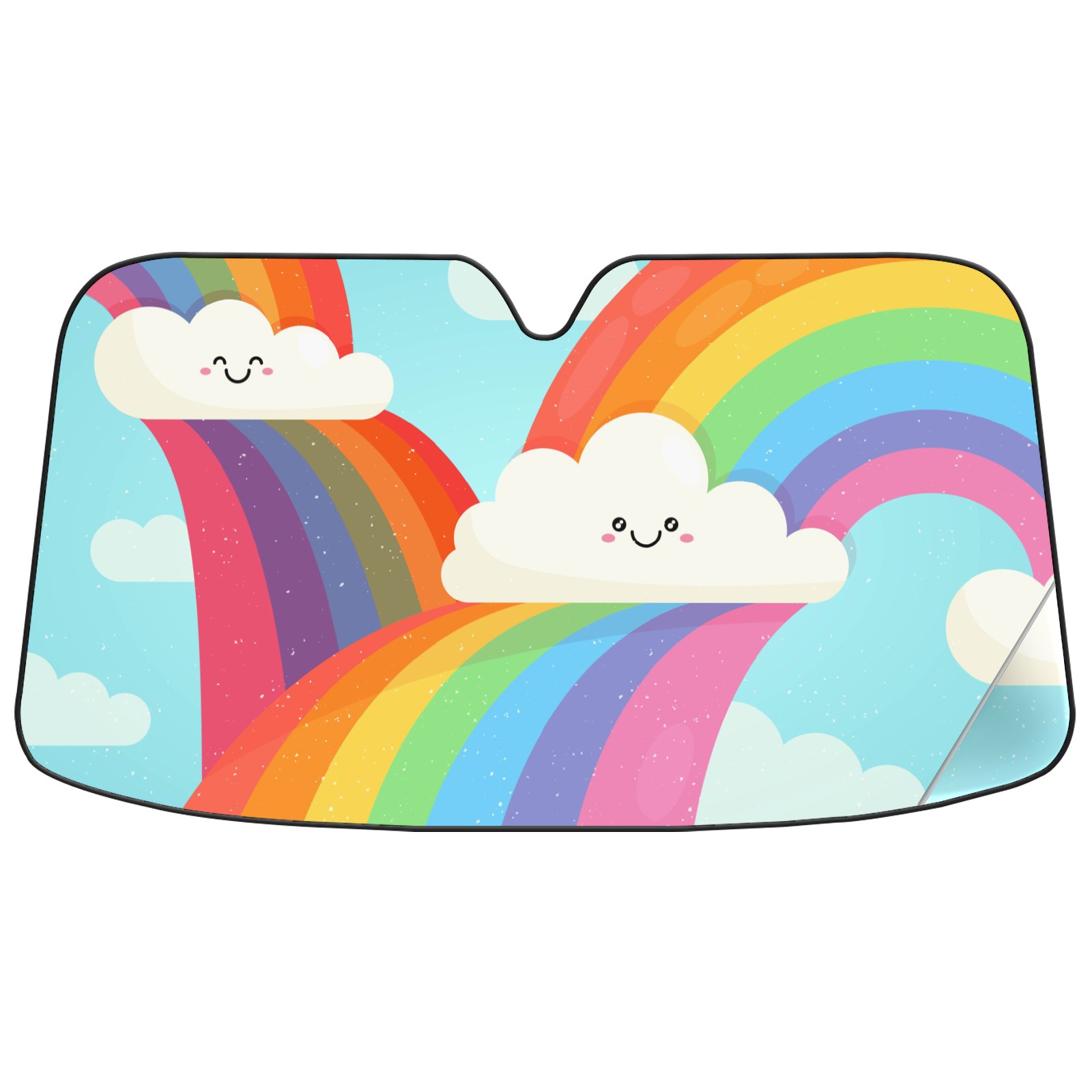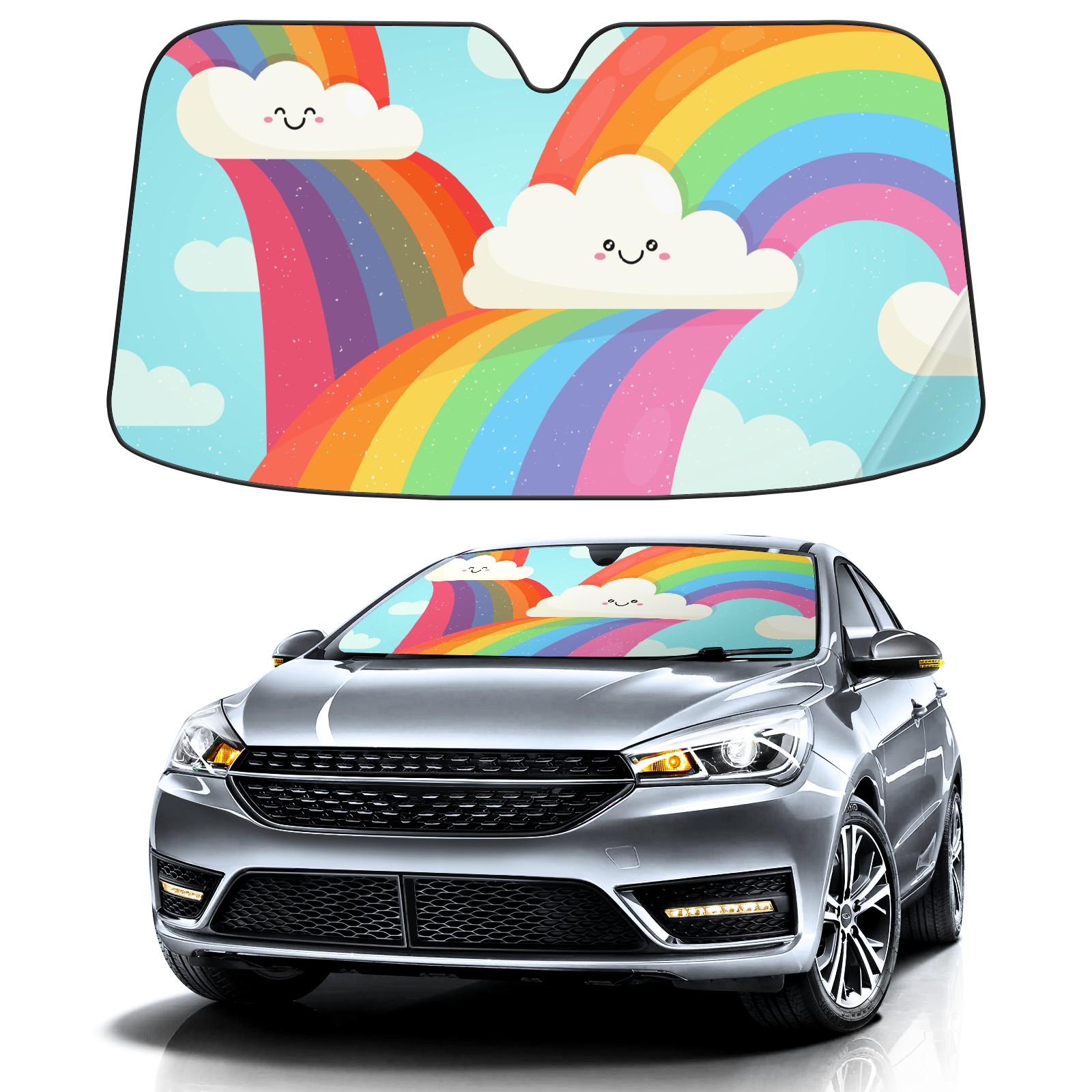 Car Windshield Sun Shade For Front Window Cute Rainbow Clouds Foldable Vehicle Windshield Car Sun Visor Covers Automotive Window Protector Car Camping Privacy Sun Blocker